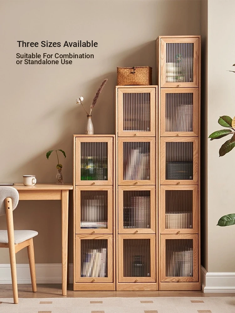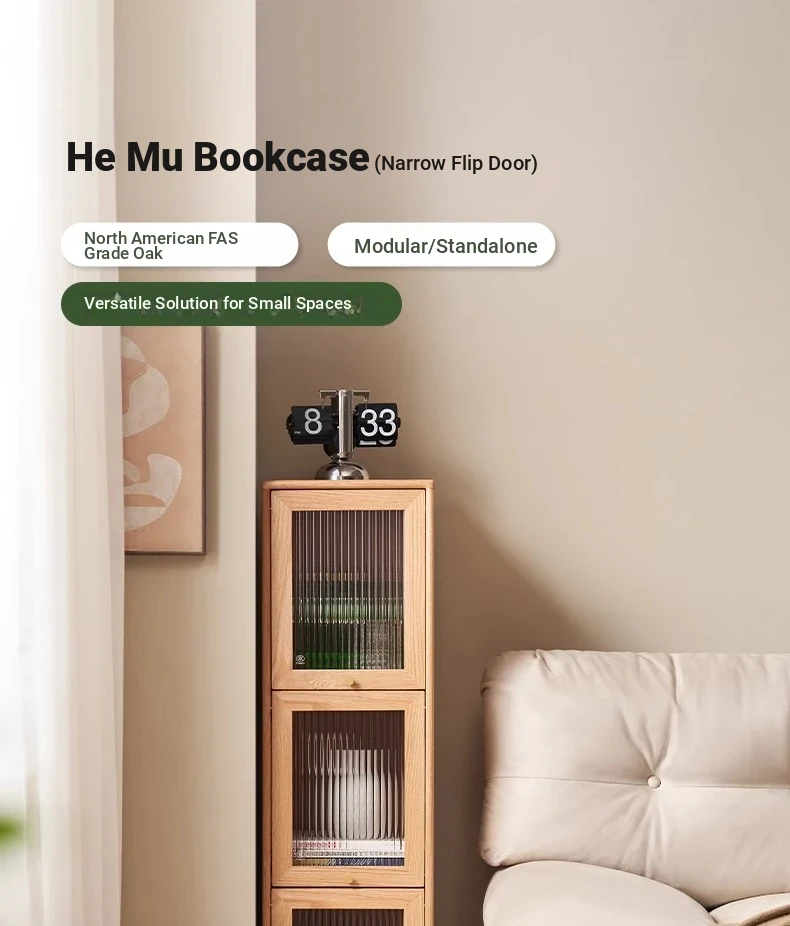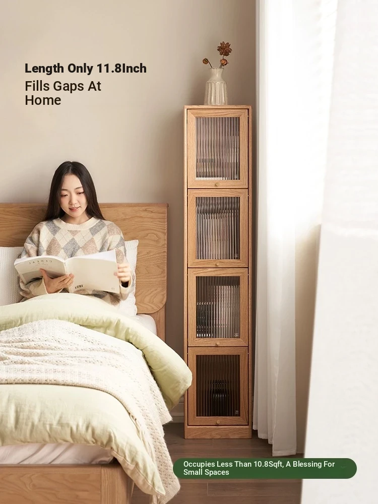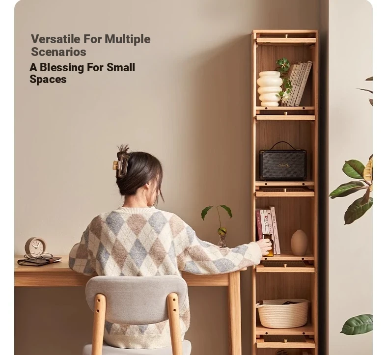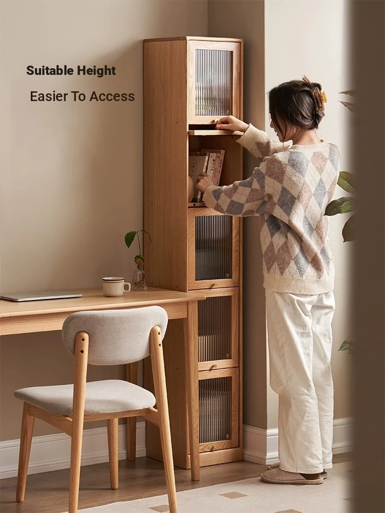 Original Element Solid Wood Bookshelf - Narrow Oak Book Cabinet Combo, Gap-Saving Side Storage, Stylish Vertical Organizer for Space Efficiency and Elegant Décor