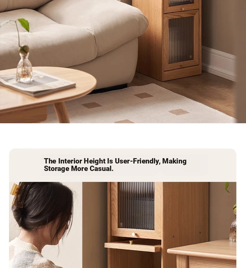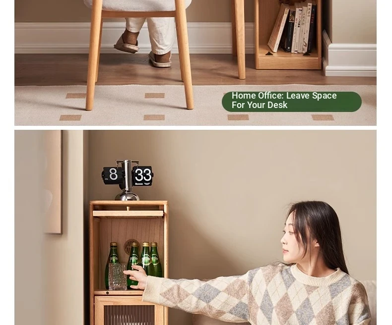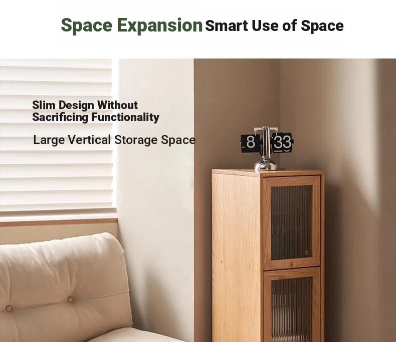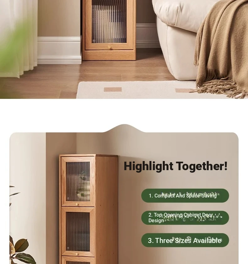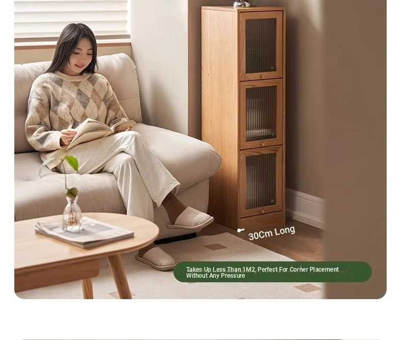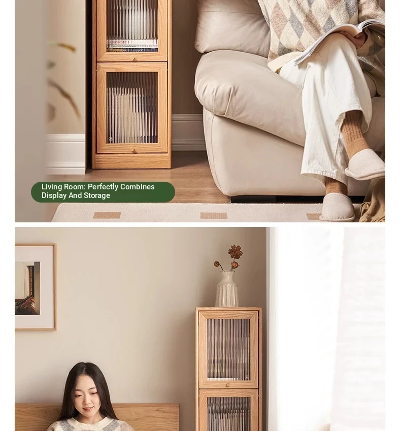 Original Element Solid Wood Bookshelf - Narrow Oak Book Cabinet Combo, Gap-Saving Side Storage, Stylish Vertical Organizer for Space Efficiency and Elegant Décor