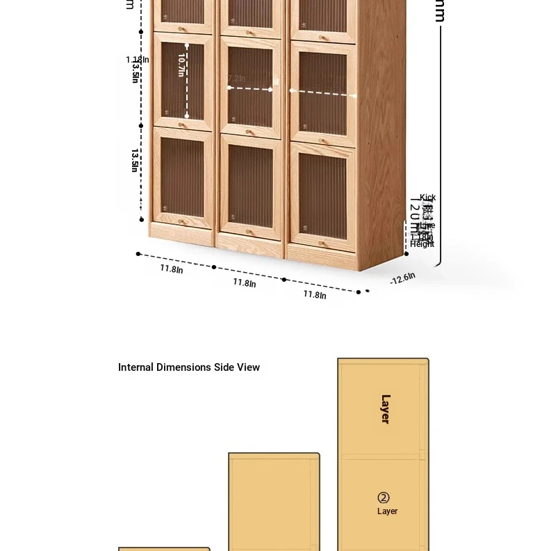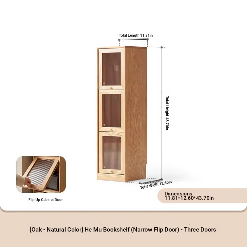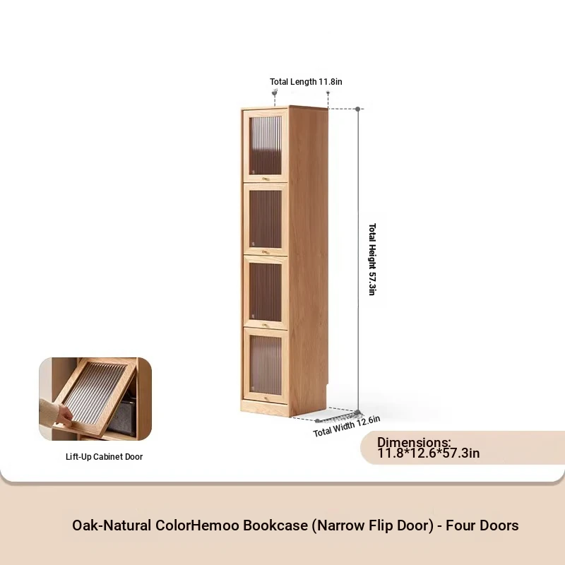 Log color -11.81 in narrow 4-door bookcase (11.81in*12.60in*57.28in)
