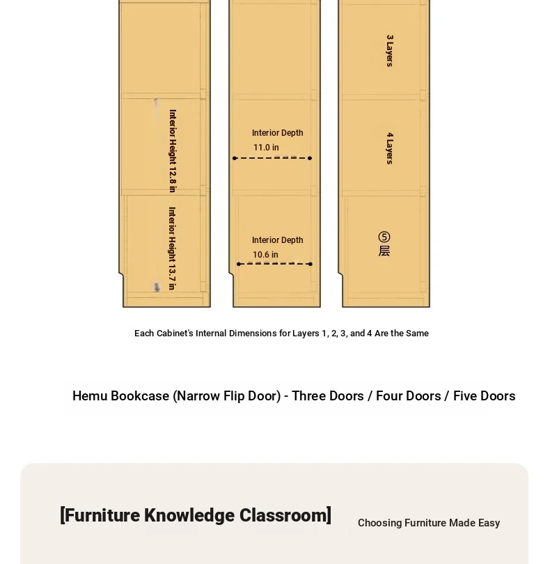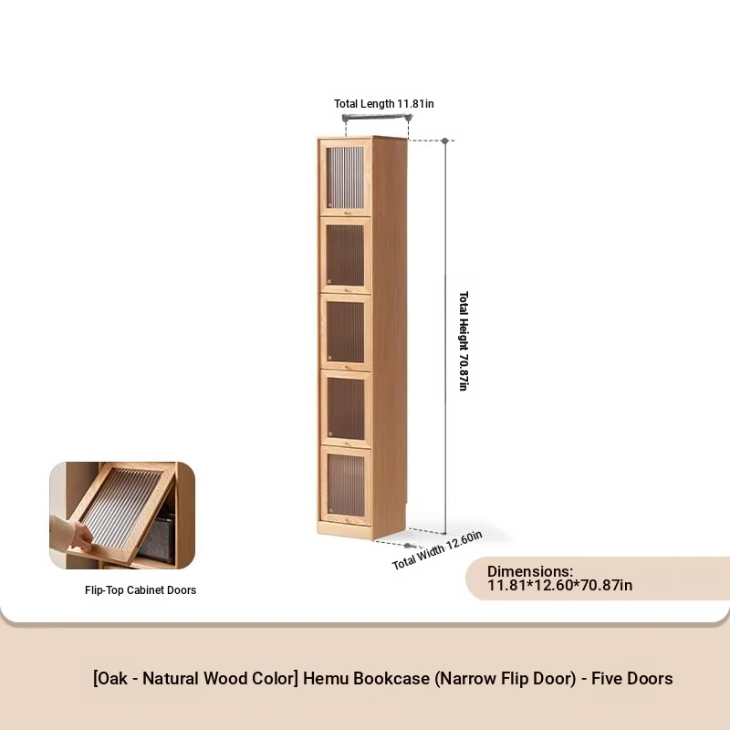 Log color -11.81 in narrow 5-door bookcase (11.81in*12.60in*70.87in)