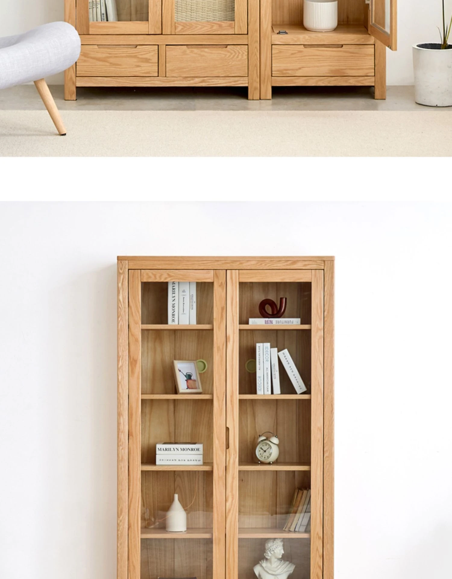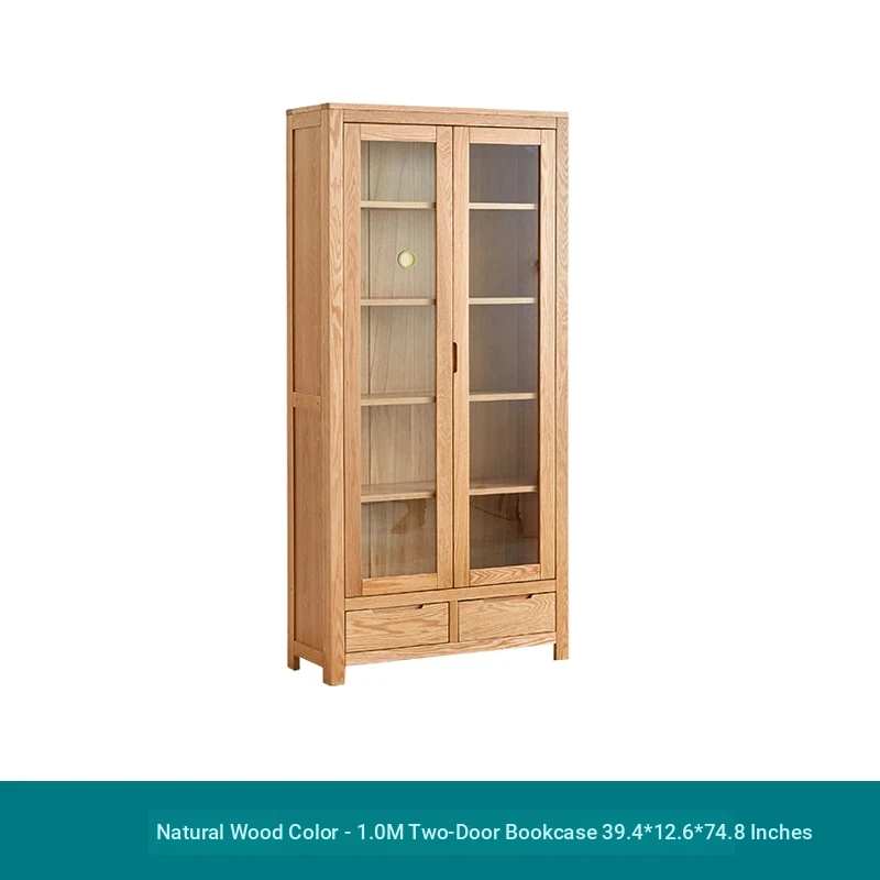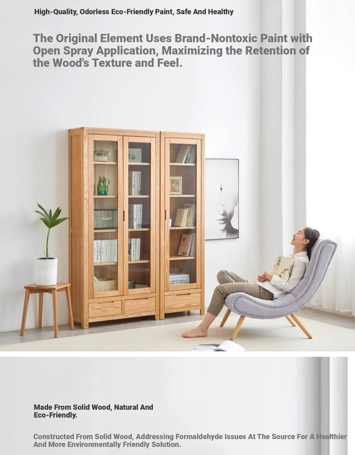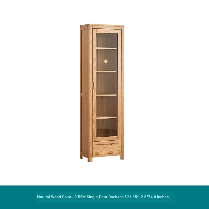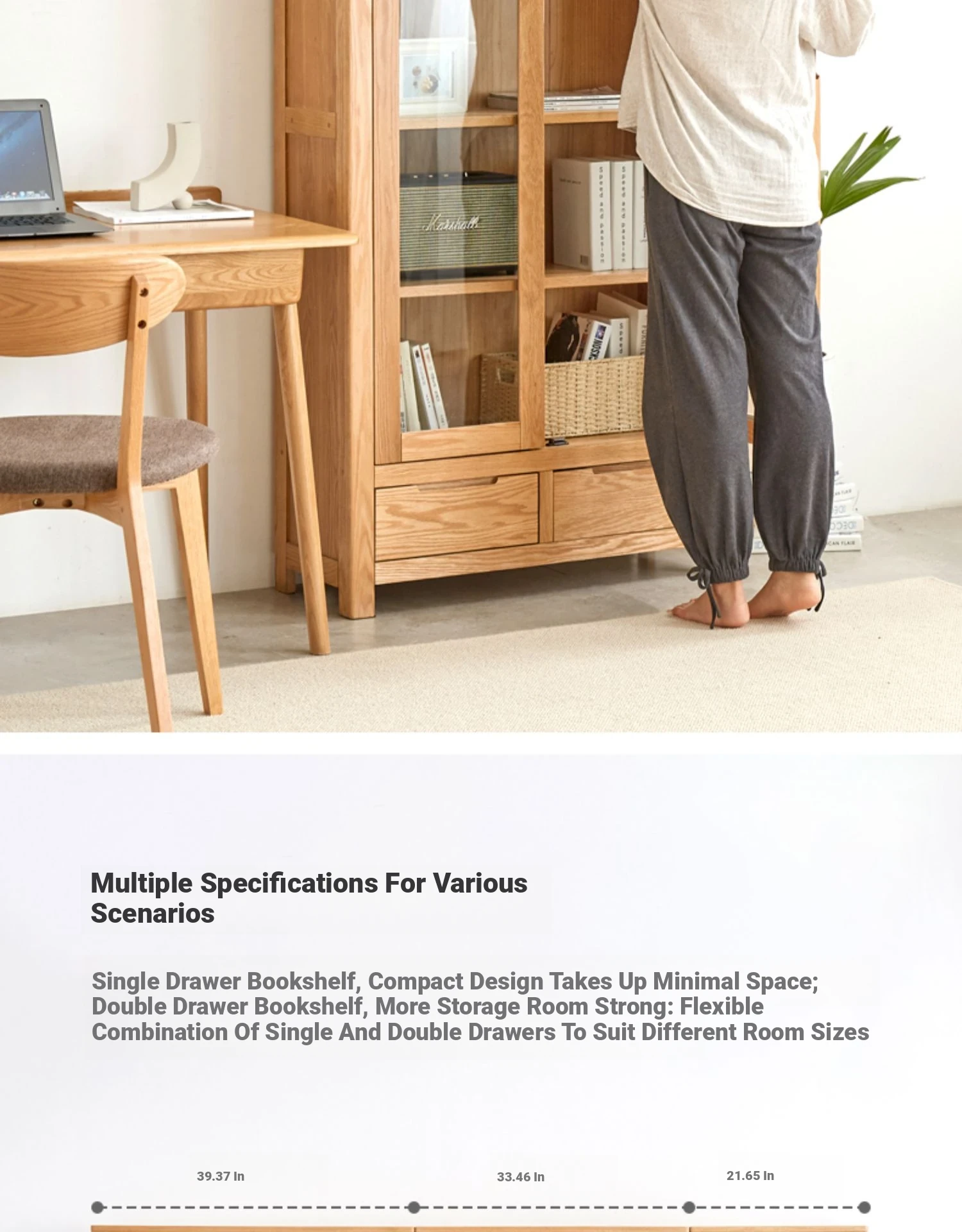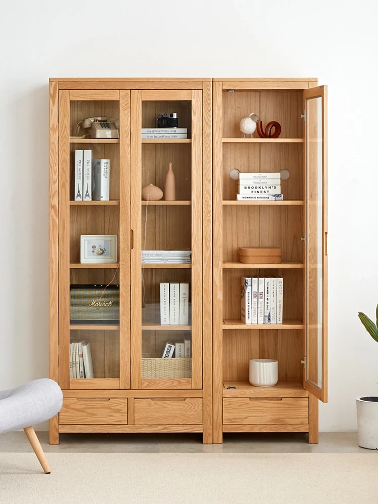 **Original Element Solid Wood Bookshelf - Scandinavian Oak Glass Door Bookcase, Minimalist Display Cabinet for Home Office**