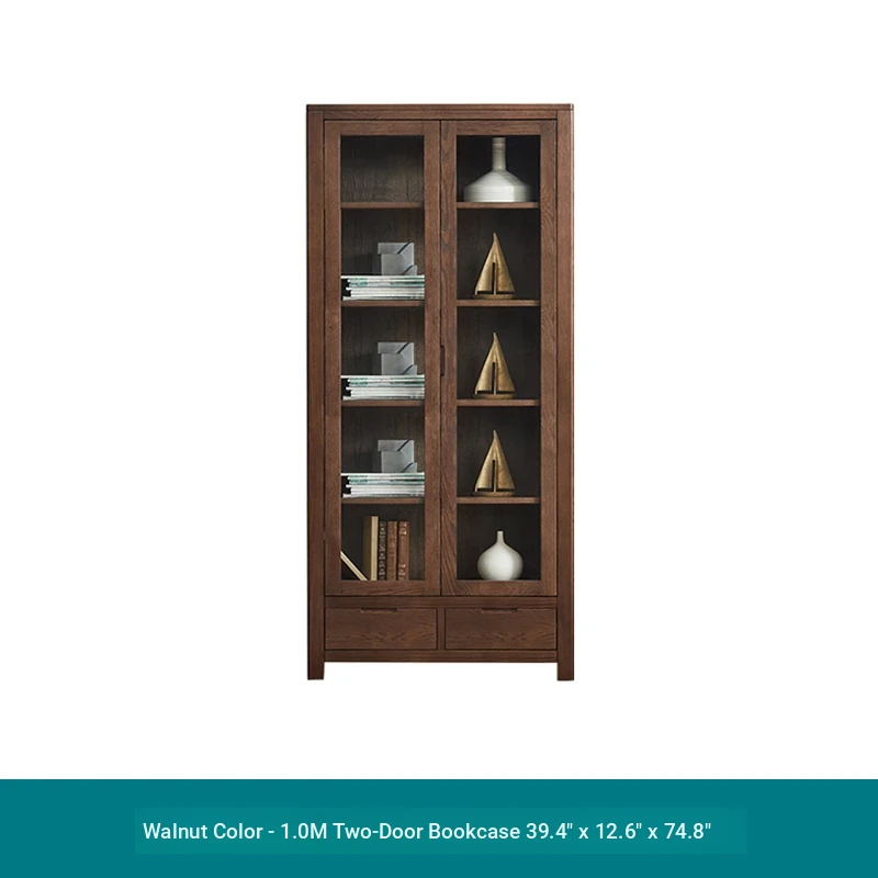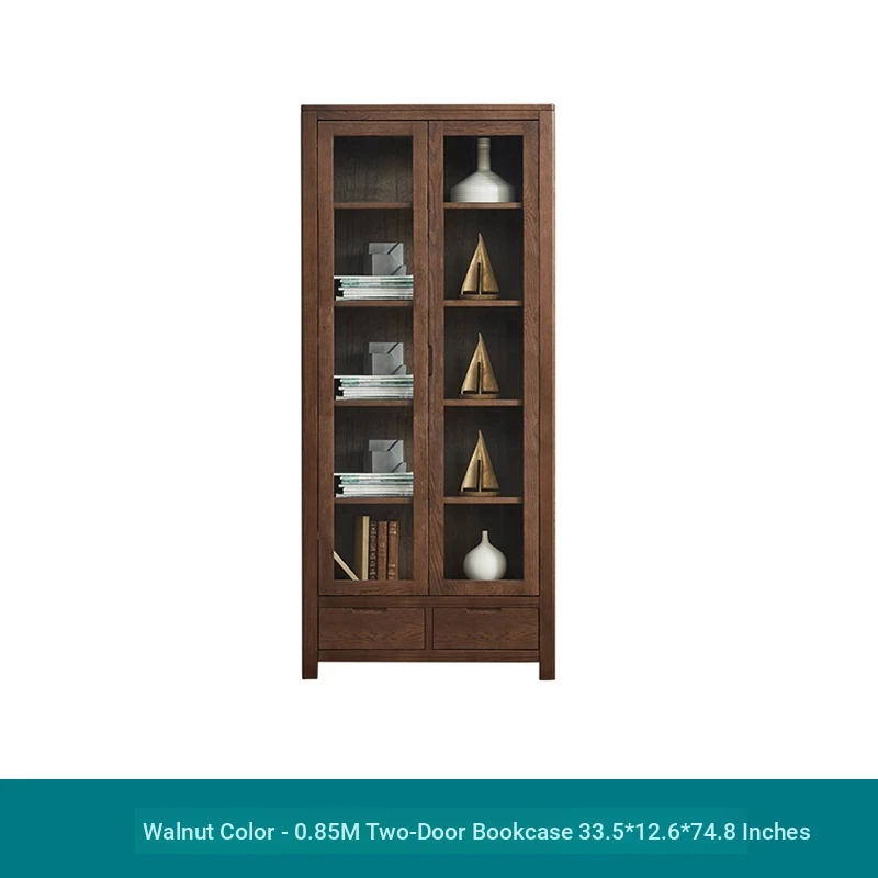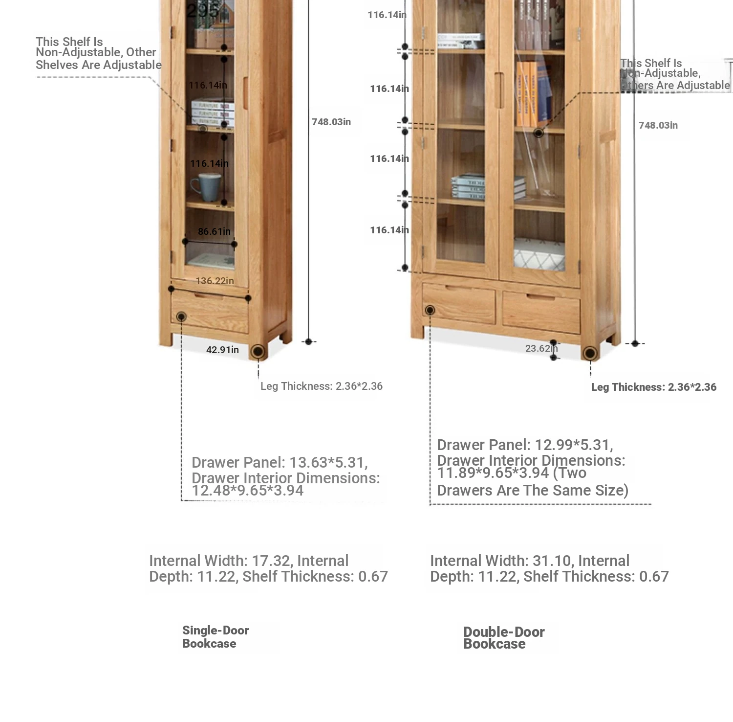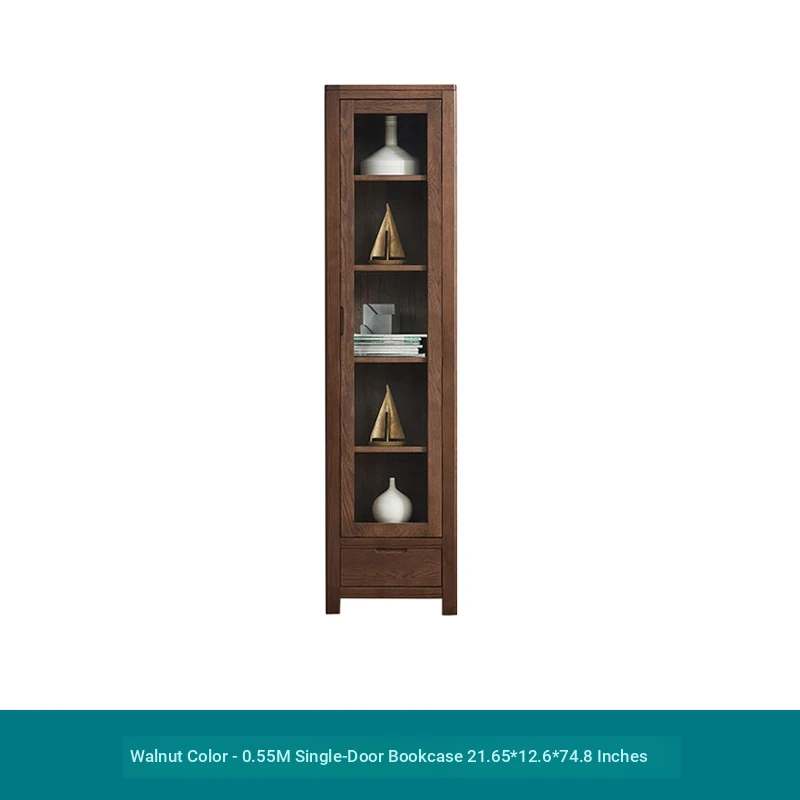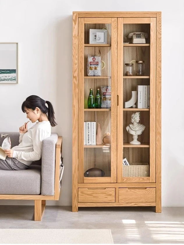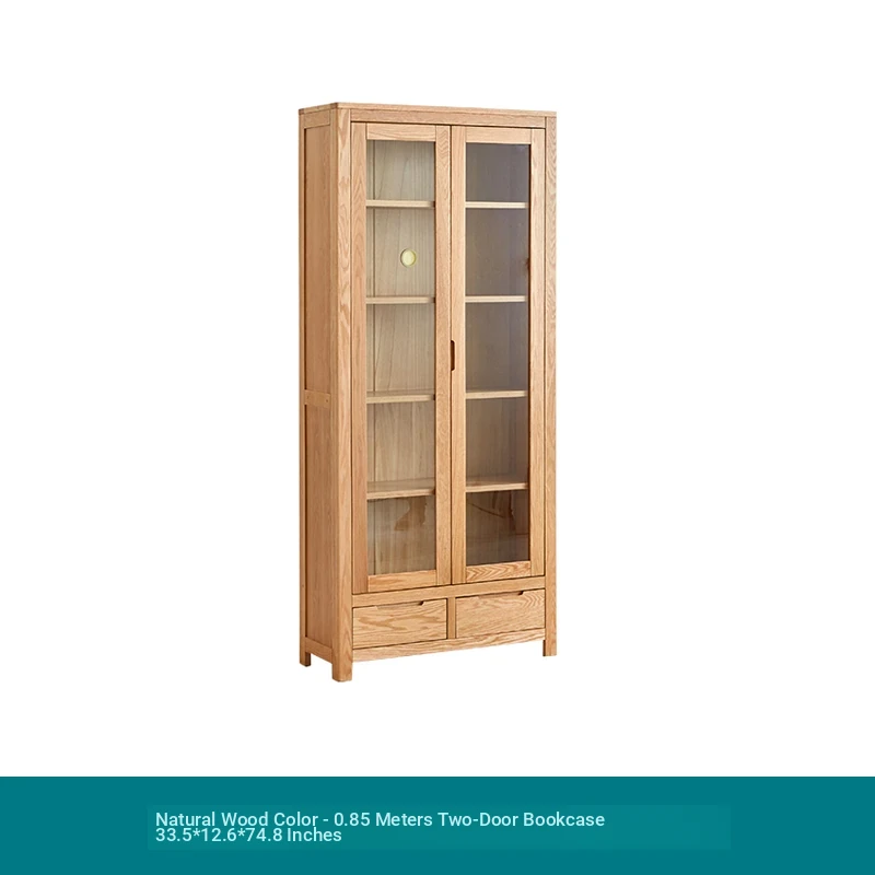 **Original Element Solid Wood Bookshelf - Scandinavian Oak Glass Door Bookcase, Minimalist Display Cabinet for Home Office**