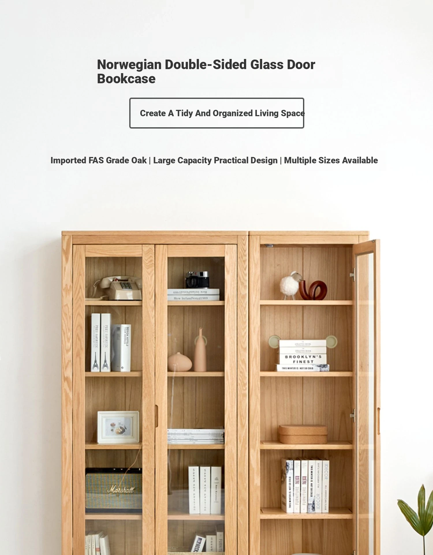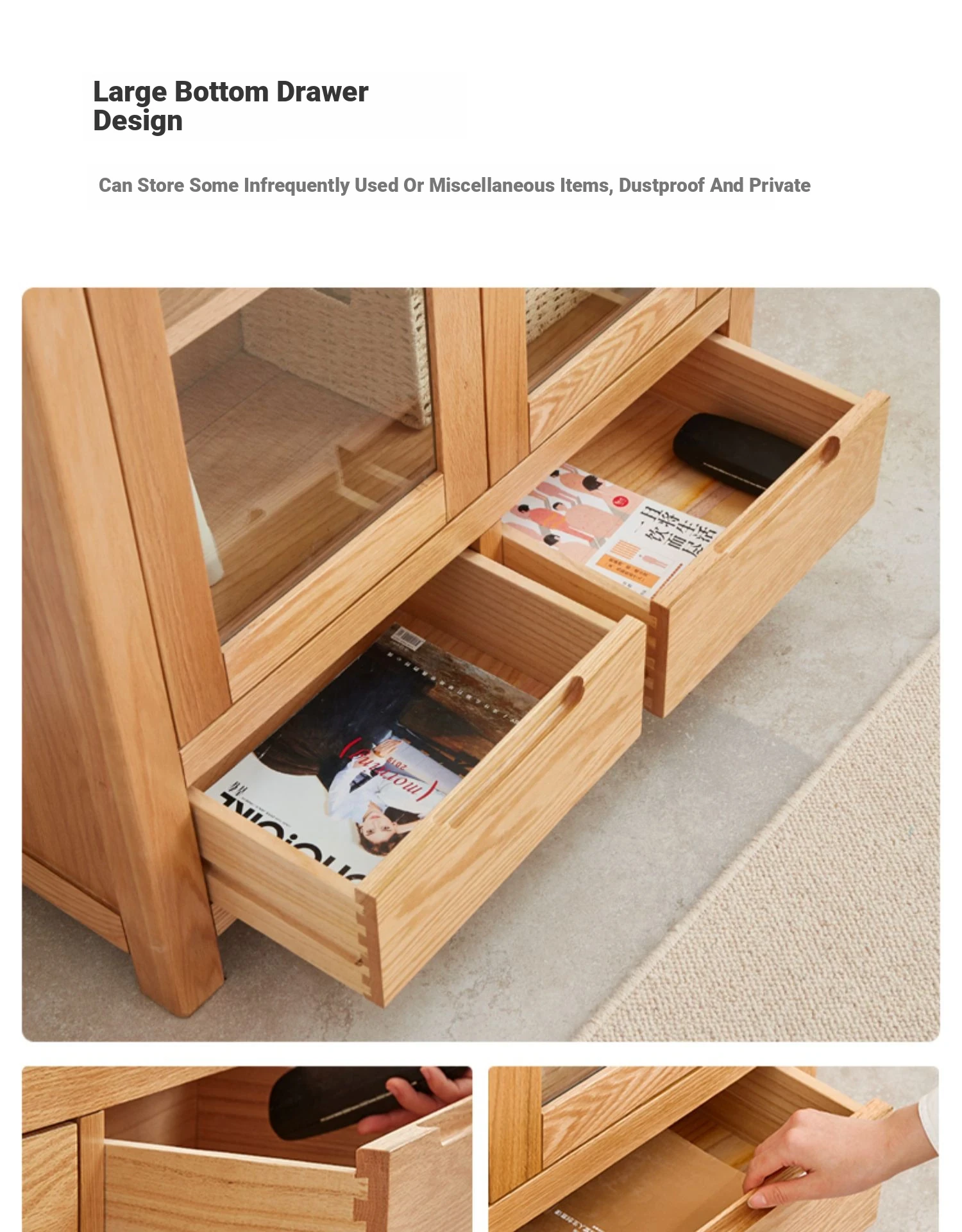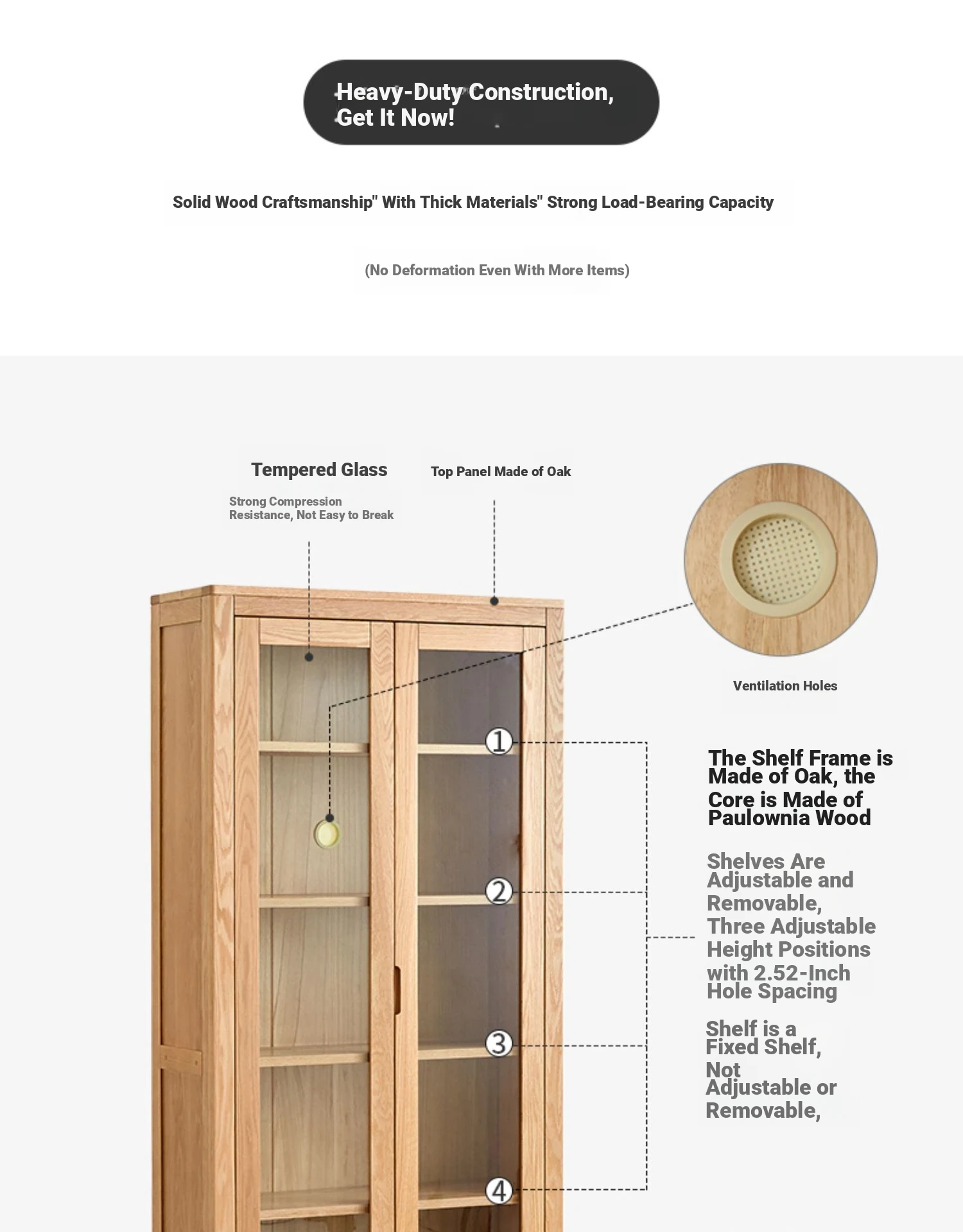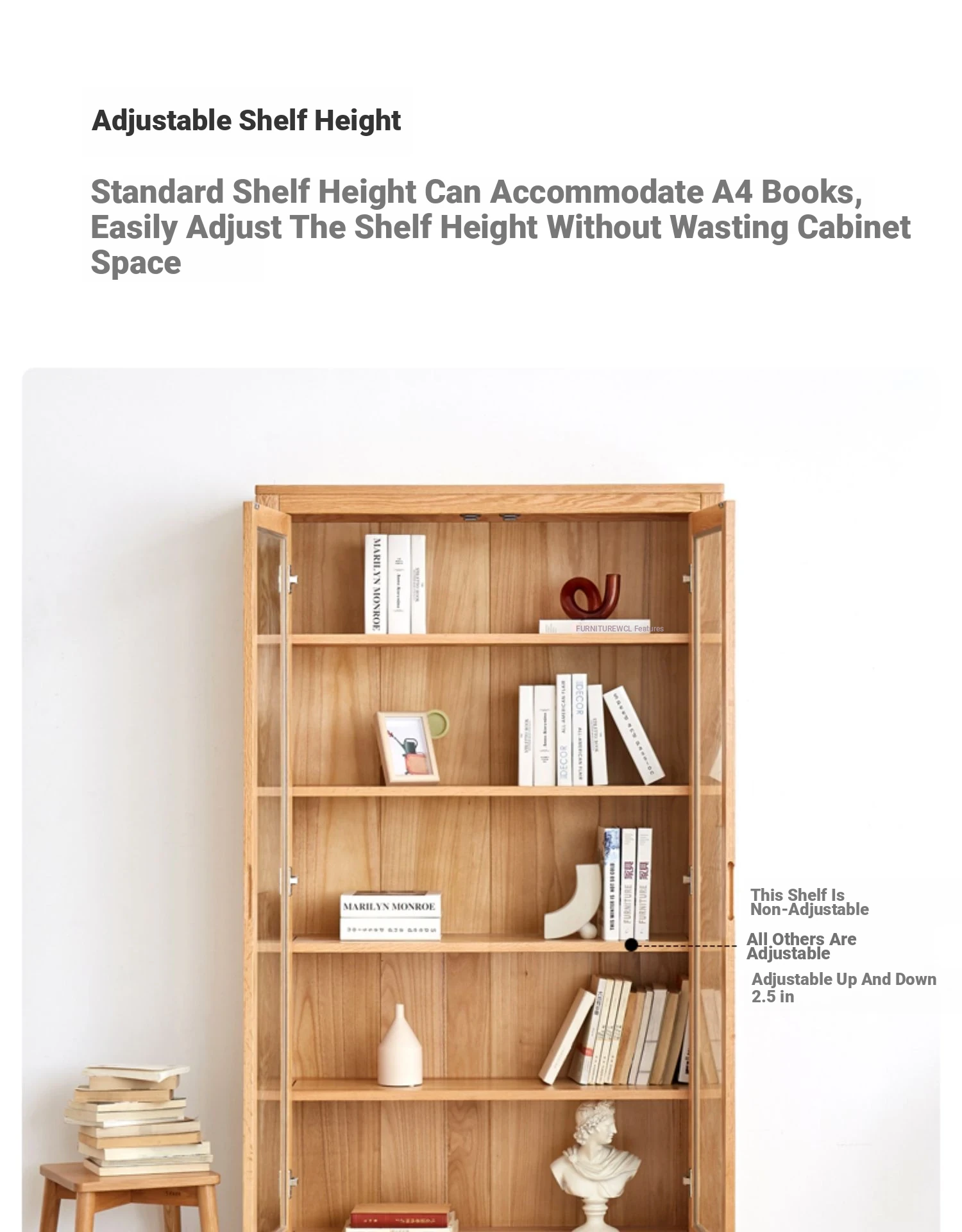 **Original Element Solid Wood Bookshelf - Scandinavian Oak Glass Door Bookcase, Minimalist Display Cabinet for Home Office**