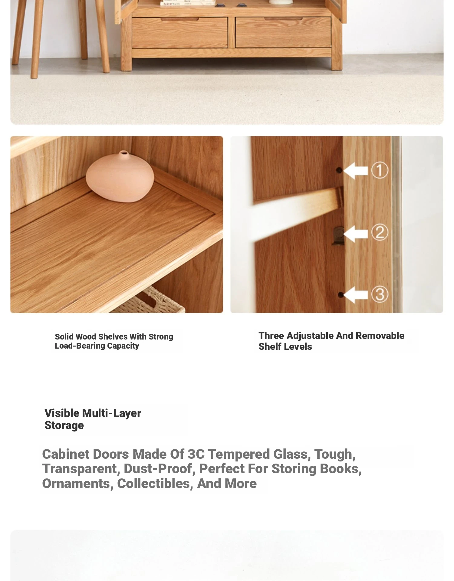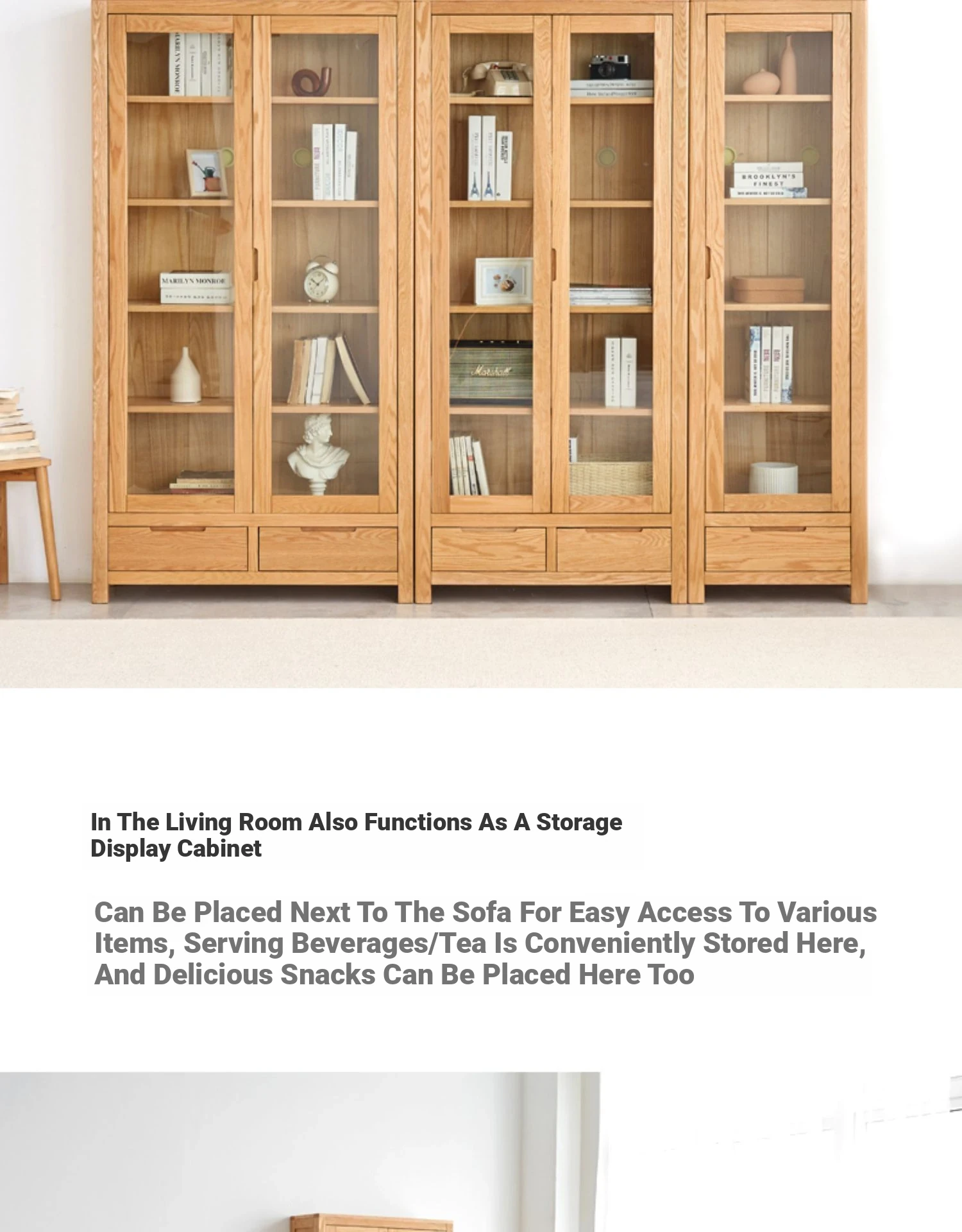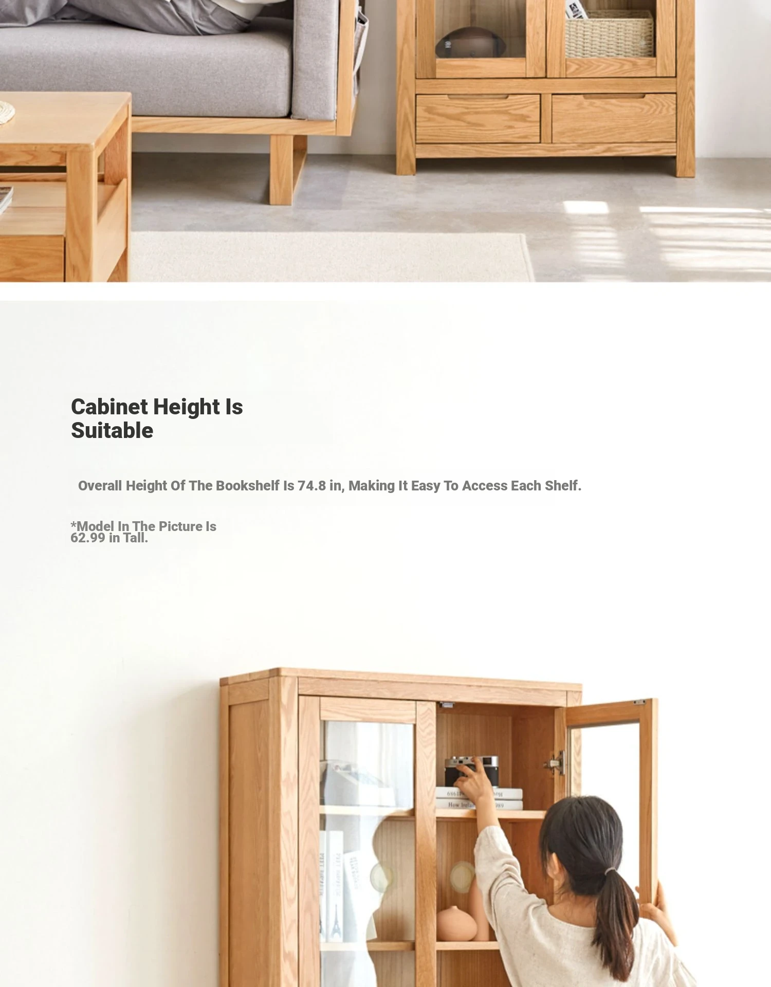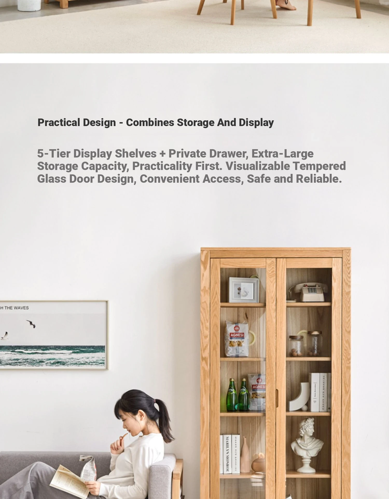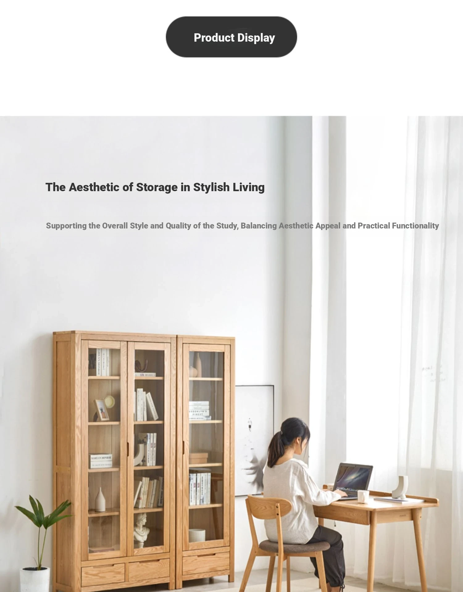 **Original Element Solid Wood Bookshelf - Scandinavian Oak Glass Door Bookcase, Minimalist Display Cabinet for Home Office**