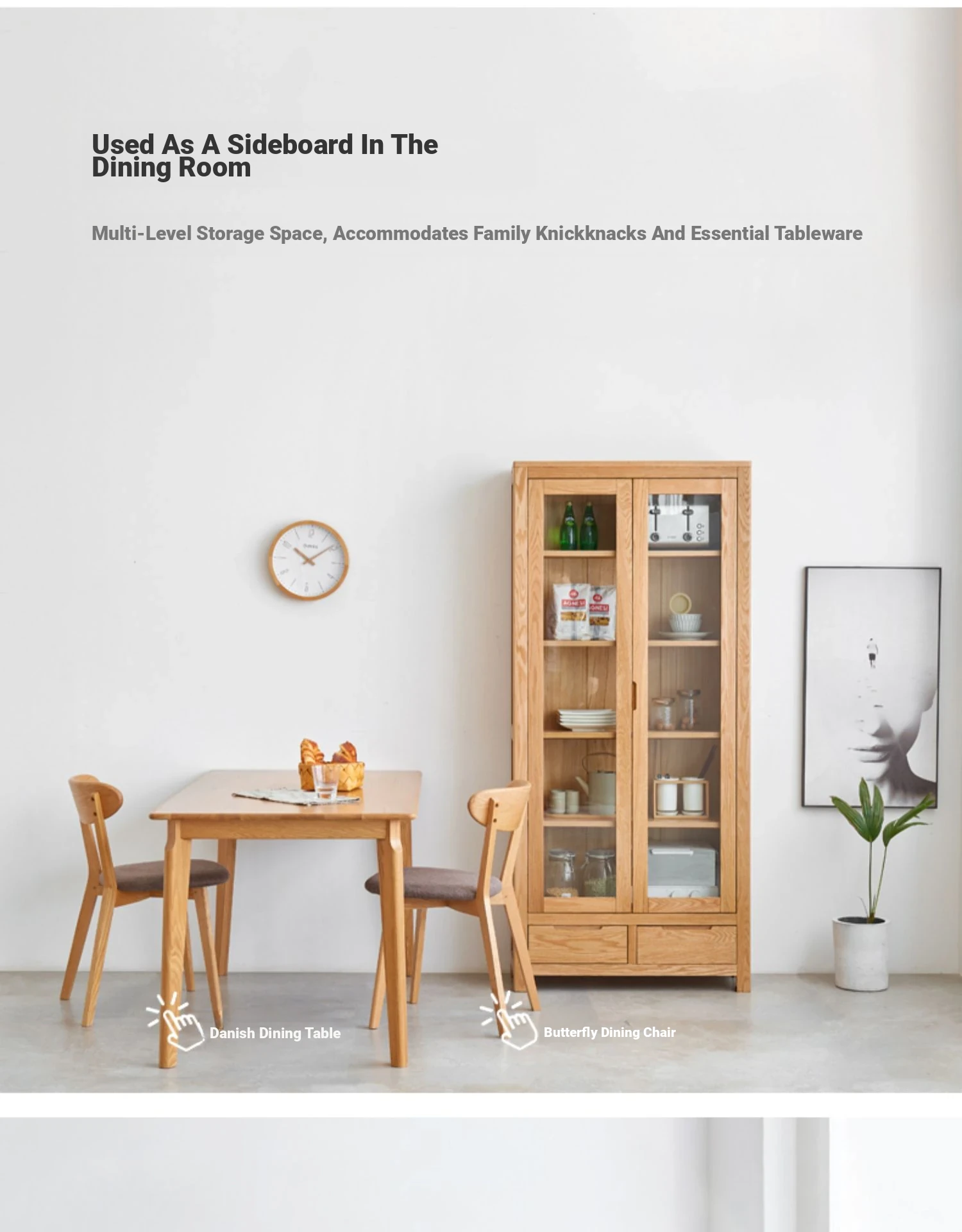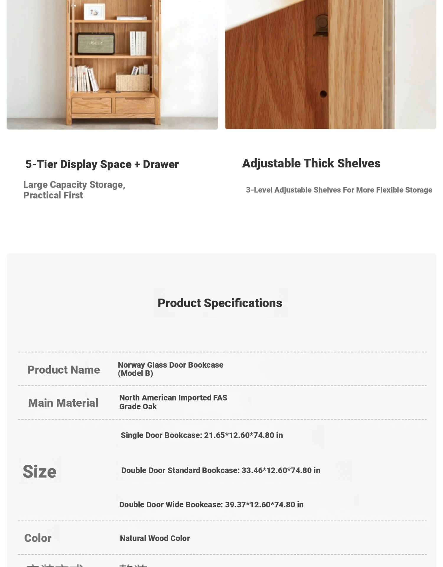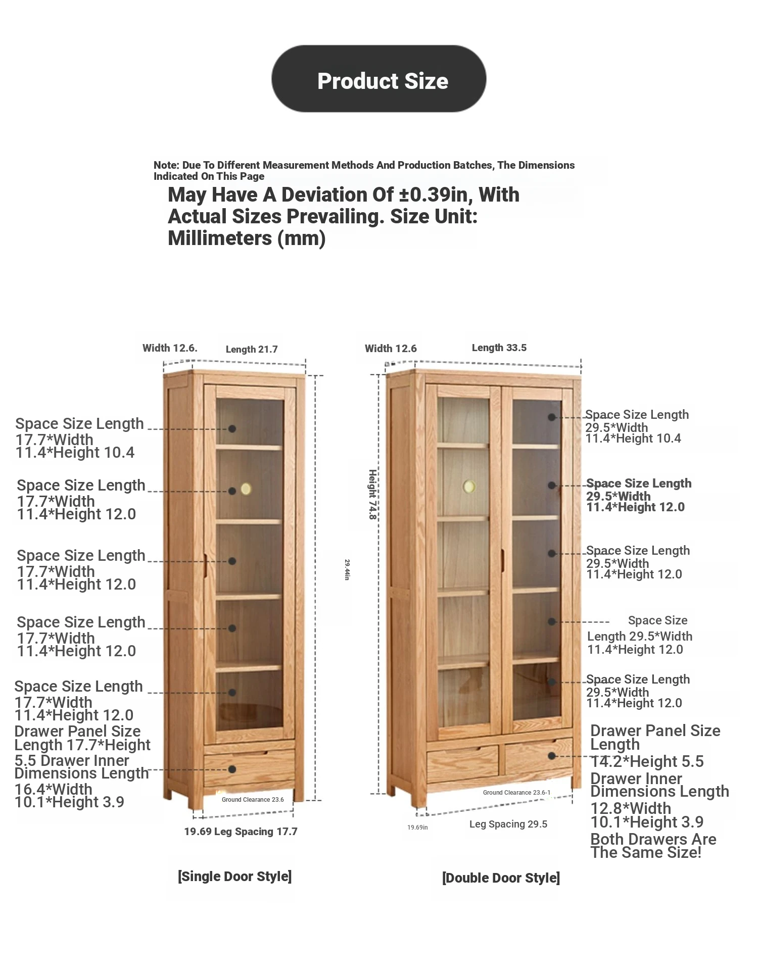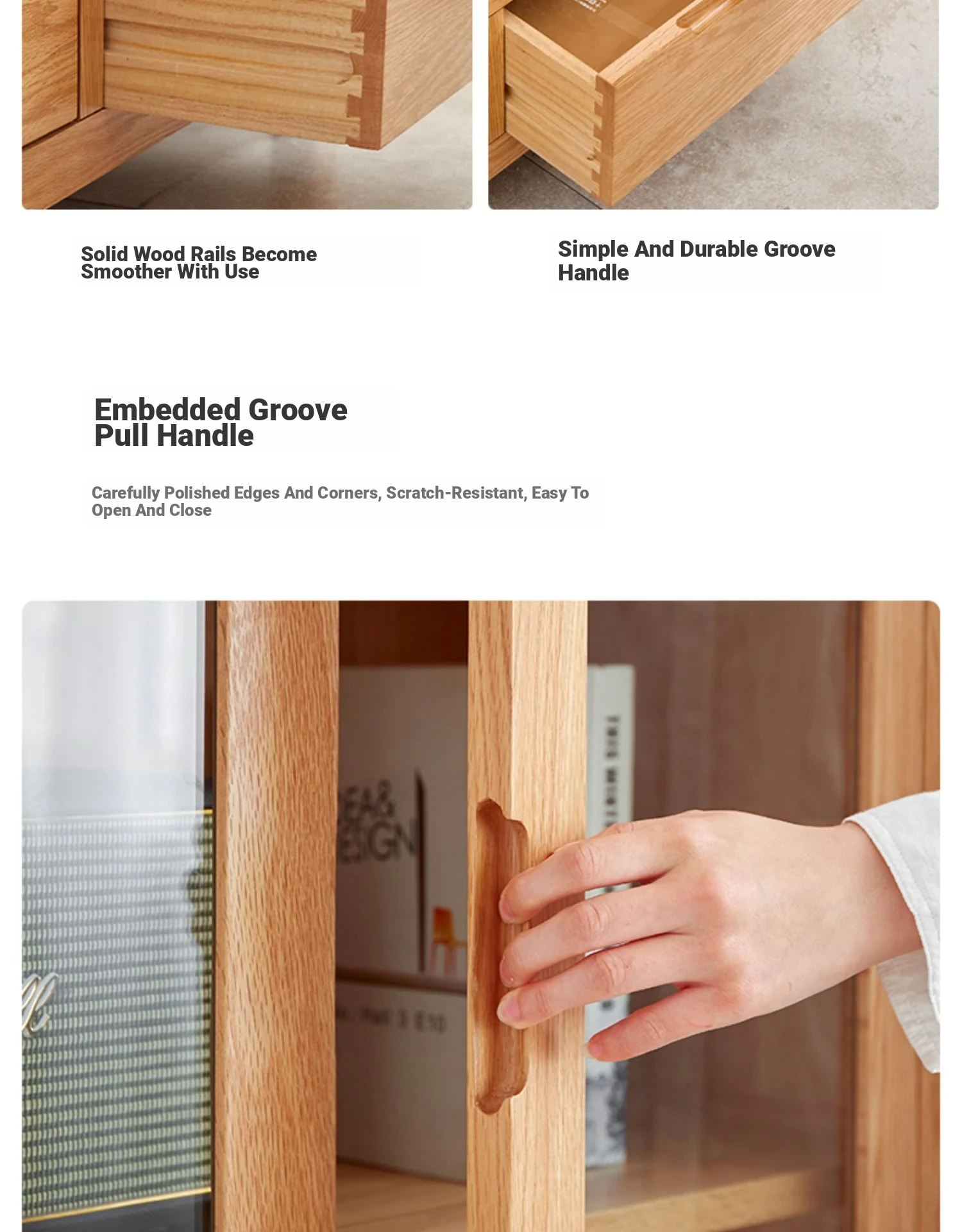**Original Element Solid Wood Bookshelf - Scandinavian Oak Glass Door Bookcase, Minimalist Display Cabinet for Home Office**