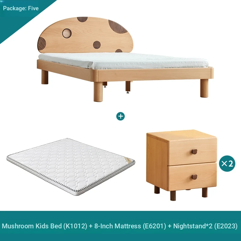 Mushroom Children's Bed +3.15in Mattress A + Elle Bedside Table * 2