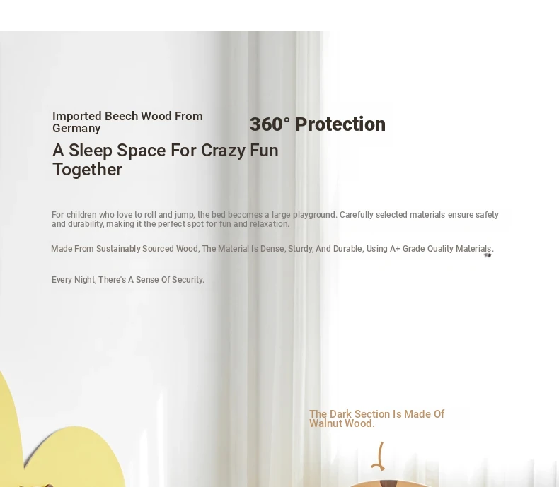 Original Element Solid Wood Children's Bed - Scandinavian Style Bedroom Furniture for Boys & Girls - 1.5m & 1.2m Beech Wood Single Bed - Perfect for Stylish, Cozy Kids' Rooms