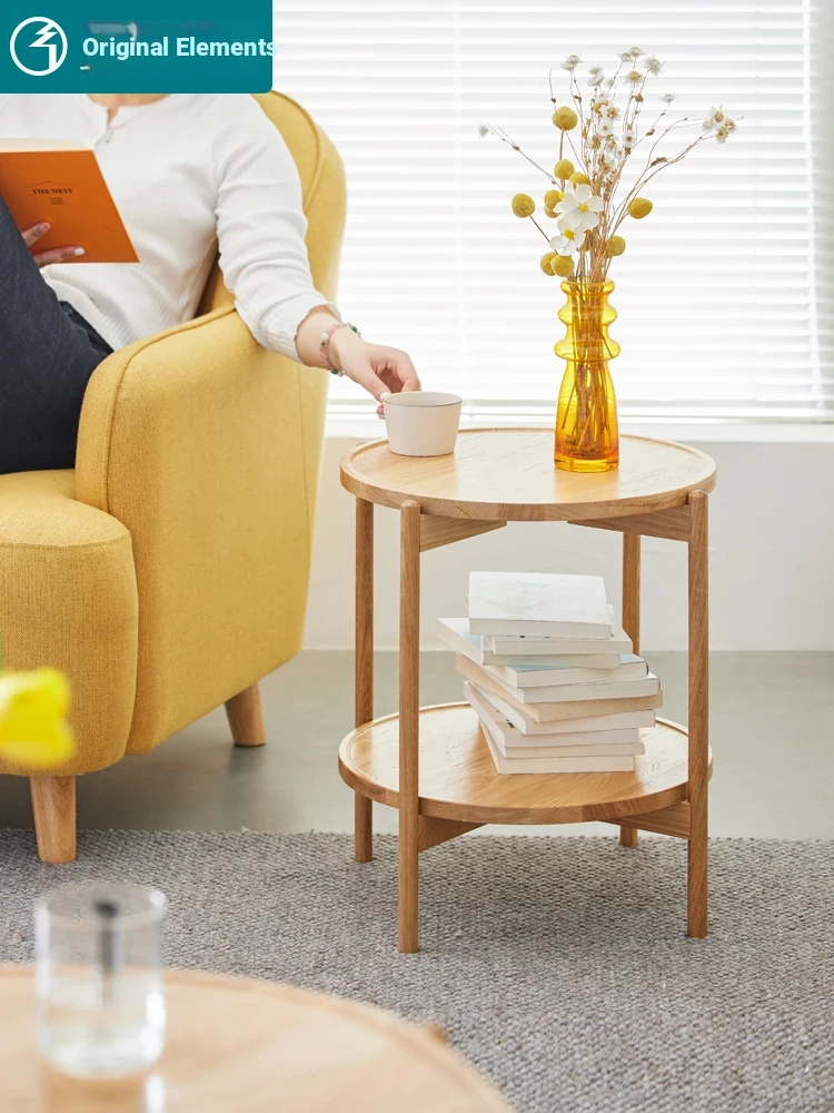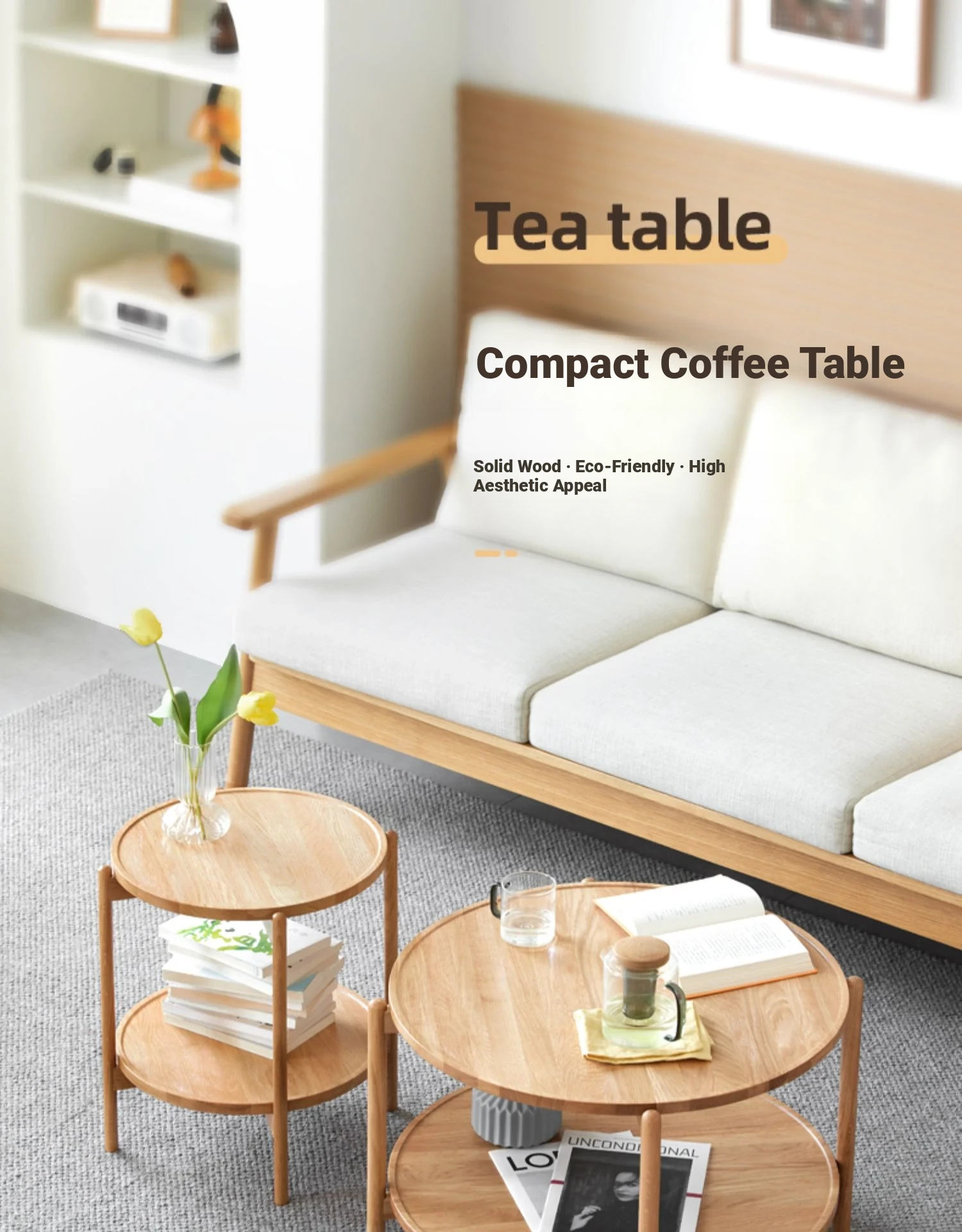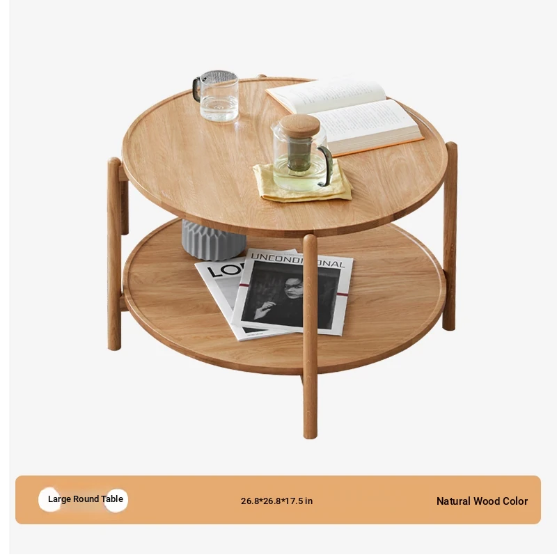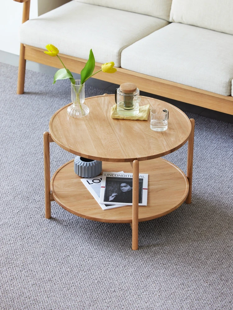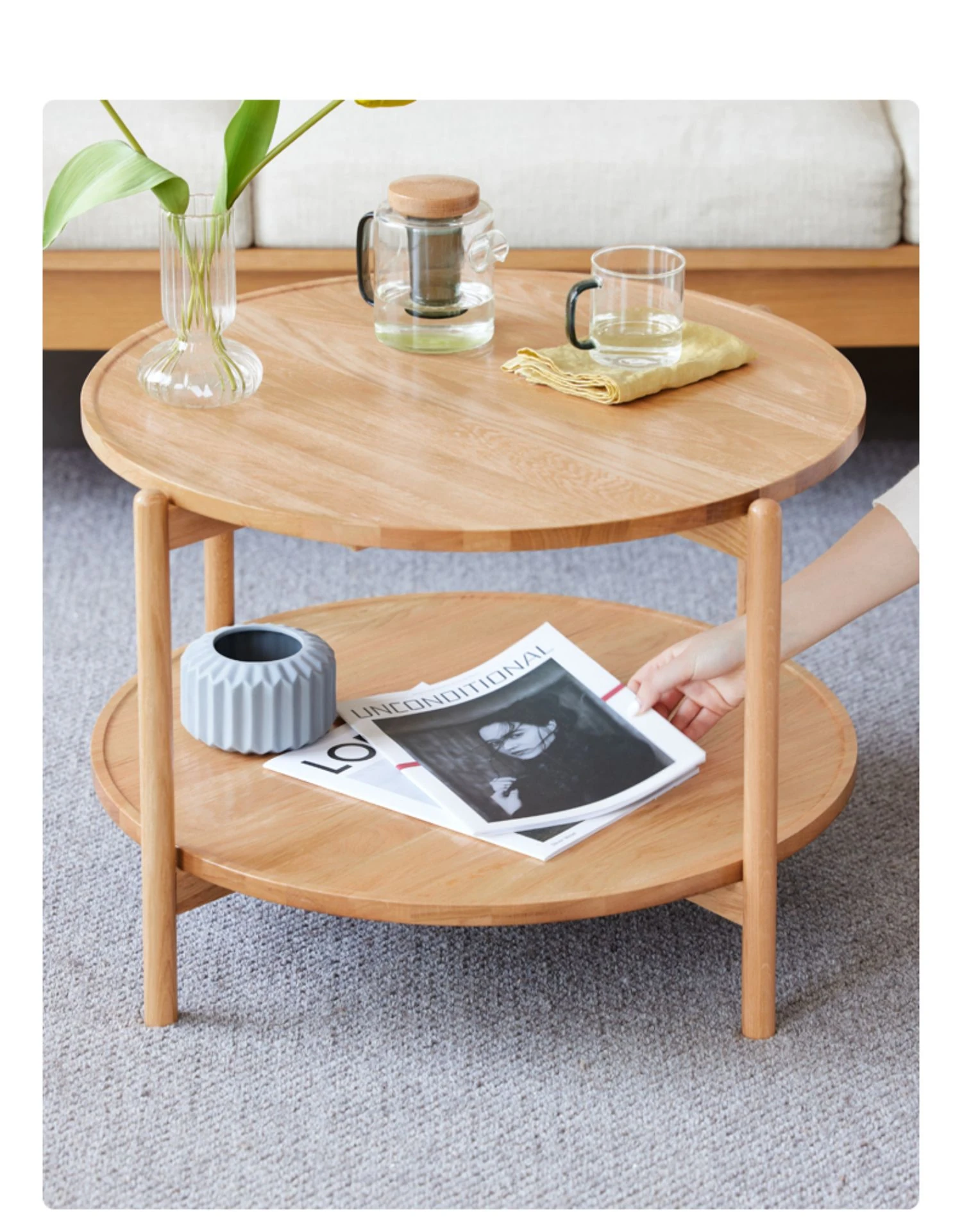 Original Element Solid Wood Coffee Table - Modern Minimalist Oak Double-Layer Round Coffee Table for Small Spaces - Versatile and Stylish Side Table for Compact Living Areas