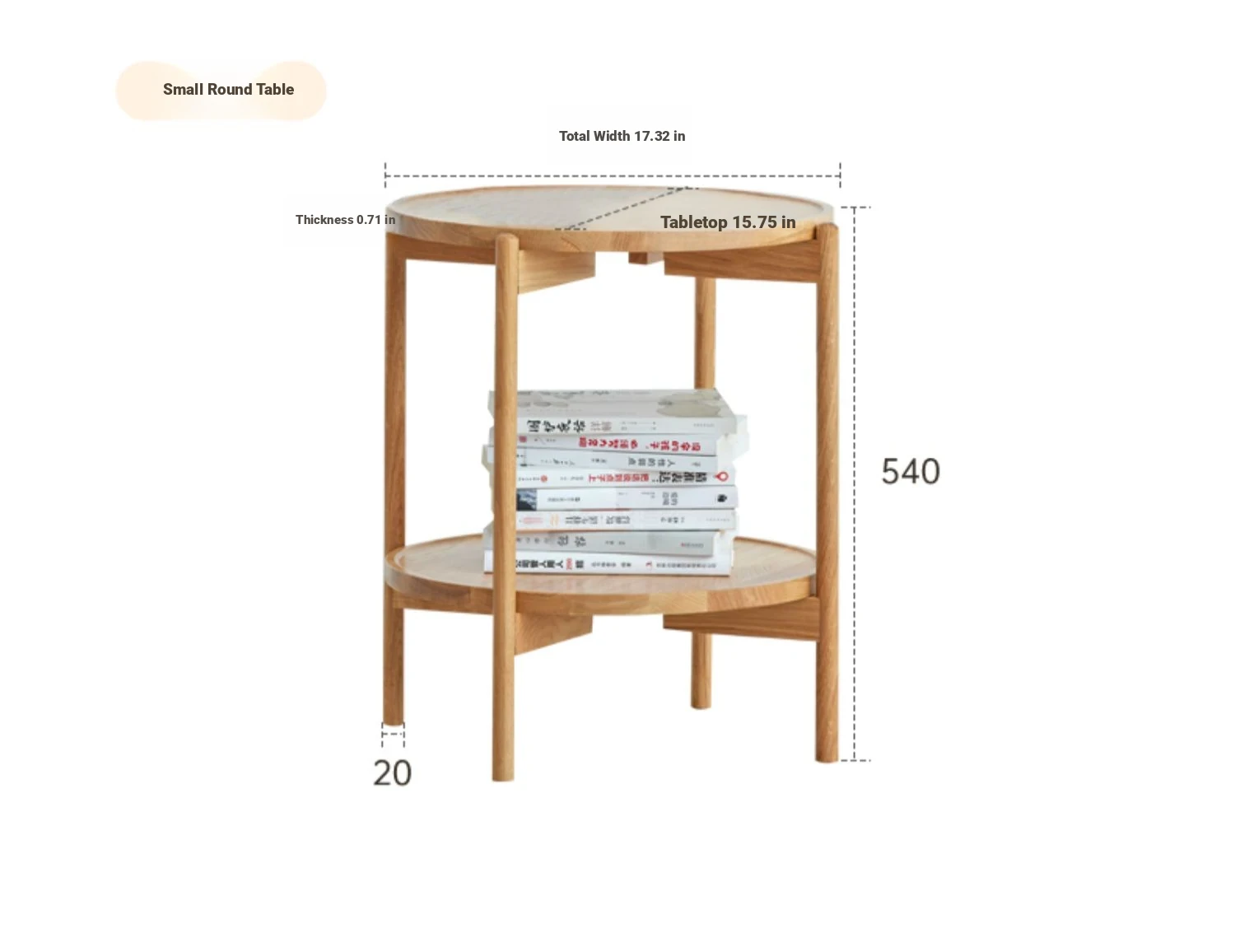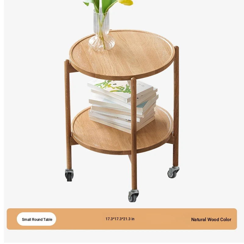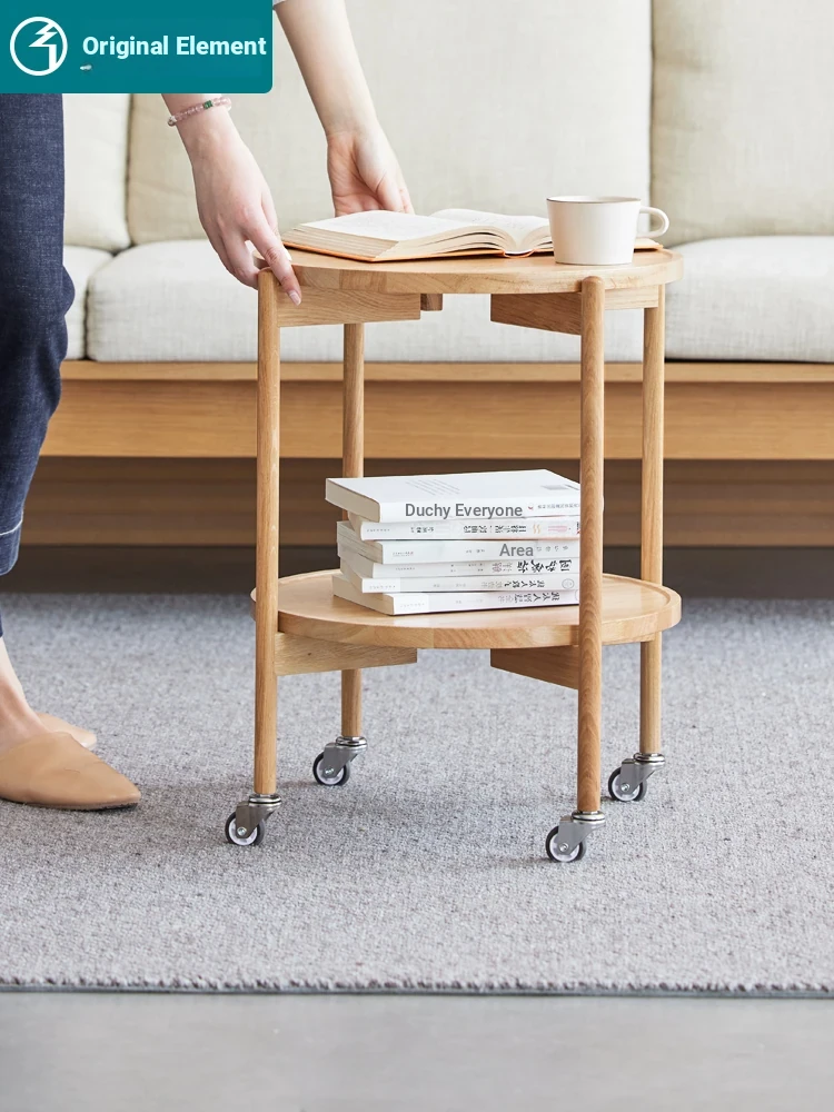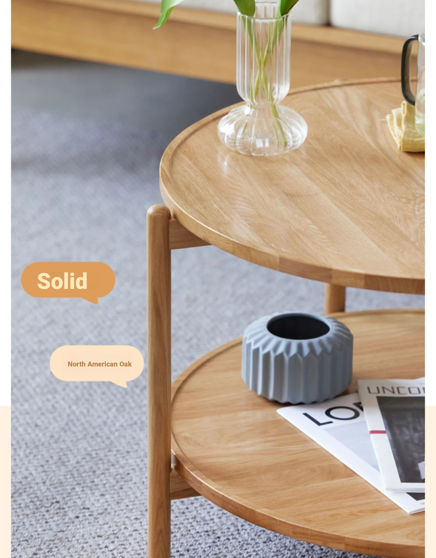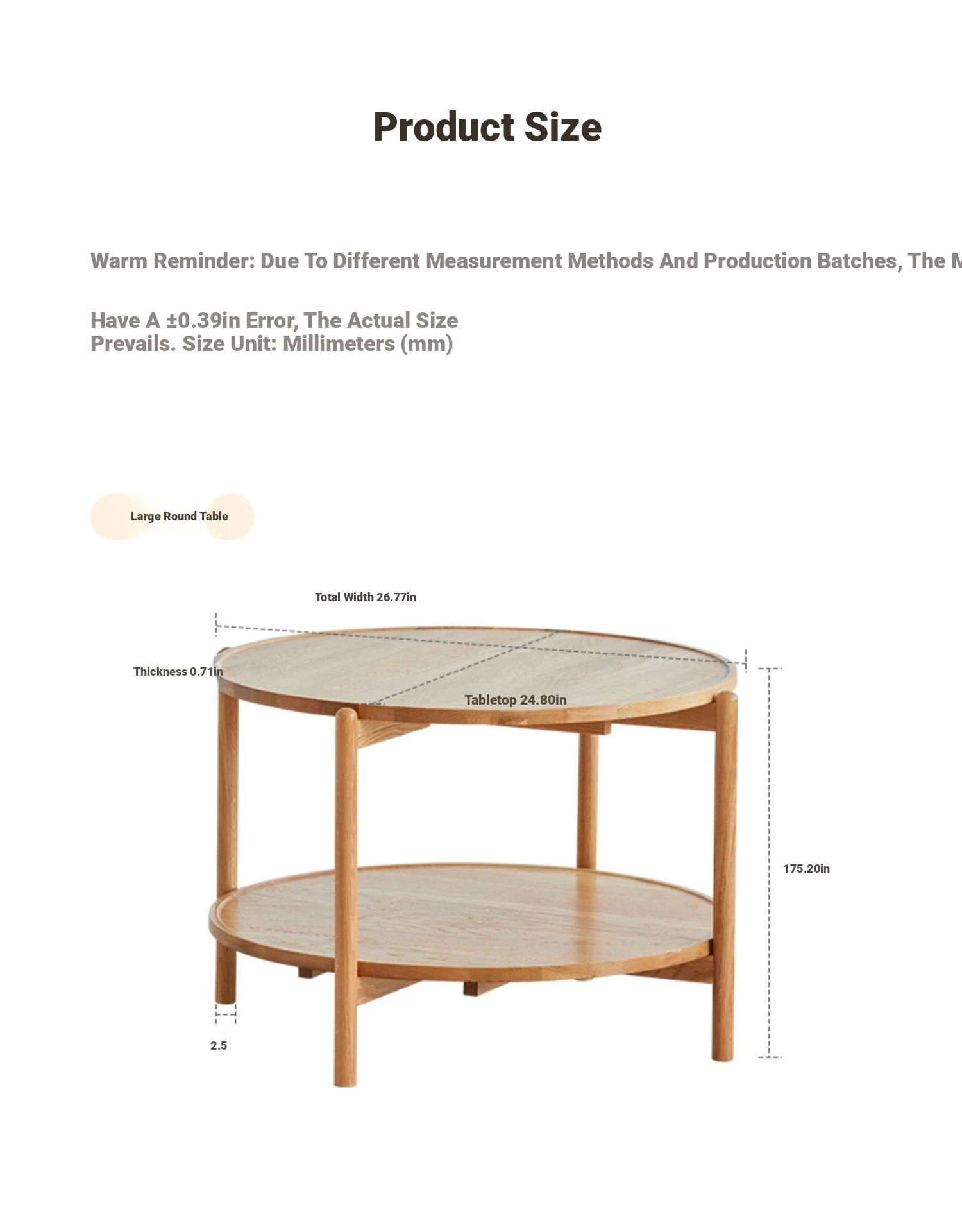 Original Element Solid Wood Coffee Table - Modern Minimalist Oak Double-Layer Round Coffee Table for Small Spaces - Versatile and Stylish Side Table for Compact Living Areas