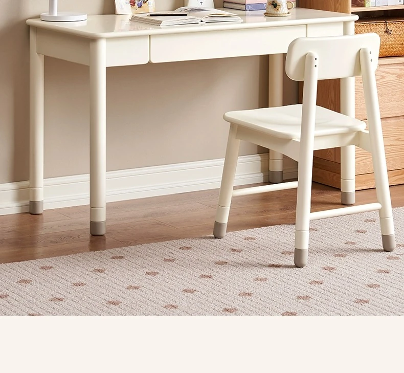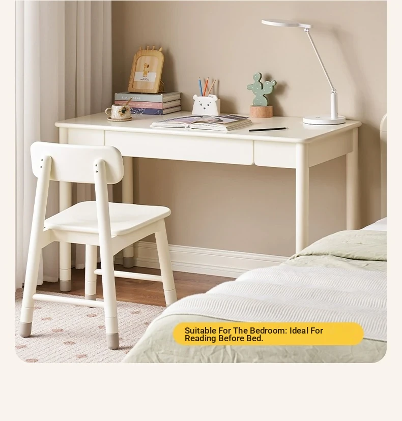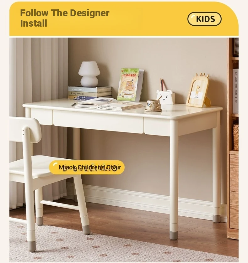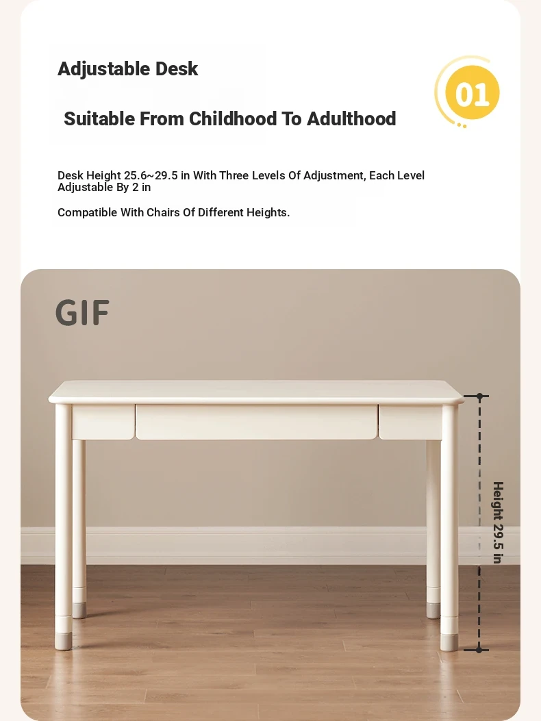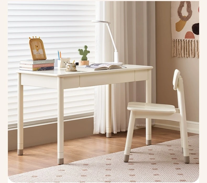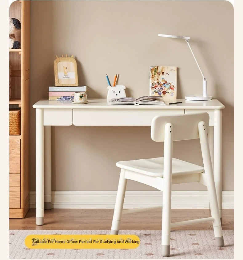 Original Element Solid Wood Height Adjustable Study Desk - Cream White Children's Writing Table for Home Use - Perfect for Students and Home Office