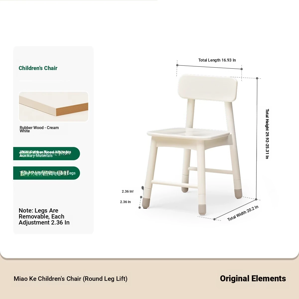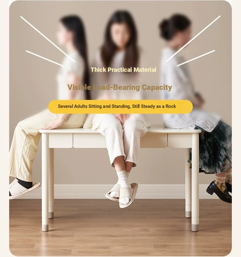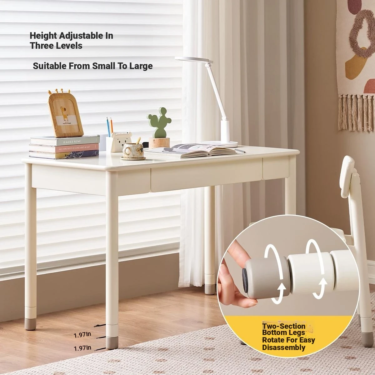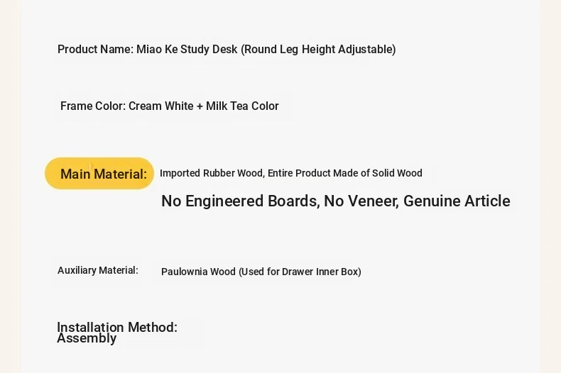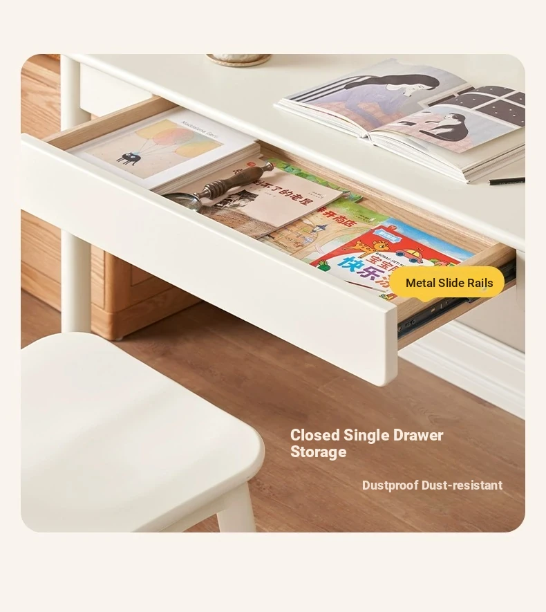 Original Element Solid Wood Height Adjustable Study Desk - Cream White Children's Writing Table for Home Use - Perfect for Students and Home Office