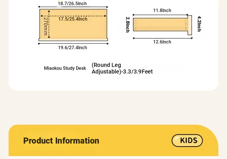 Miaoke Learning Table (Round Leg Adjustable))-1.01000*600*750