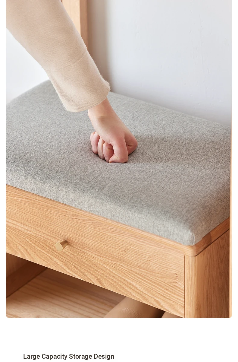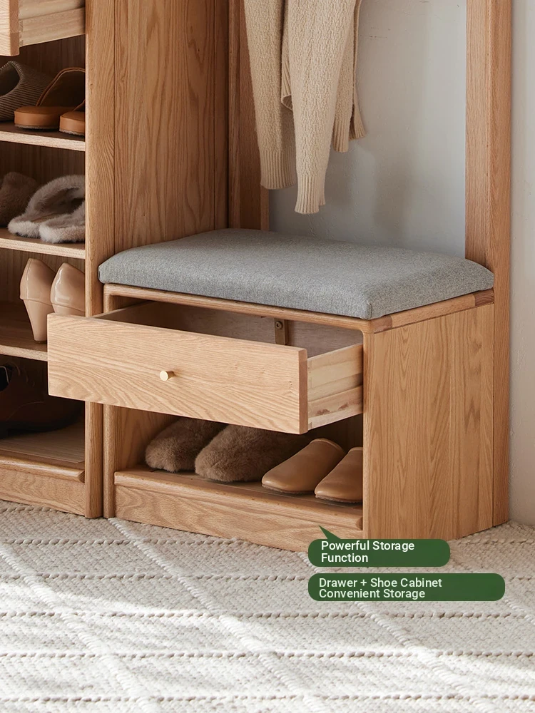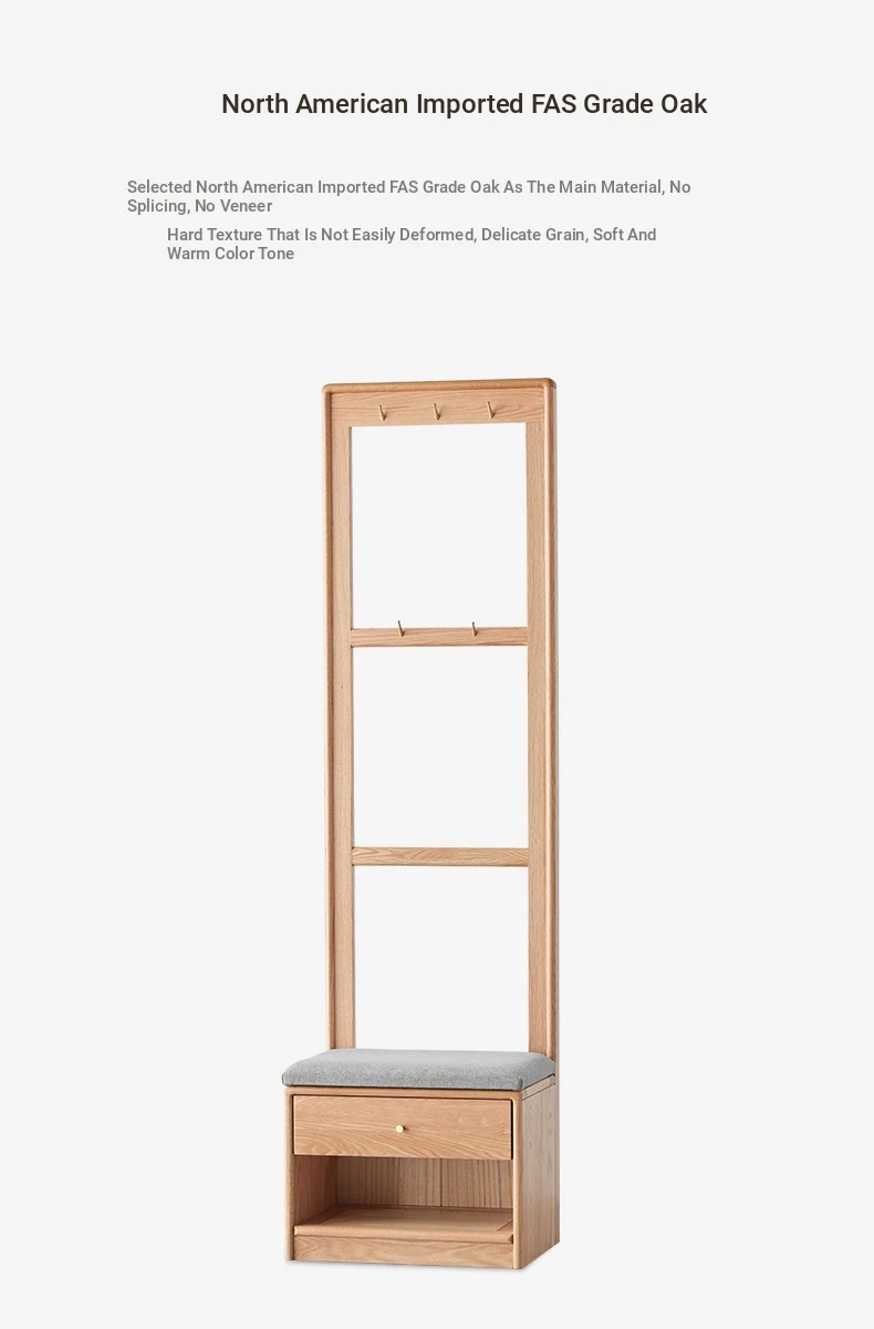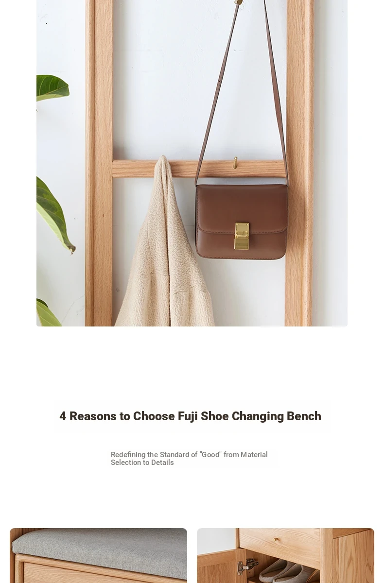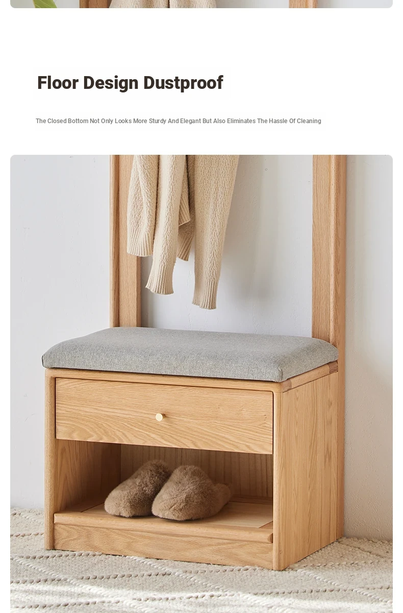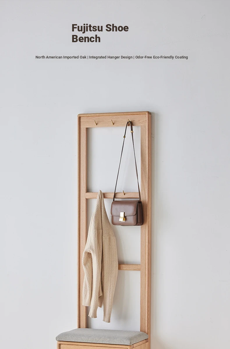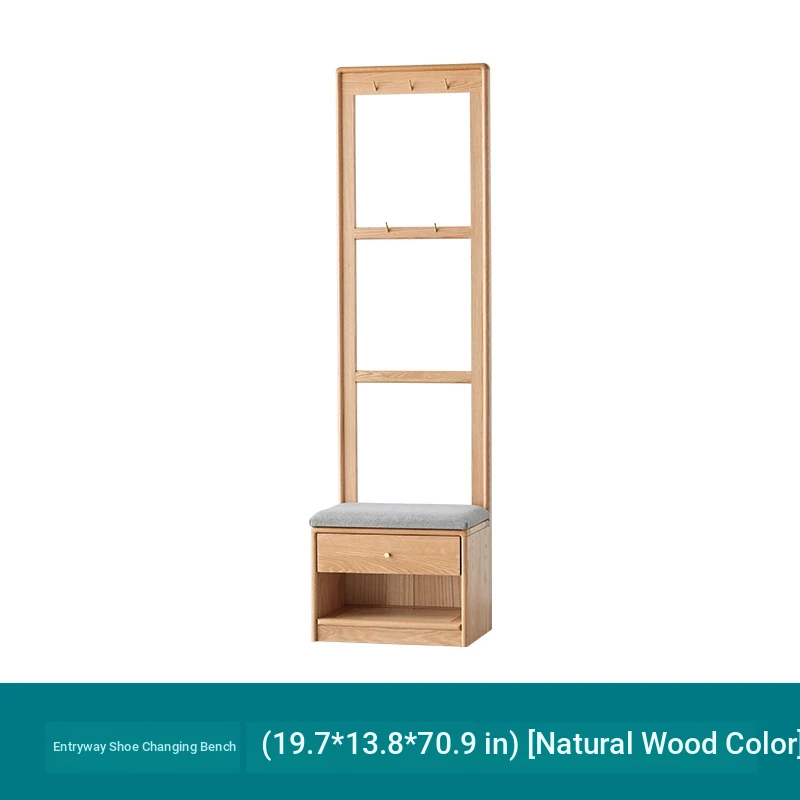**Original Element Solid Wood Shoe Changing Bench with Coat Rack - Nordic Style, Ideal for Living Room and Small Spaces**