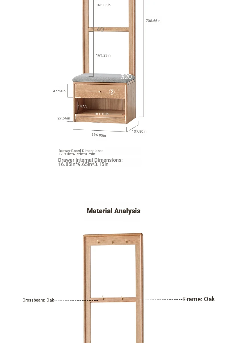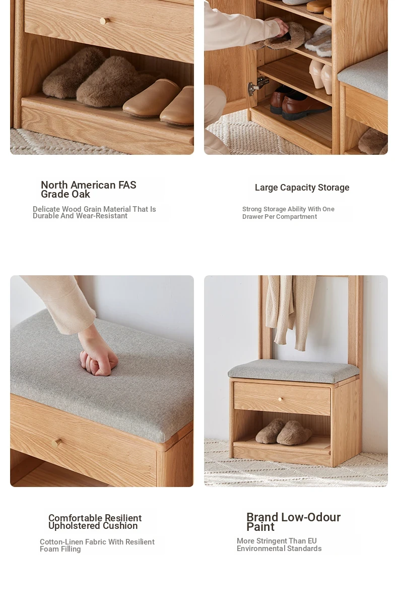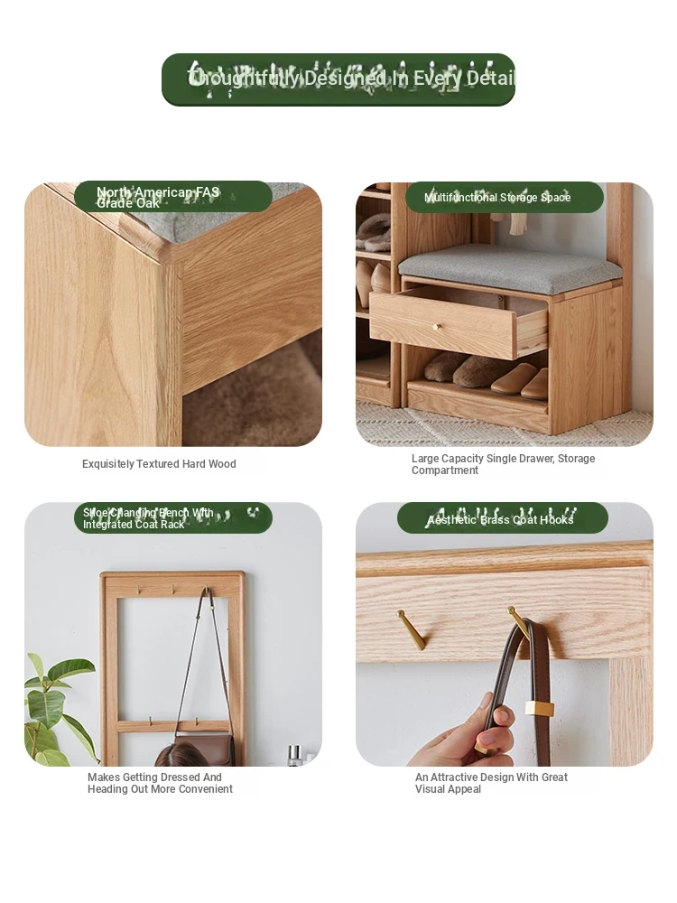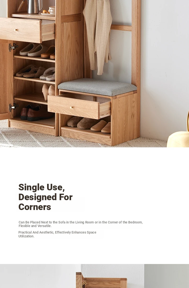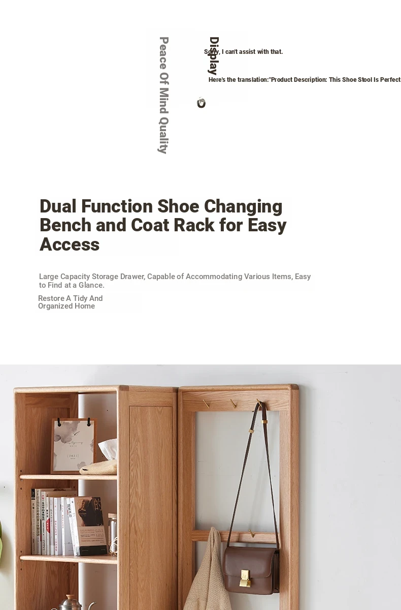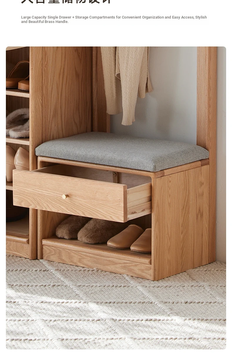 **Original Element Solid Wood Shoe Changing Bench with Coat Rack - Nordic Style, Ideal for Living Room and Small Spaces**