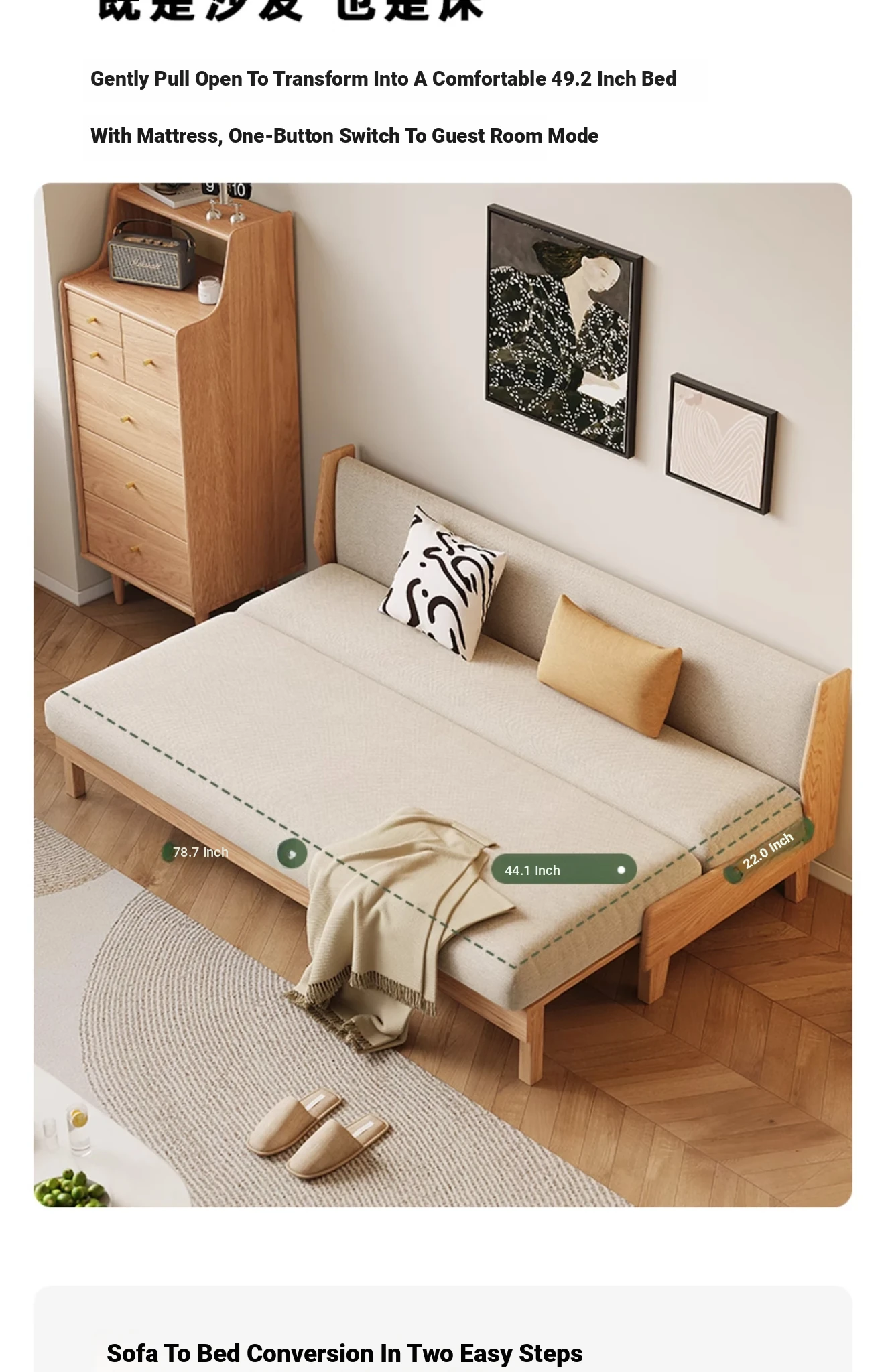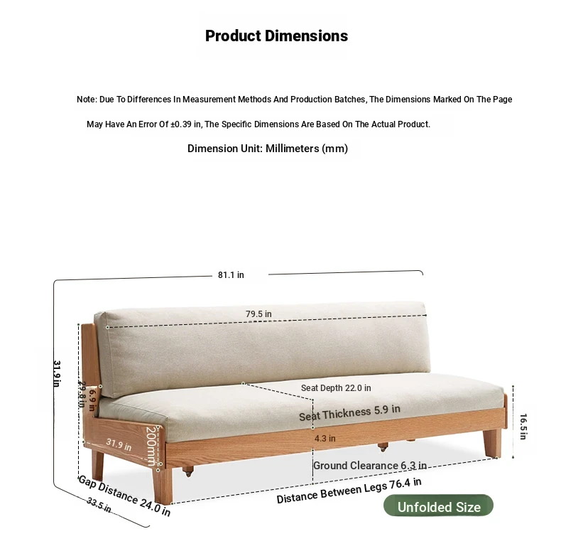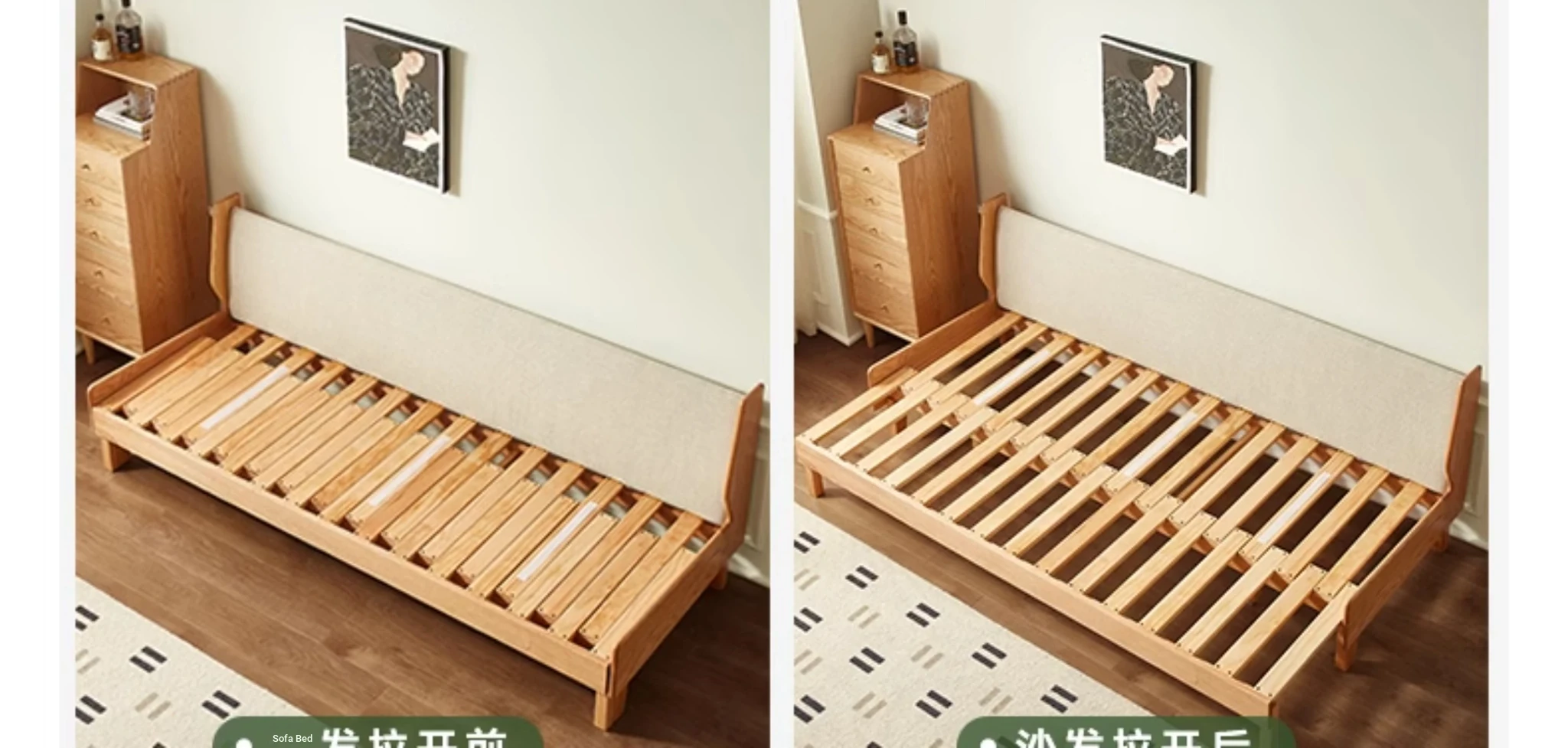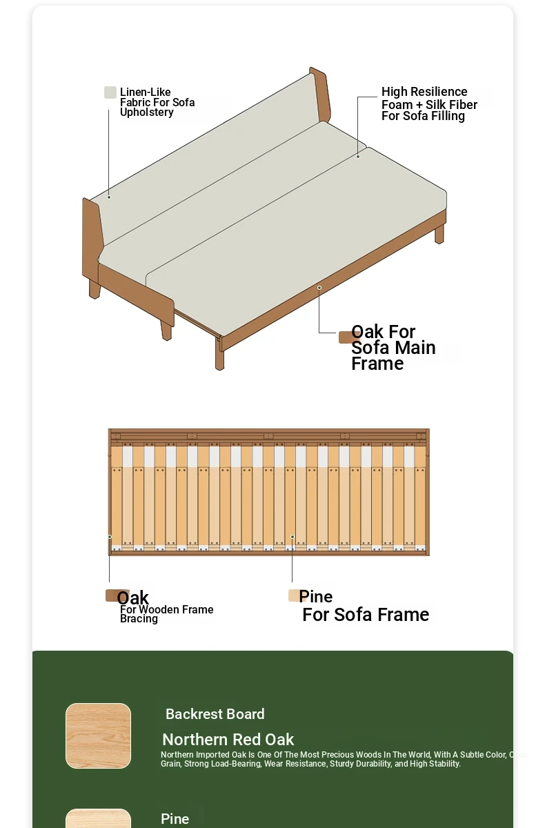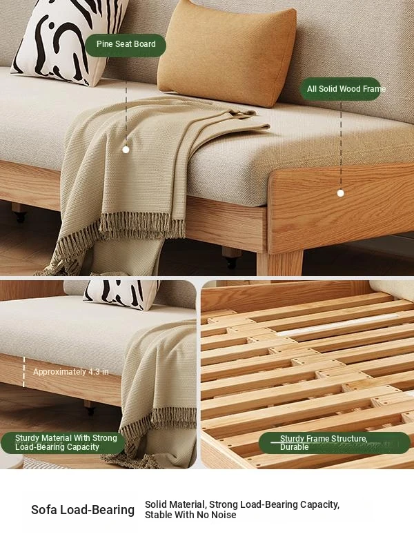 Original Element Solid Wood Sofa Bed - Foldable Dual-Use Fabric Sofa for Modern Minimalist Small Spaces, Oak Expandable Bed - Stylish and Space-Saving Solution for Your Home!