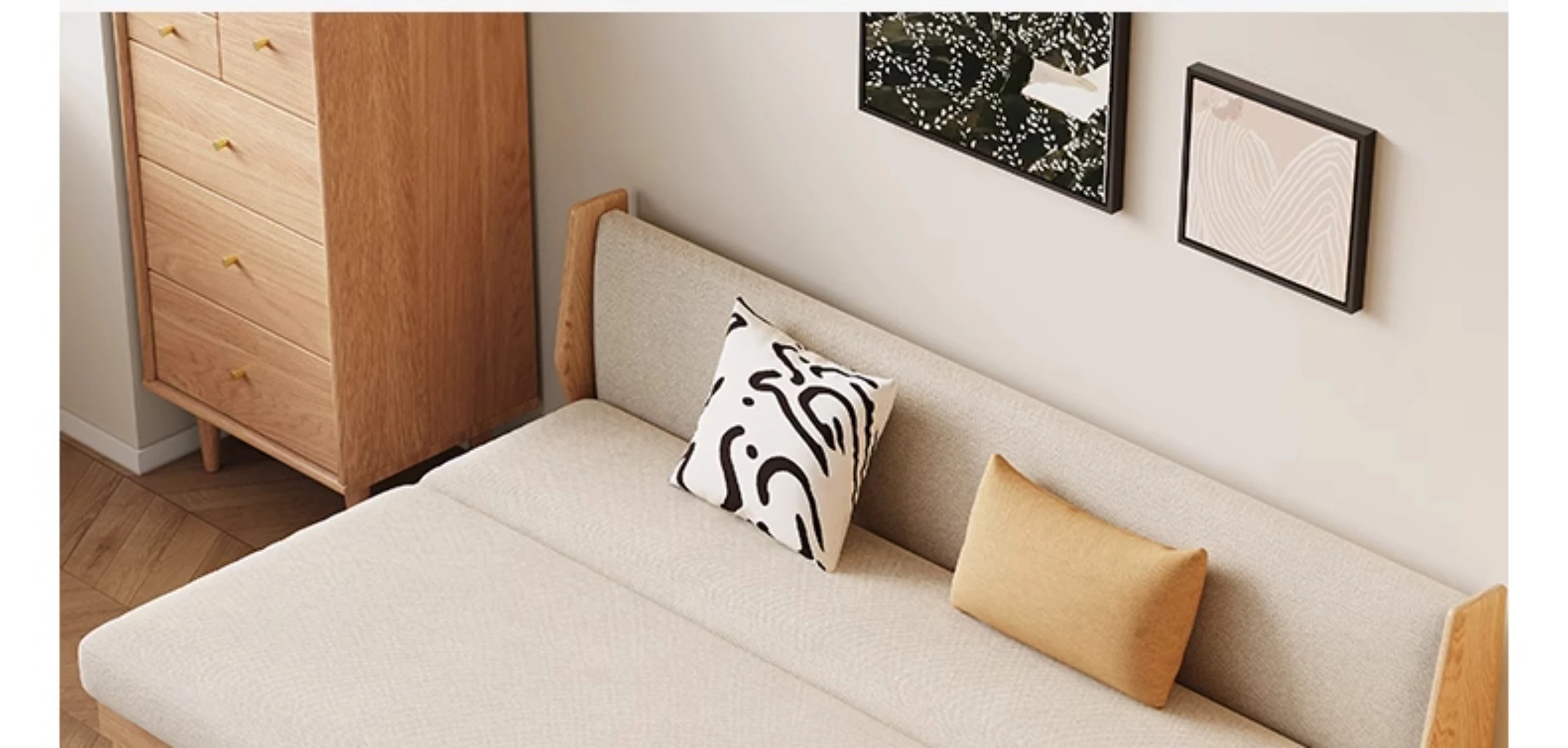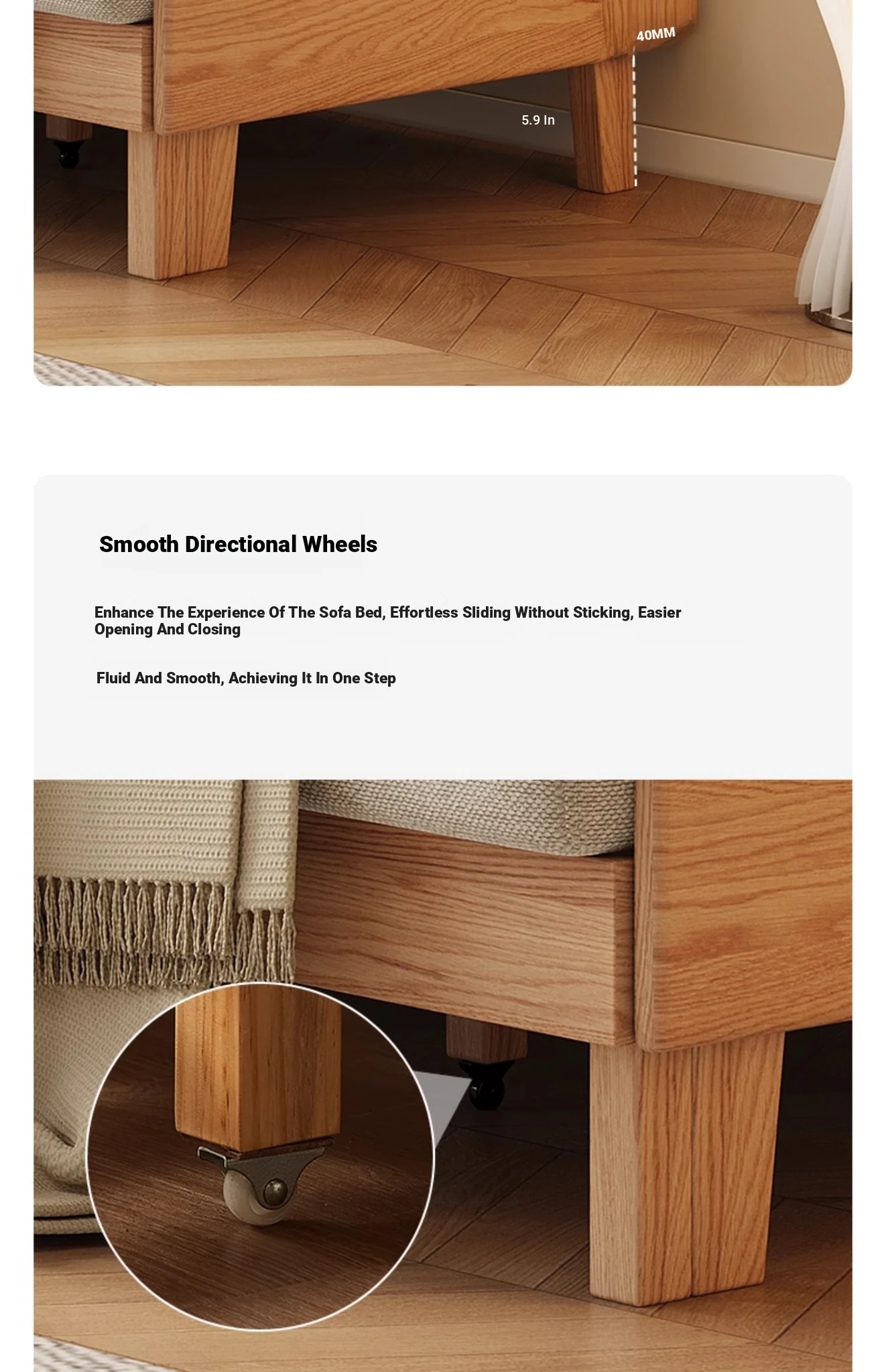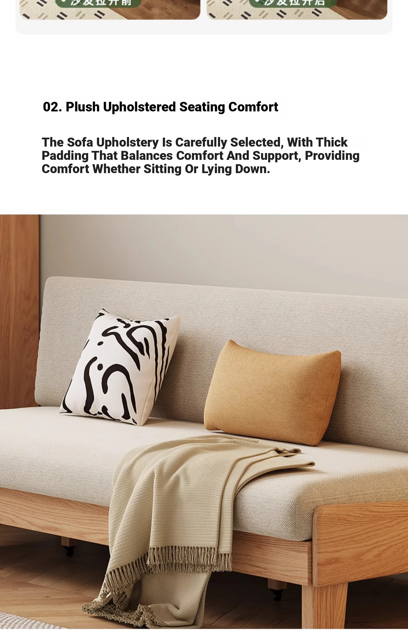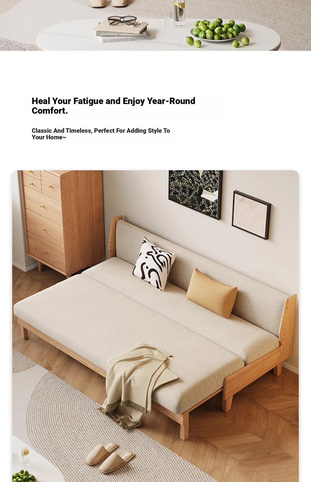 Original Element Solid Wood Sofa Bed - Foldable Dual-Use Fabric Sofa for Modern Minimalist Small Spaces, Oak Expandable Bed - Stylish and Space-Saving Solution for Your Home!