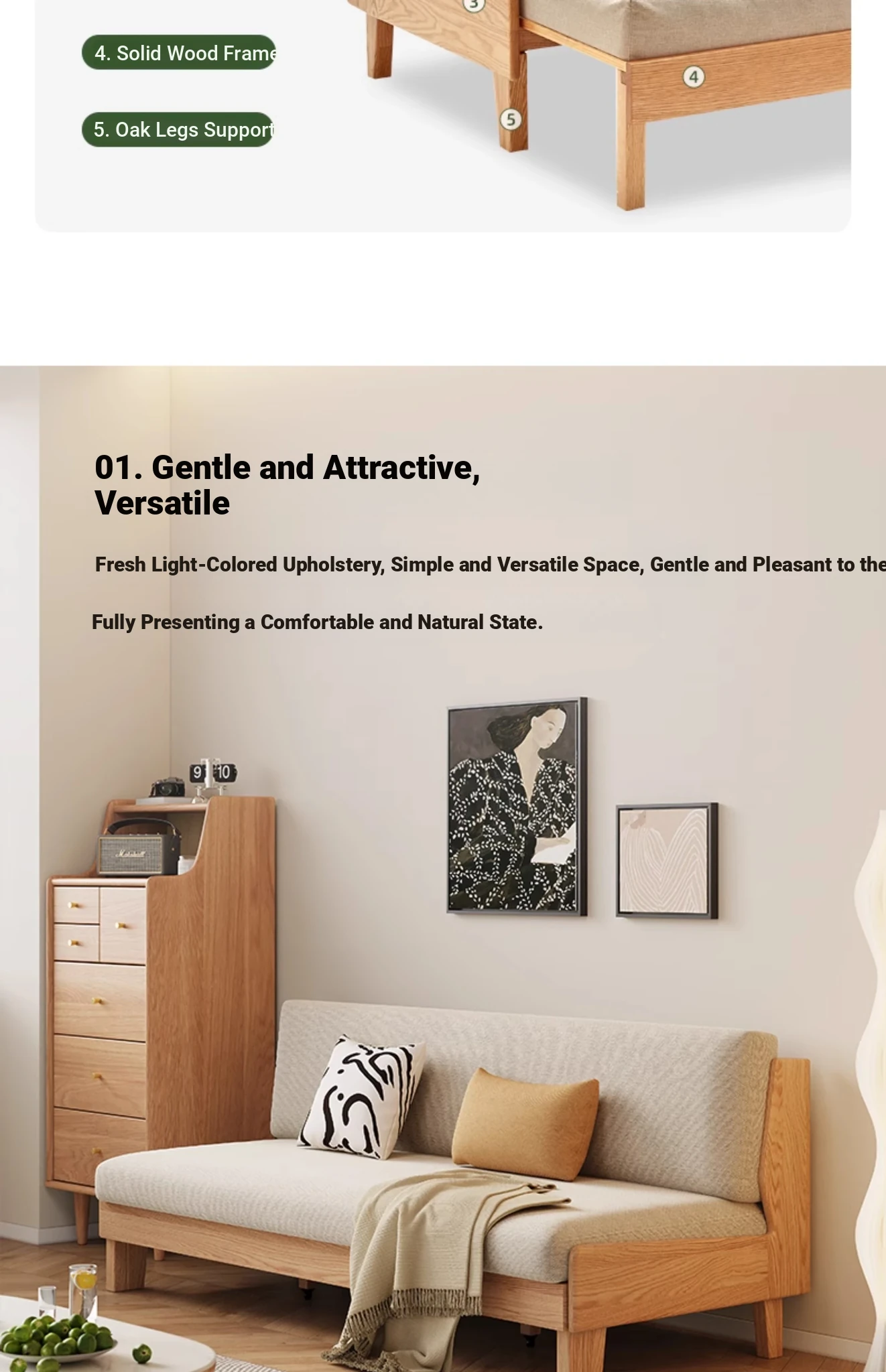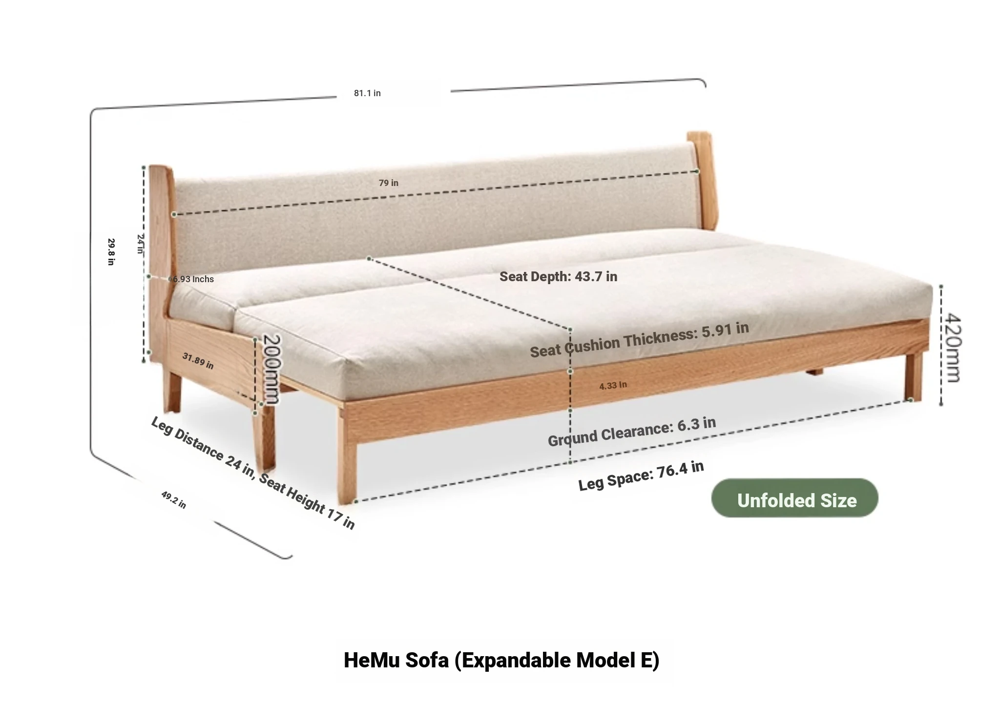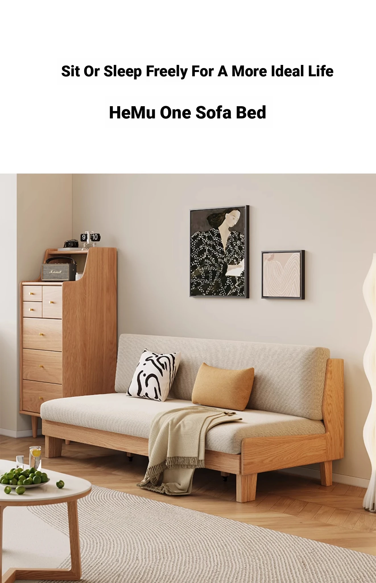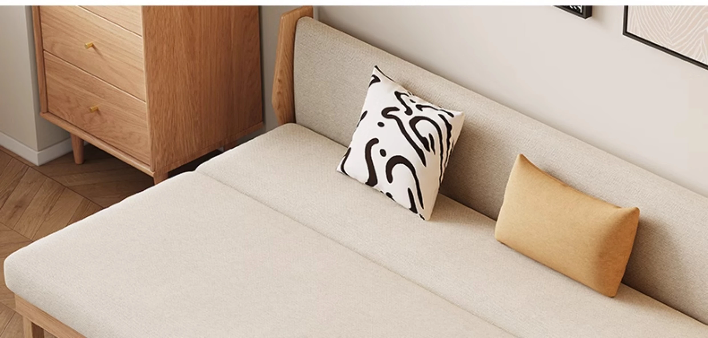 Original Element Solid Wood Sofa Bed - Foldable Dual-Use Fabric Sofa for Modern Minimalist Small Spaces, Oak Expandable Bed - Stylish and Space-Saving Solution for Your Home!