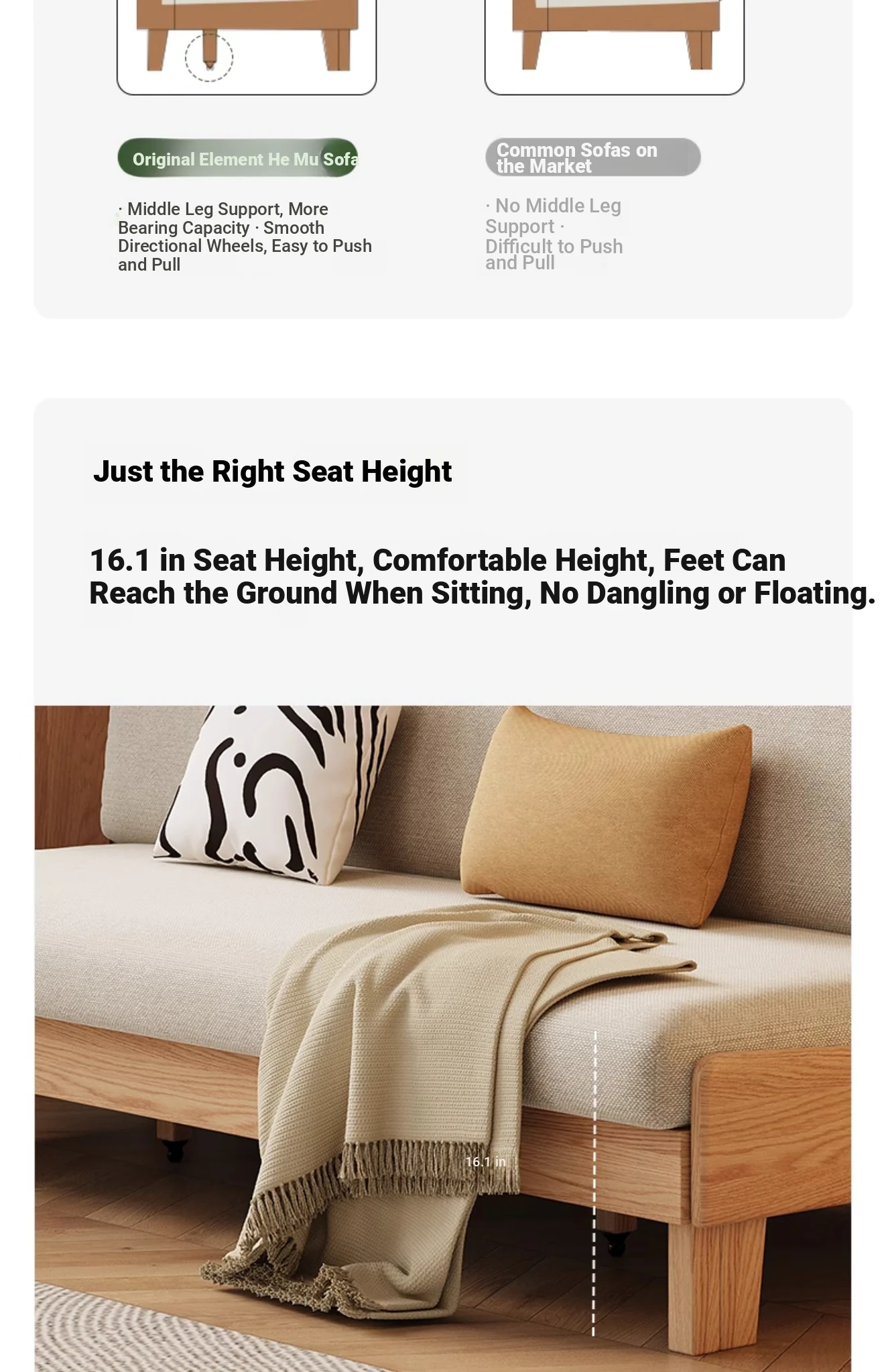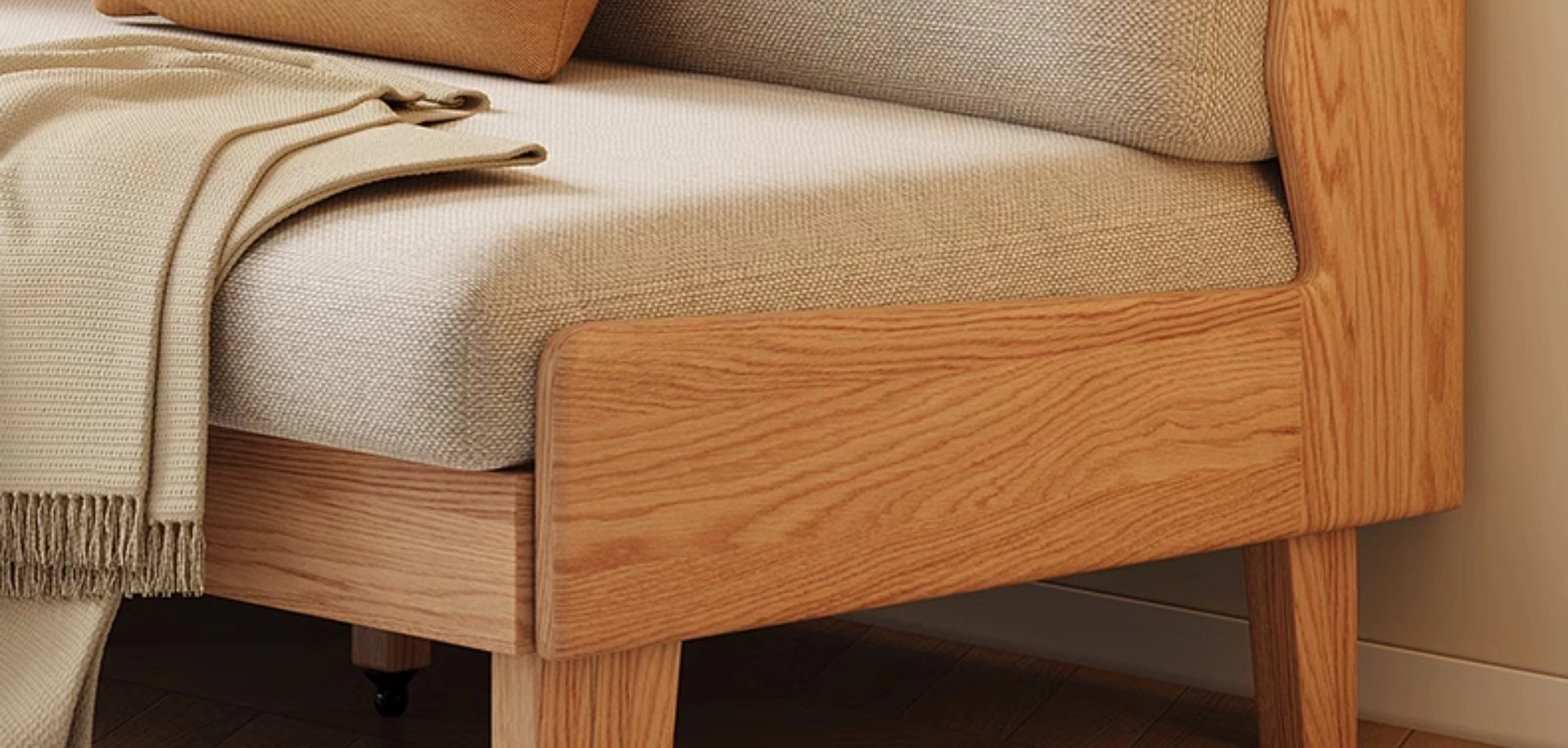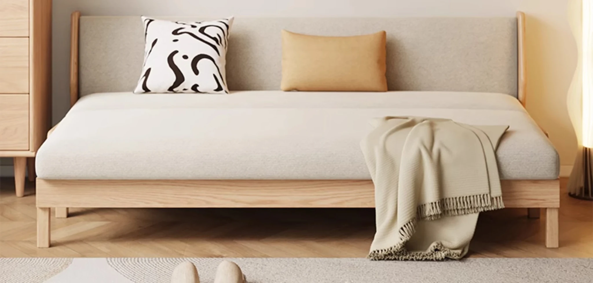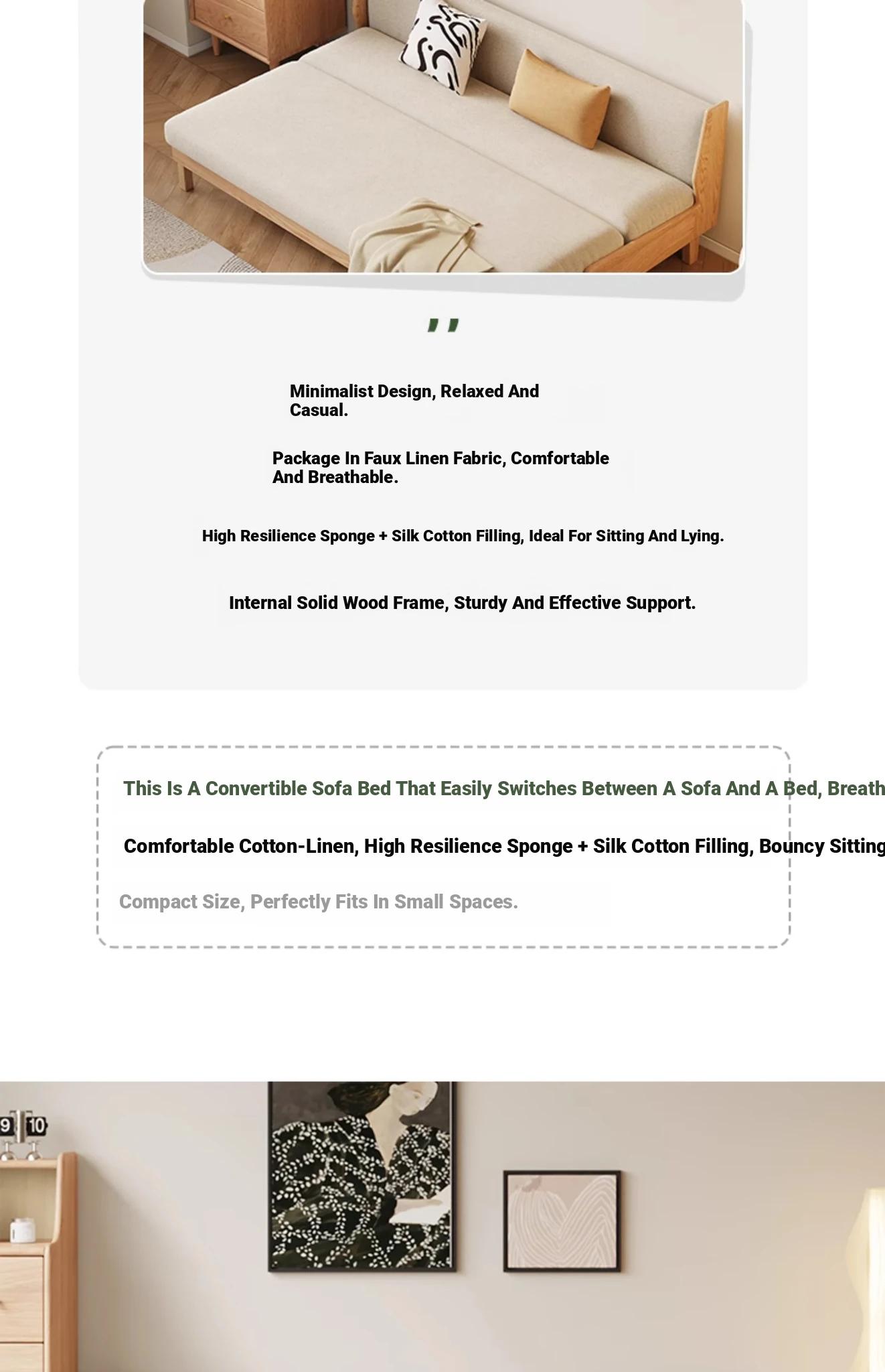 Original Element Solid Wood Sofa Bed - Foldable Dual-Use Fabric Sofa for Modern Minimalist Small Spaces, Oak Expandable Bed - Stylish and Space-Saving Solution for Your Home!