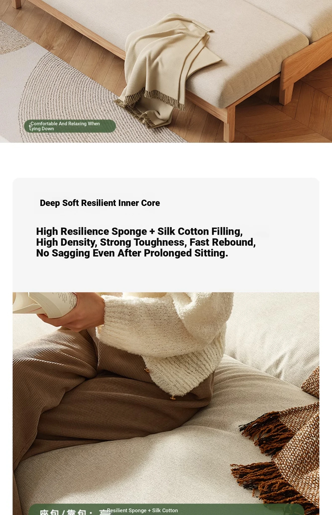 Log color-oak sofa (telescopic) (beige soft bag)(81.10in*33.46in*29.84in)