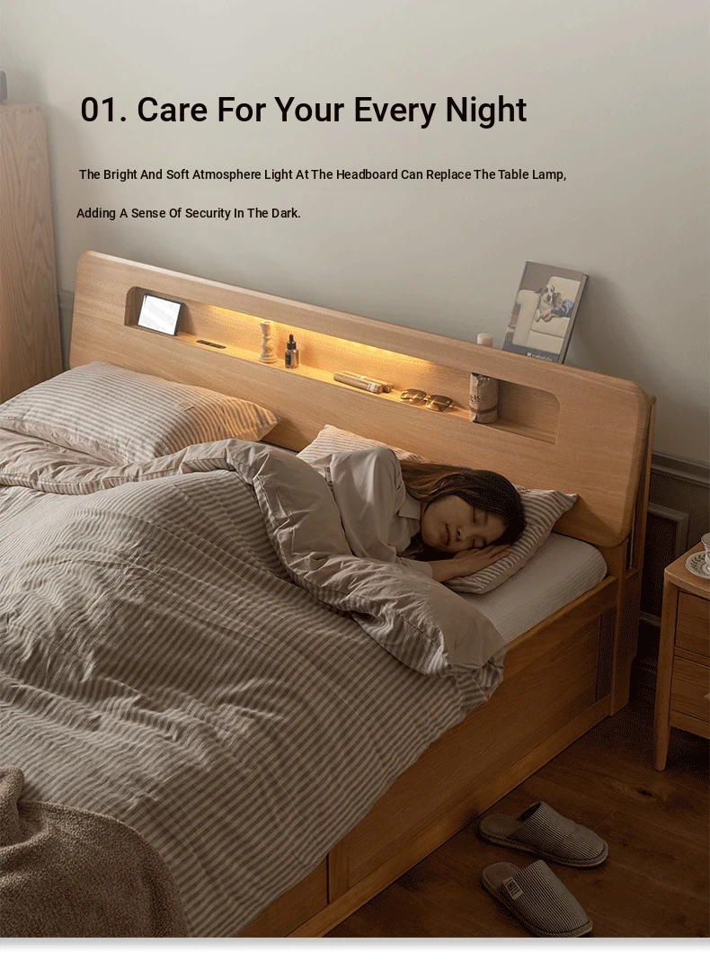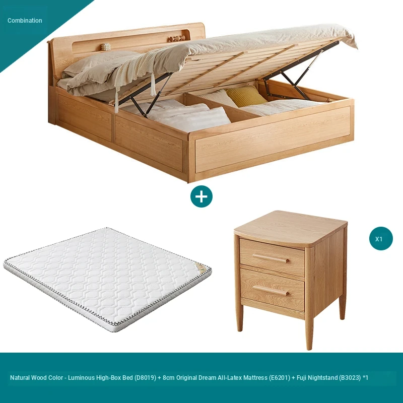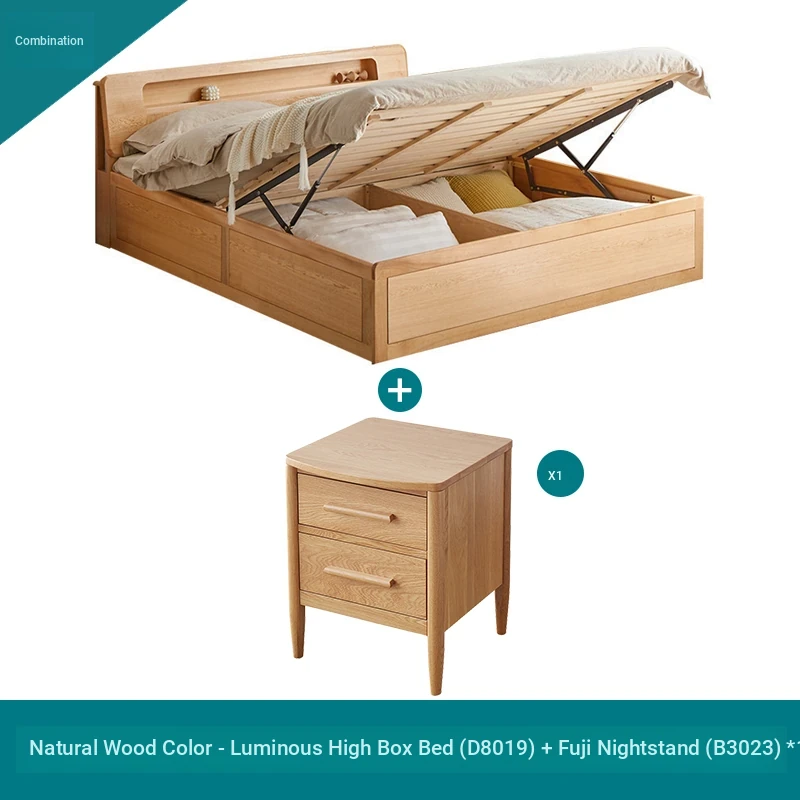 Log color-luminous high box bed (D8019)+ Fuji bedside table (B3023)* 1