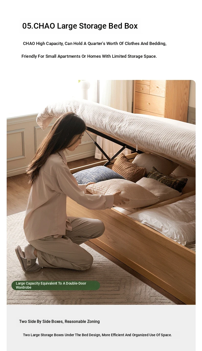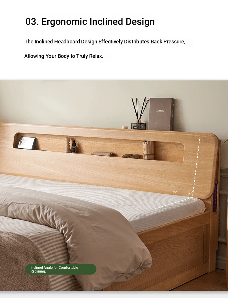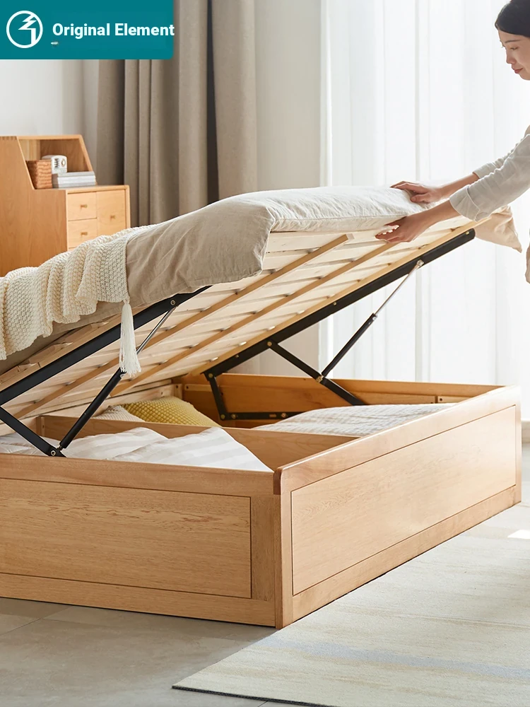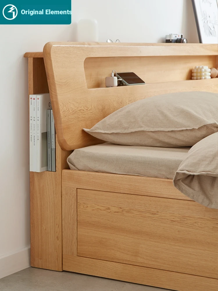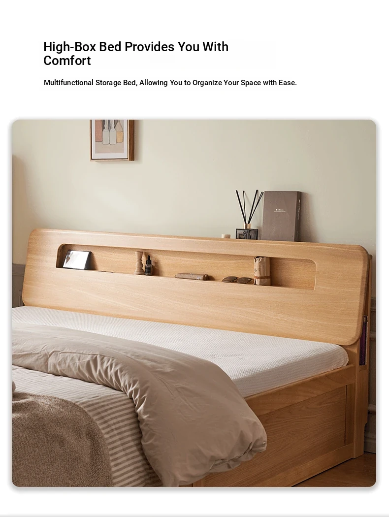 "Original Elements Solid Wood Box Bed - Nordic Style High Storage Bed with Natural Oak for Bedrooms - Perfect for Underfloor Heating and Home Storage Solutions"