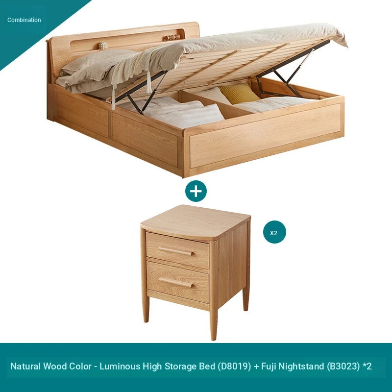 Log color-luminous high box bed (D8019)+ Fuji bedside table (B3023)* 2