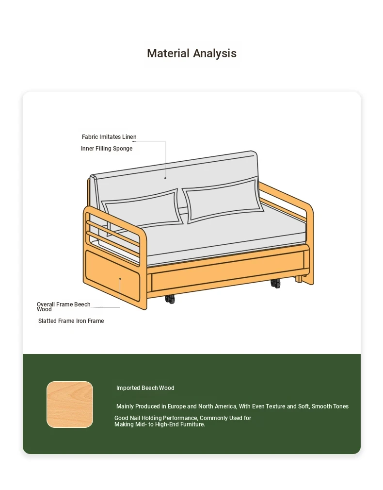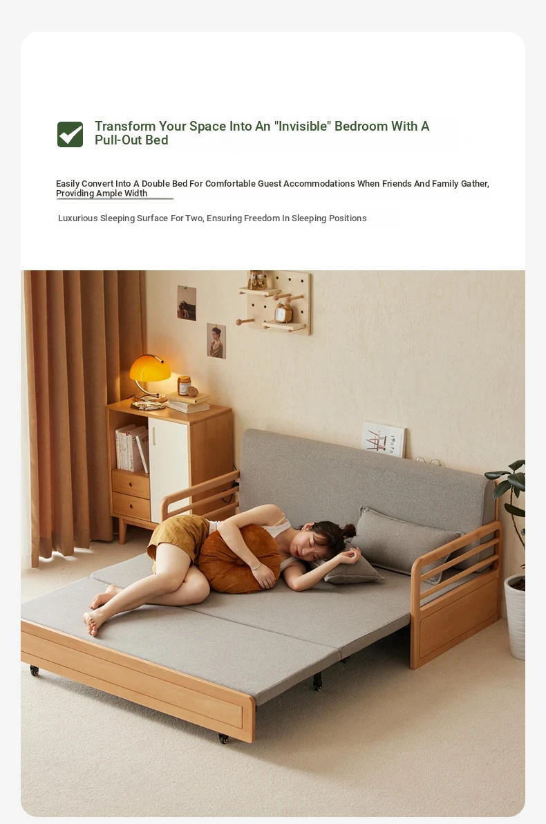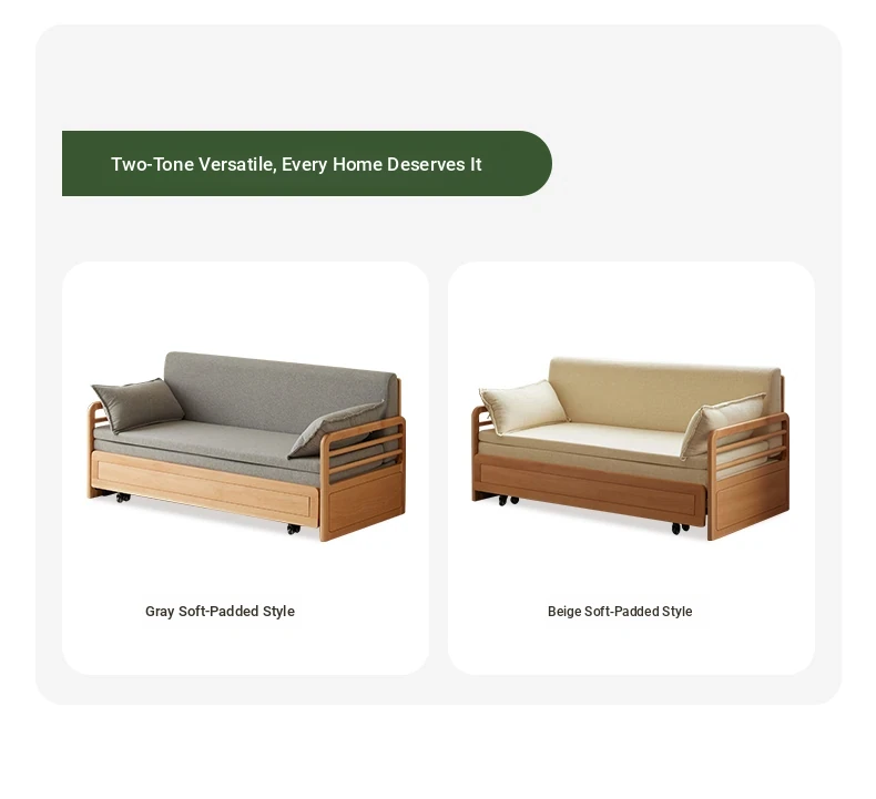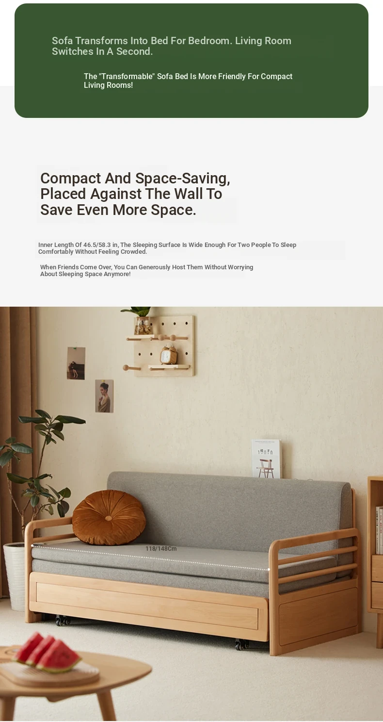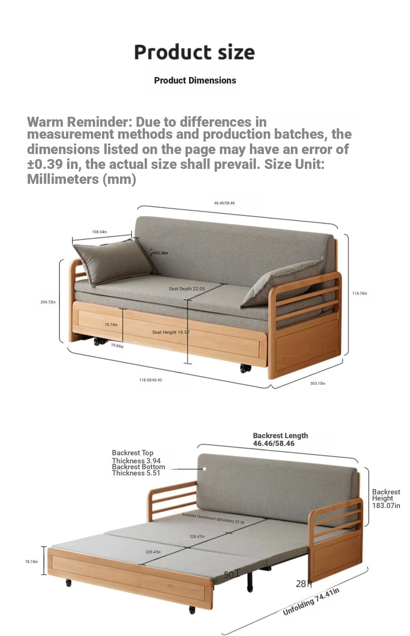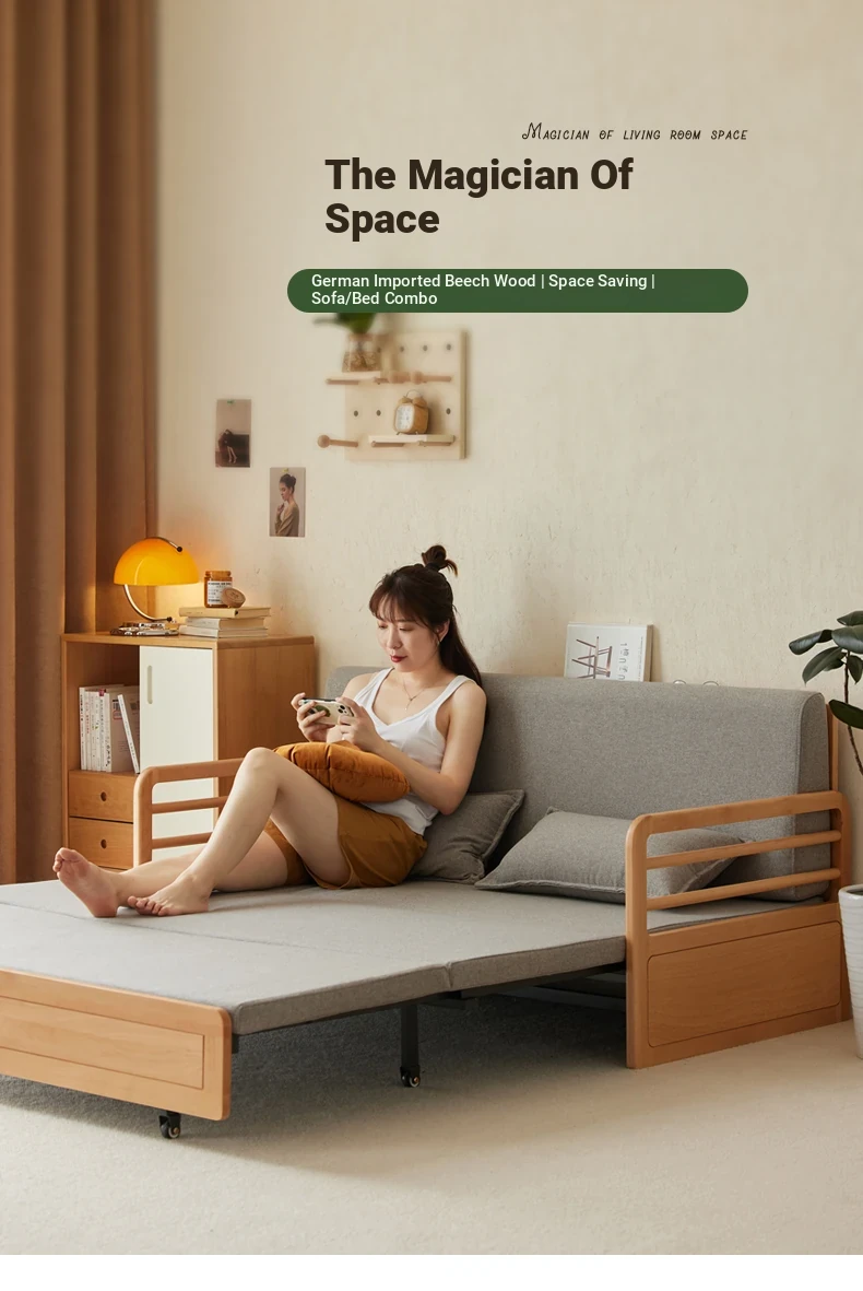 Original Elements Solid Wood Sofa Bed - Foldable 2-in-1 Design for Small Spaces, Beech Wood Sofa with Pull-Out Expandable Bed for Cozy Living Rooms