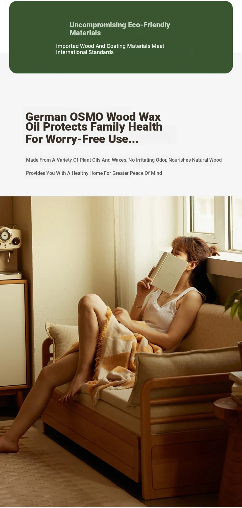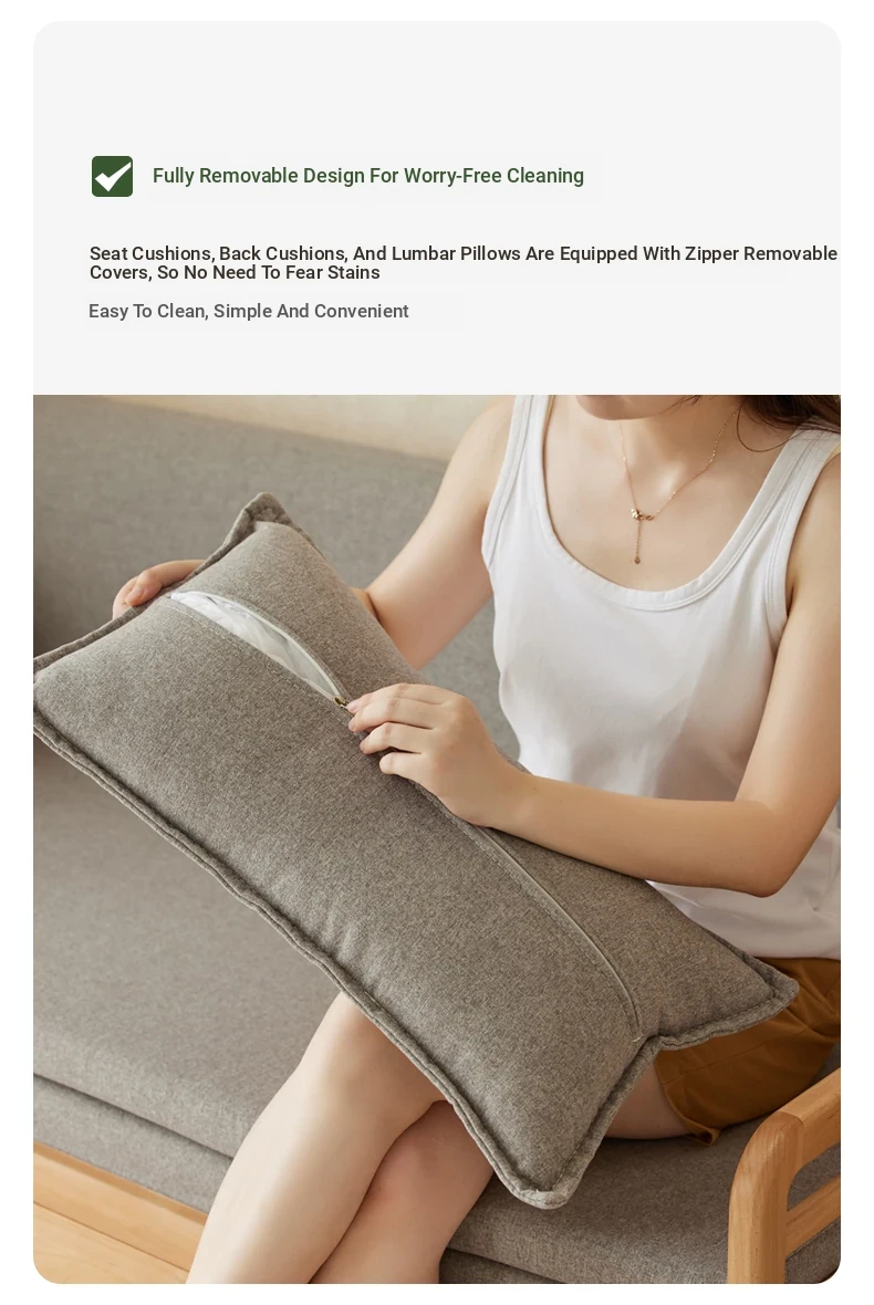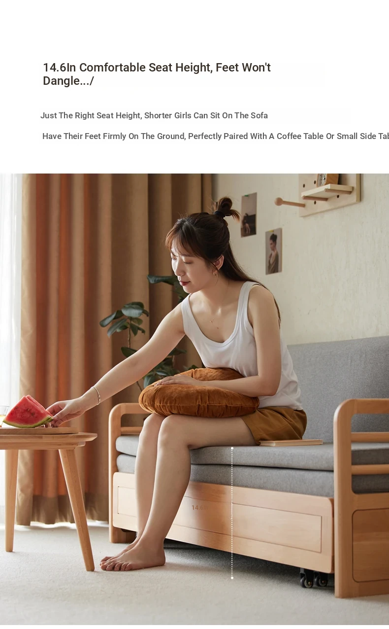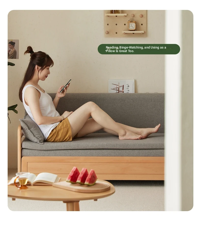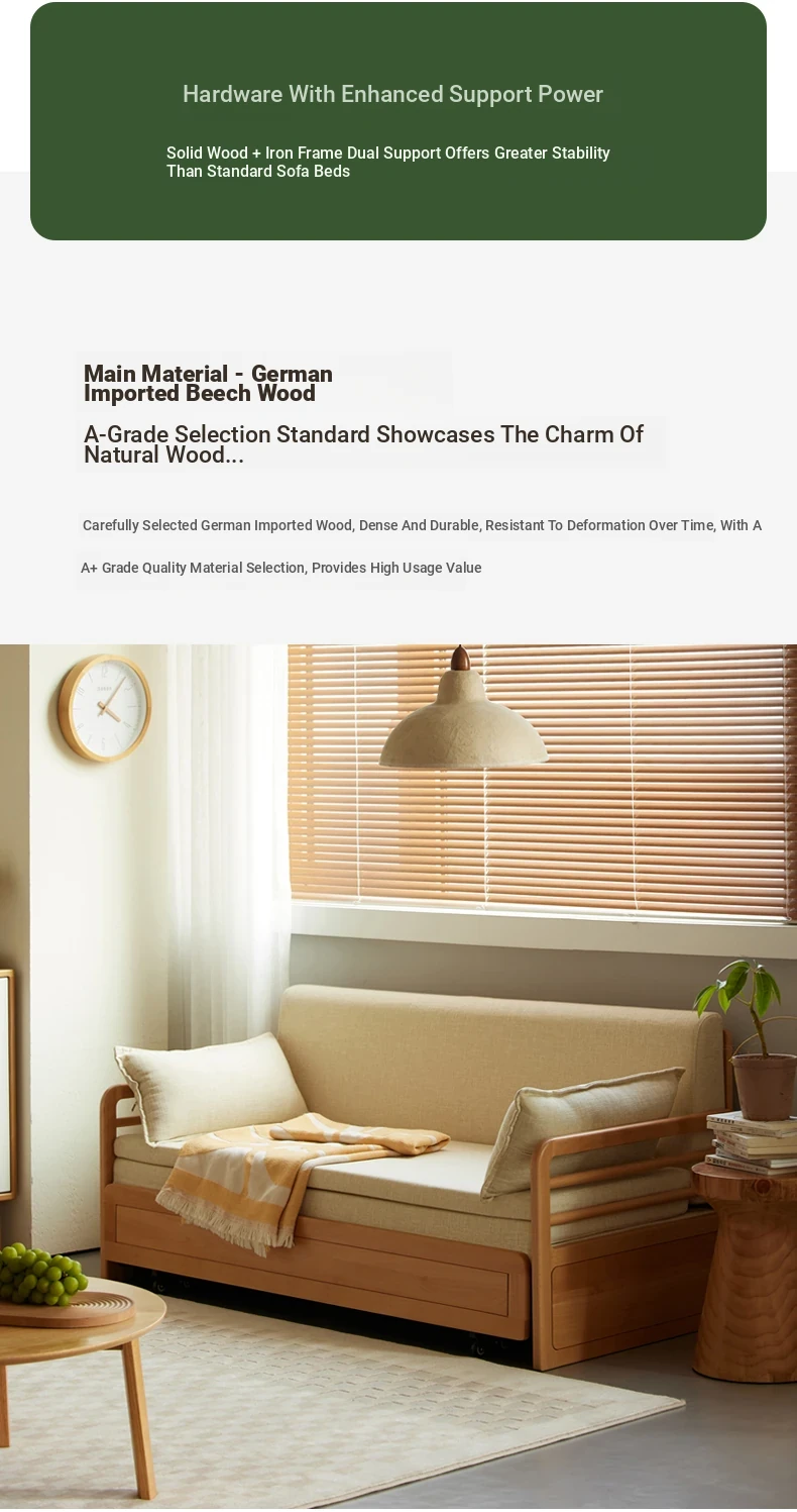 Original Elements Solid Wood Sofa Bed - Foldable 2-in-1 Design for Small Spaces, Beech Wood Sofa with Pull-Out Expandable Bed for Cozy Living Rooms