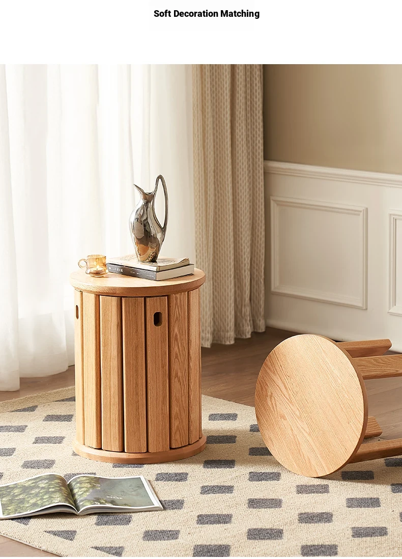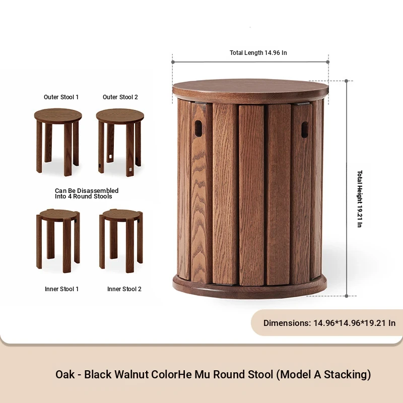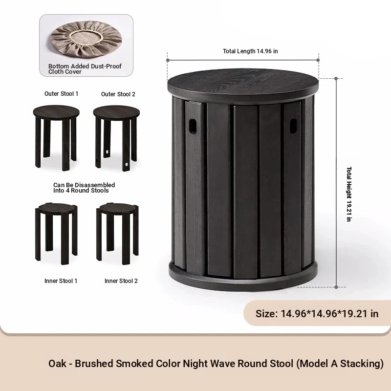 [Oak-Smoked Color] 14.96 in Stacked Round Stool (14.96in*14.96in*19.21in)(M6131)(In Stock speed hair])