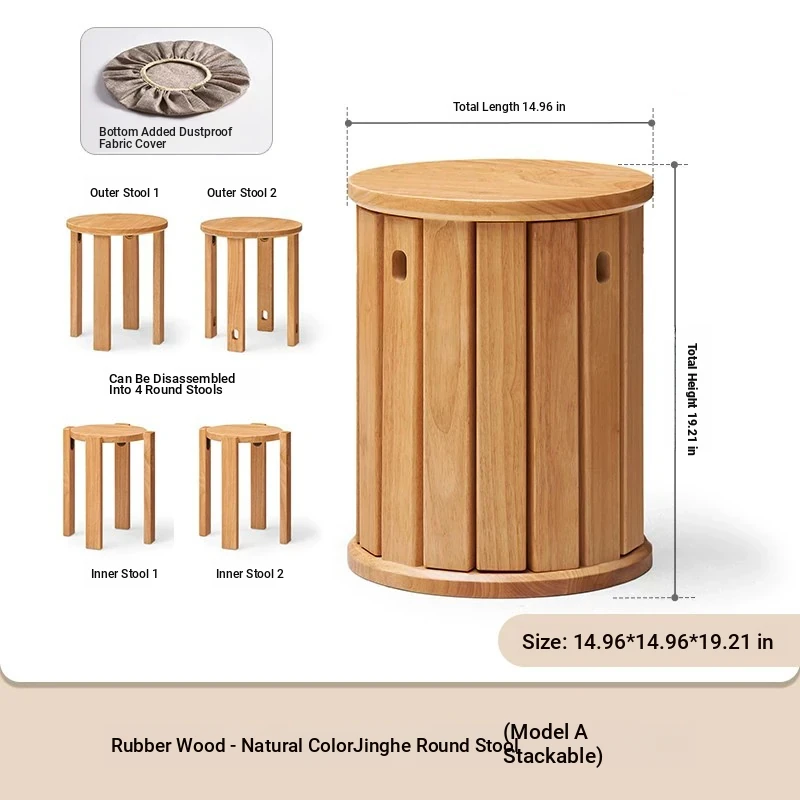 [Rubber Wood-Log Color] 14.96 in Stacked Round Stool (14.96in*14.96in*19.21in)(P3132)(In Stock speed hair])