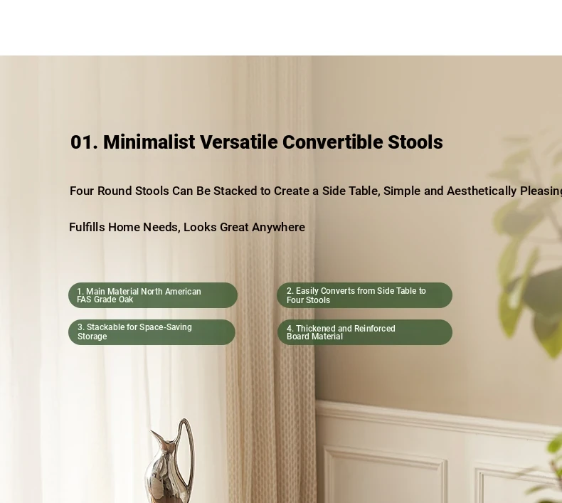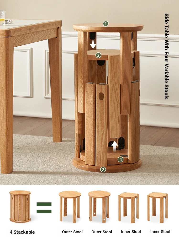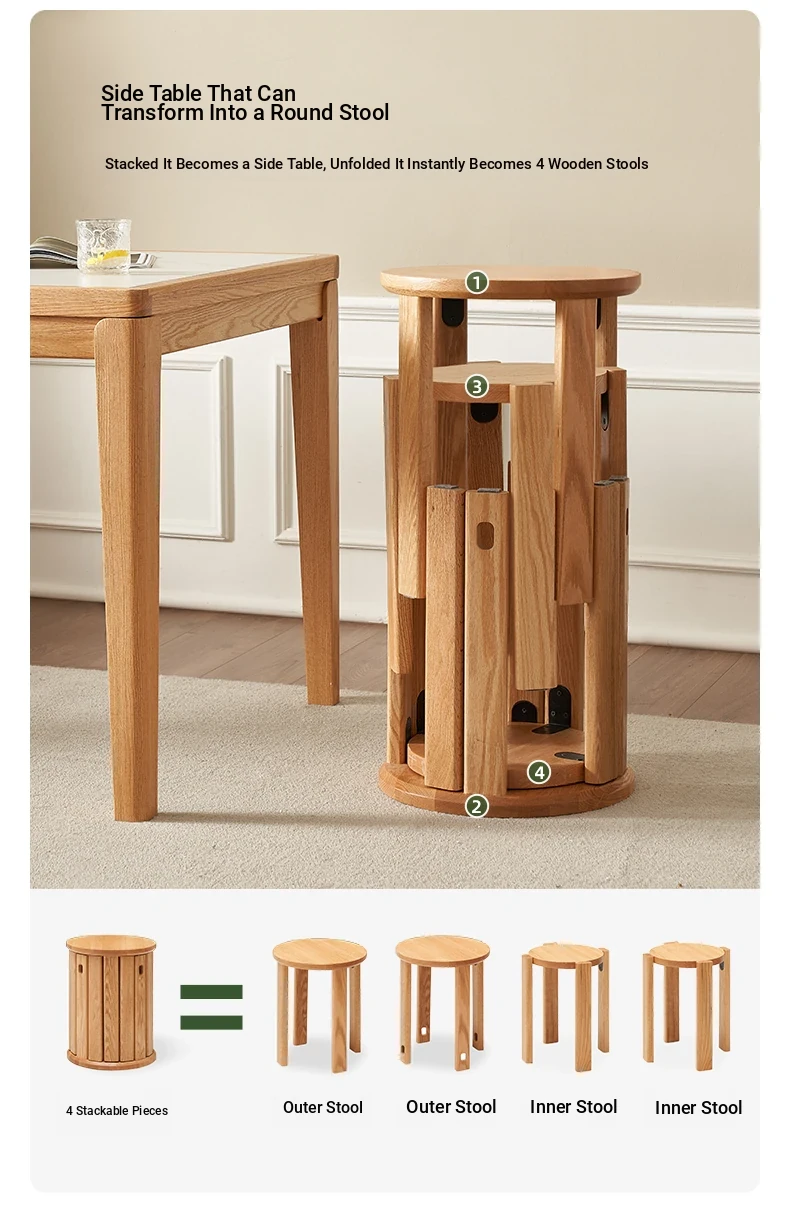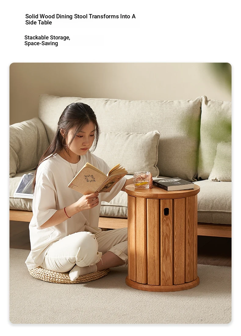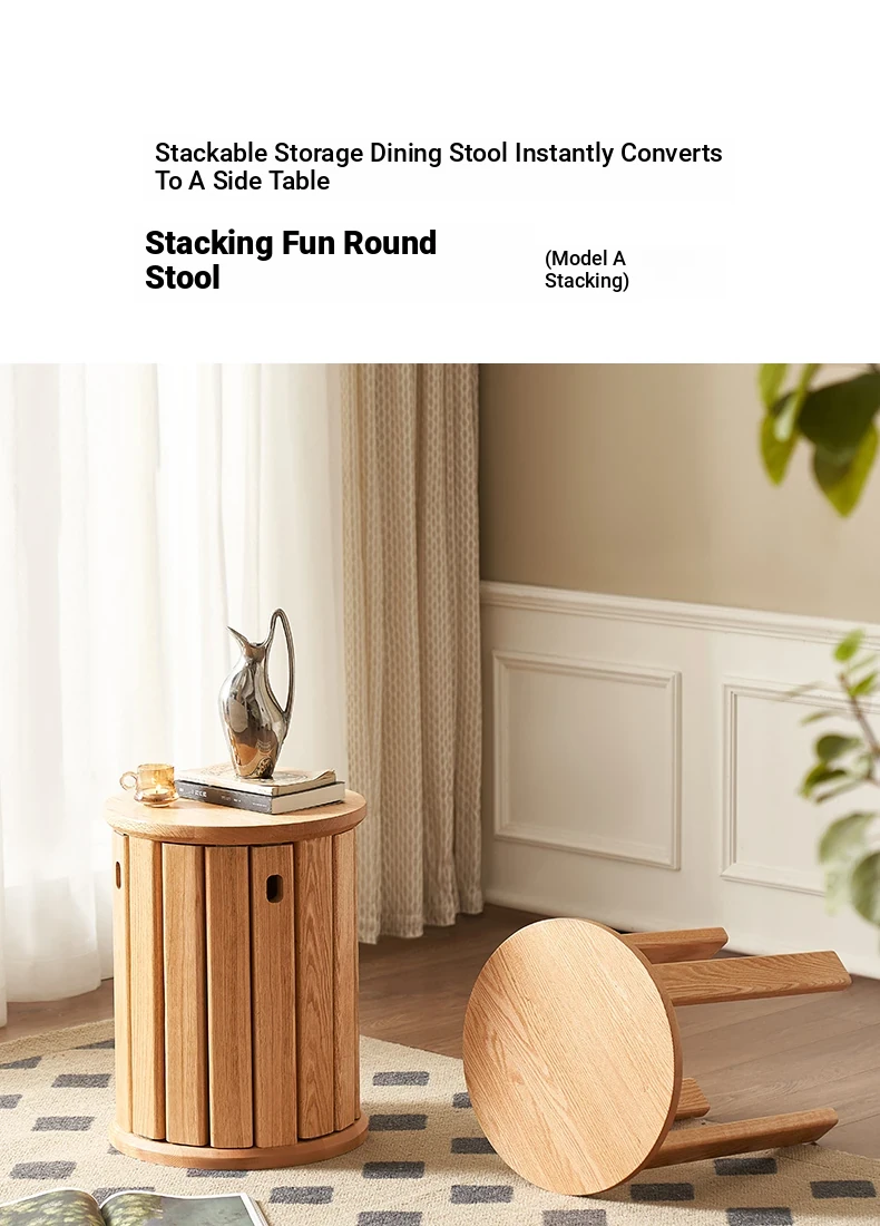 Original Elements Solid Wood Stacking Stool - Creative Round Multi-Use Stool for Home, Trendy Coffee Table Seating, Space-Saving Oak Stool for Living Room