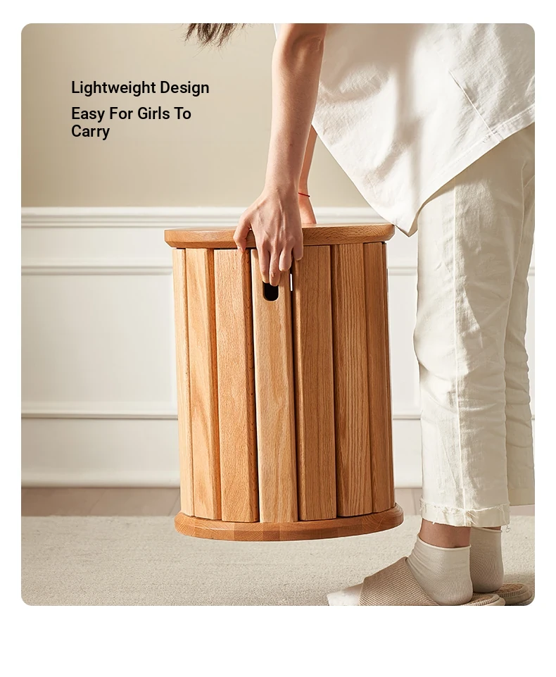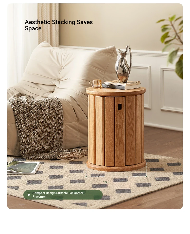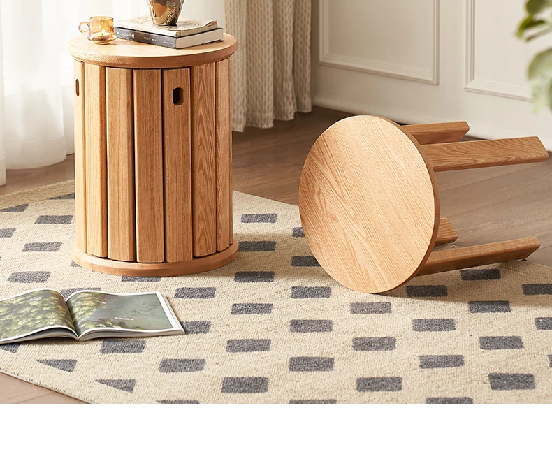 [Oak-Log Color] 14.96 in Stacked Round Stool (14.96in*14.96in*19.21in)(In Stock speed hair])