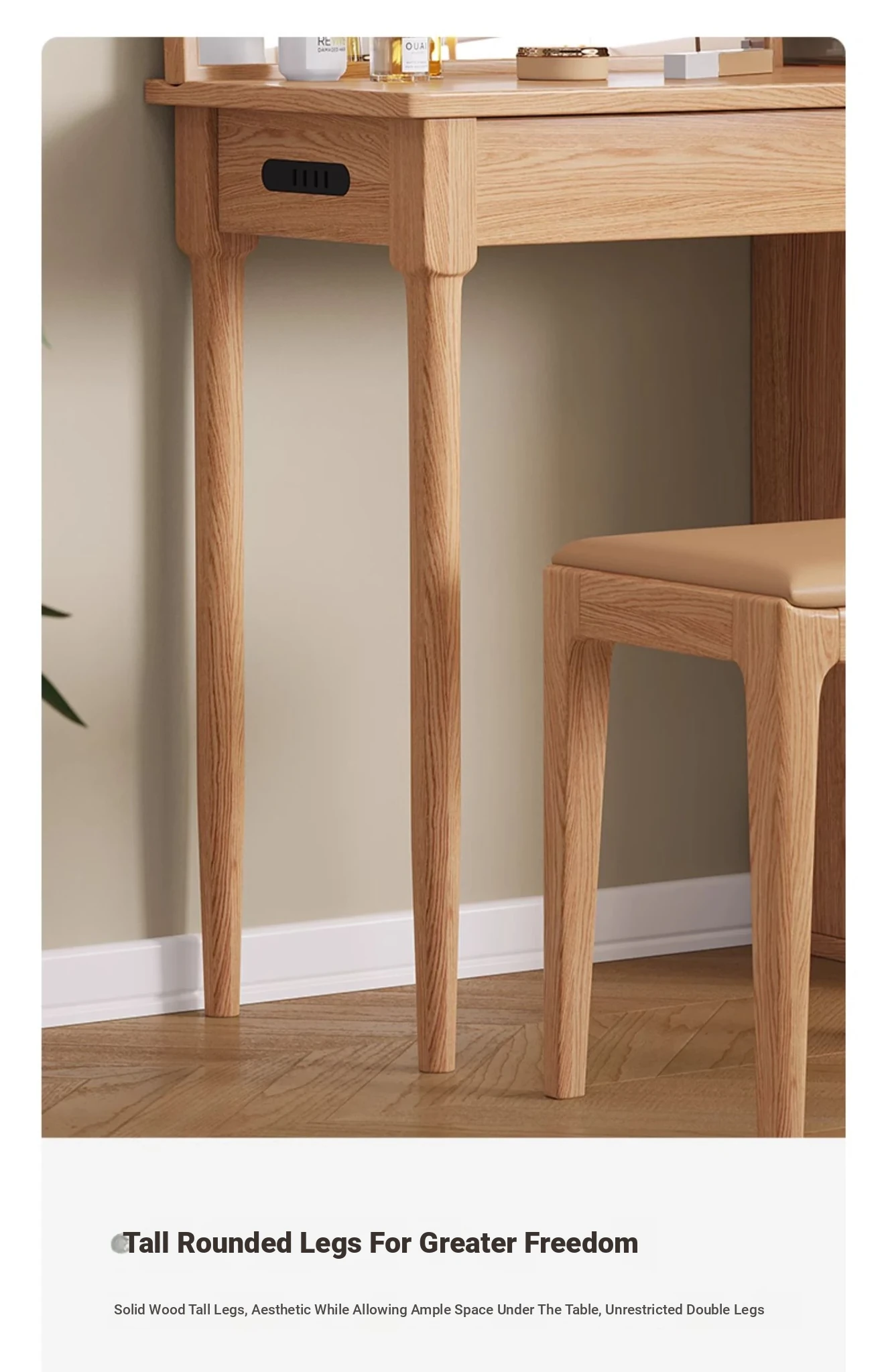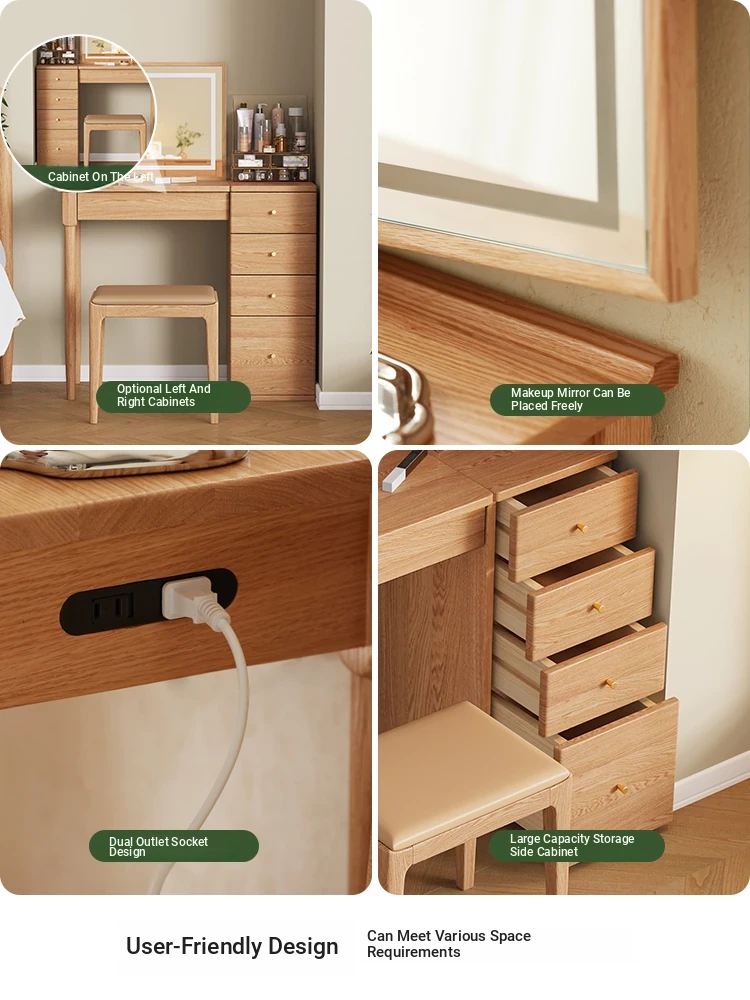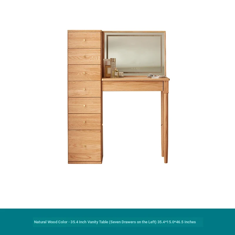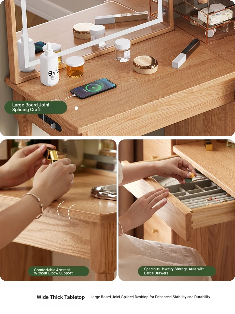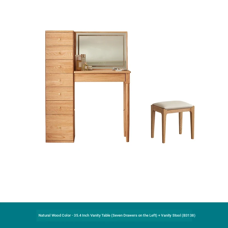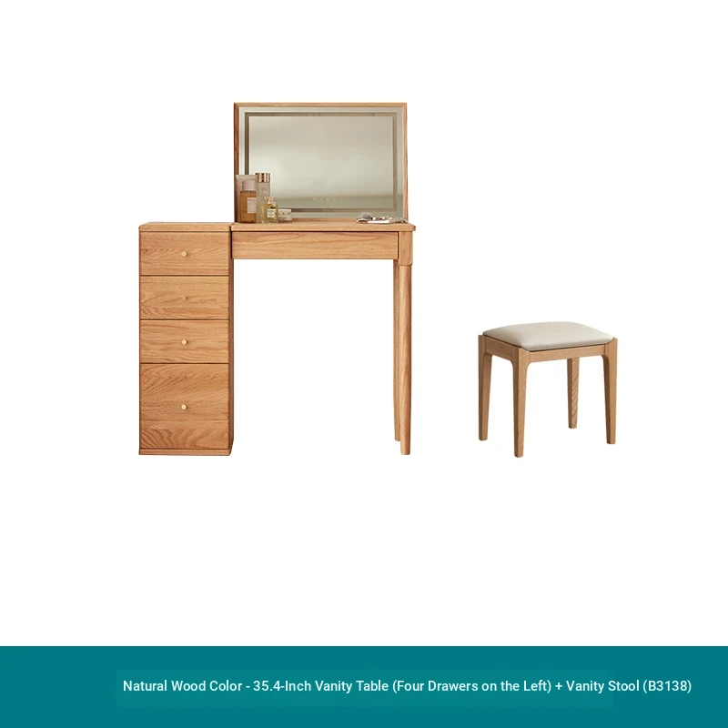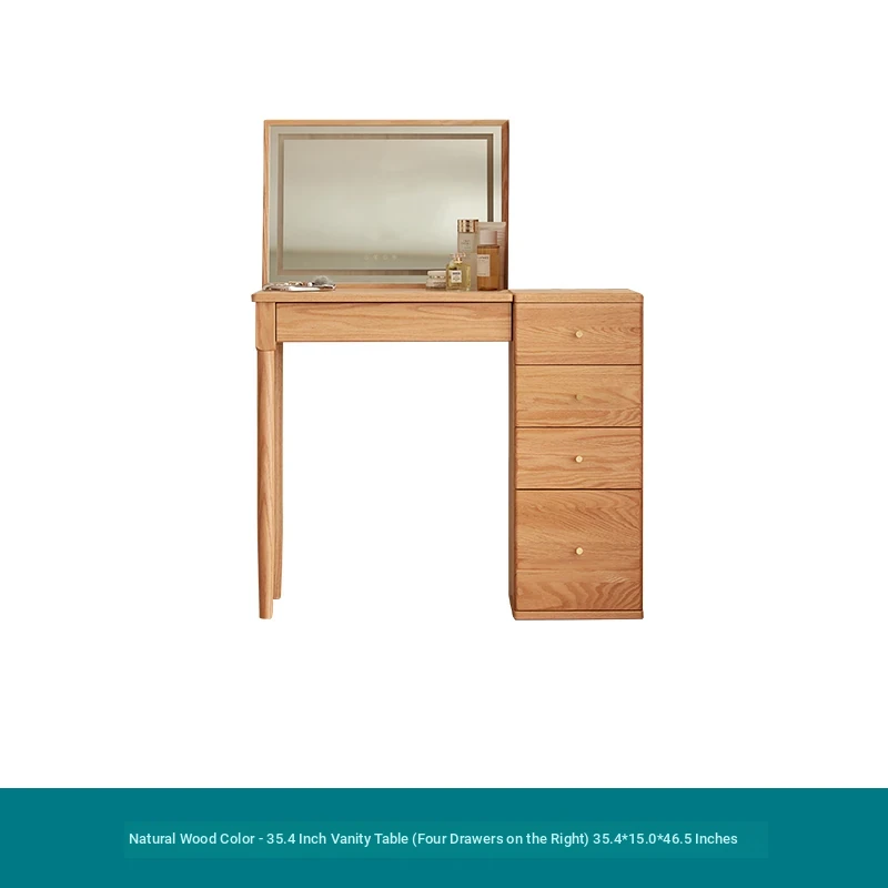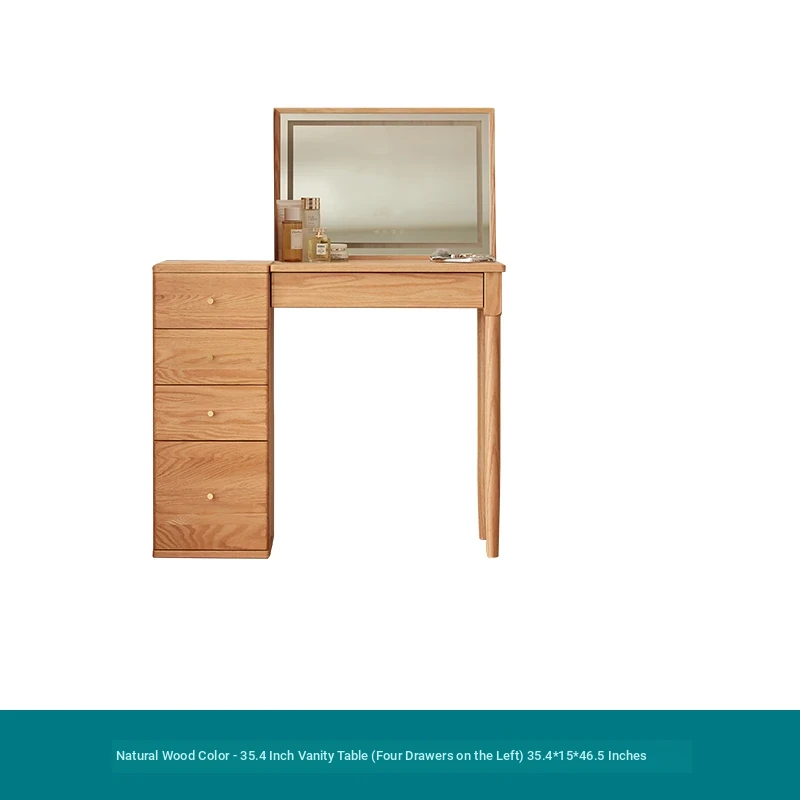 "Original Essence Solid Wood Vanity Table – Modern Minimalist Design for Small Bedrooms, Featuring an All-in-One Makeup Desk with Mirror and Drawer Storage"