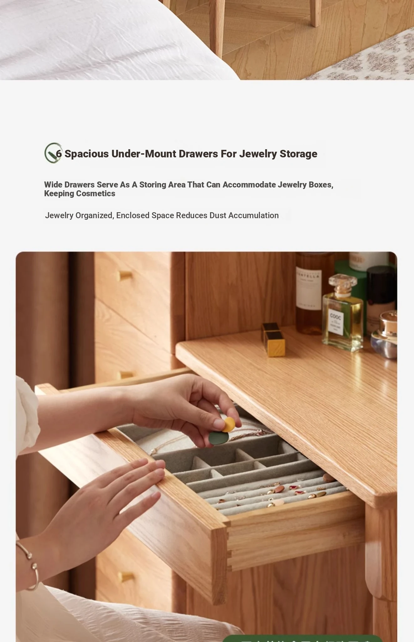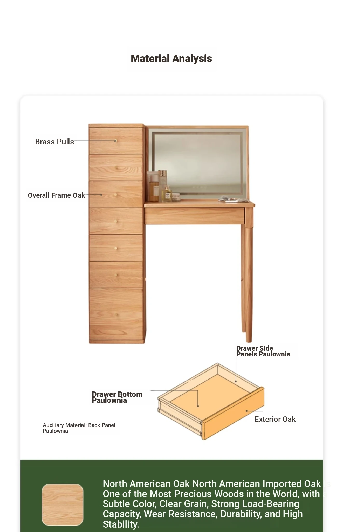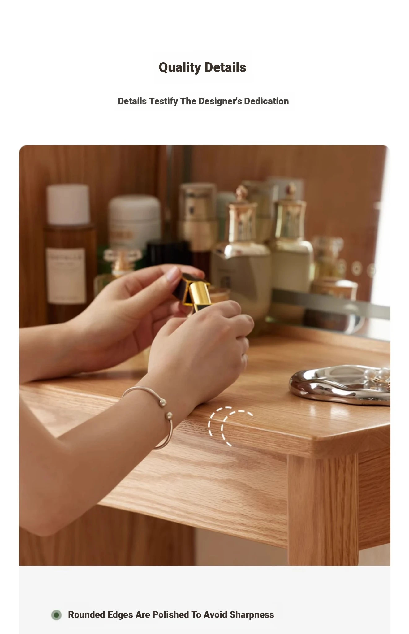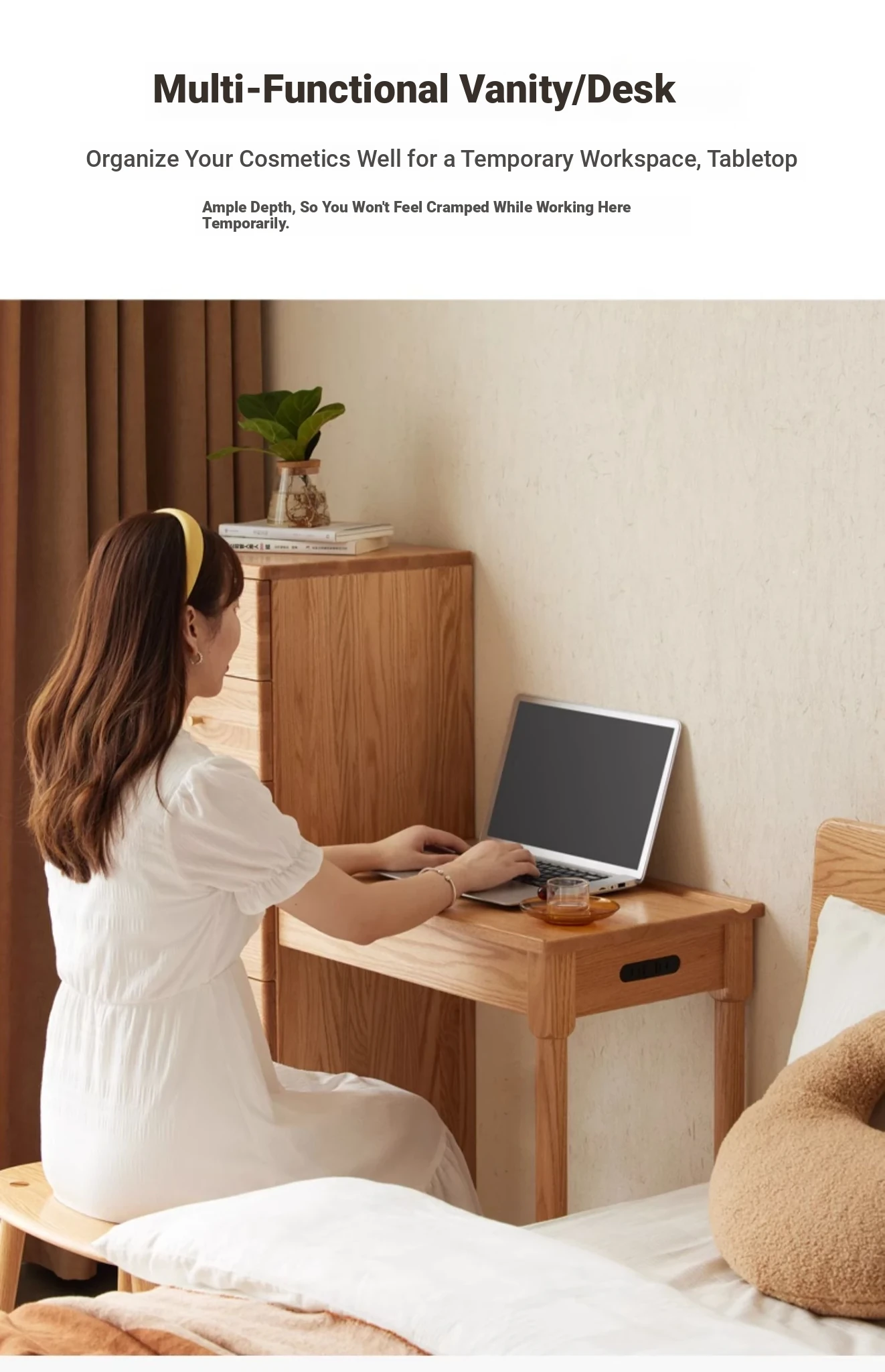 "Original Essence Solid Wood Vanity Table – Modern Minimalist Design for Small Bedrooms, Featuring an All-in-One Makeup Desk with Mirror and Drawer Storage"
