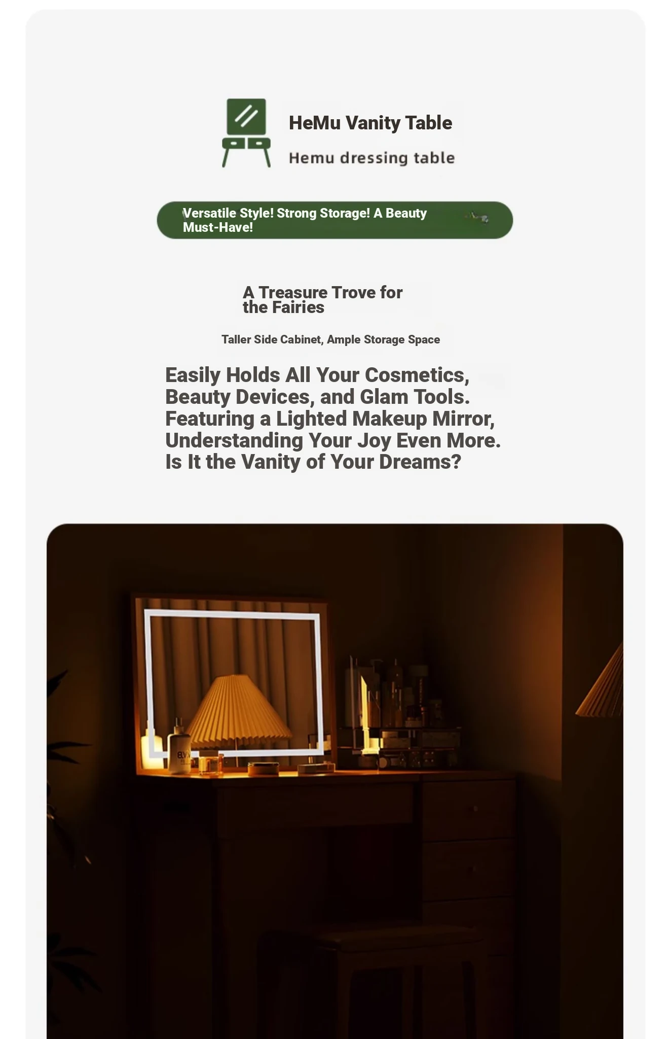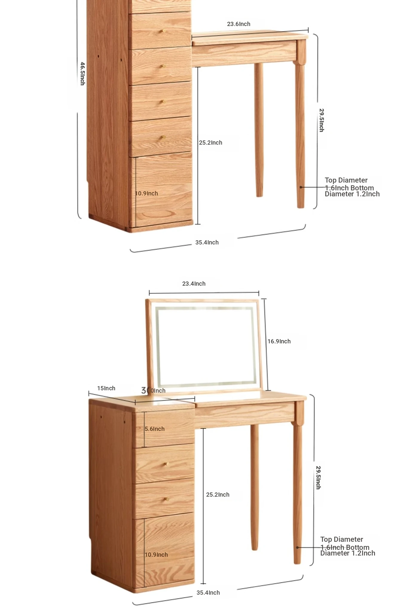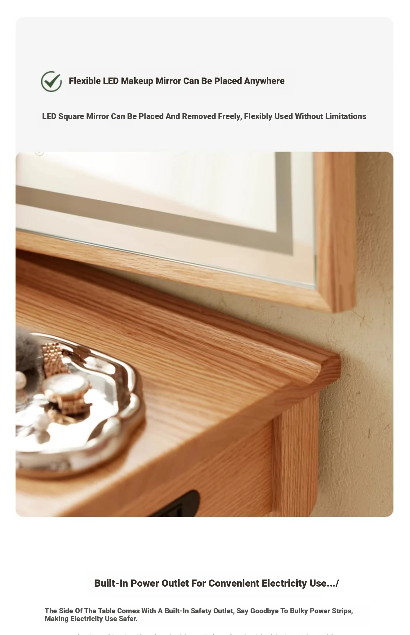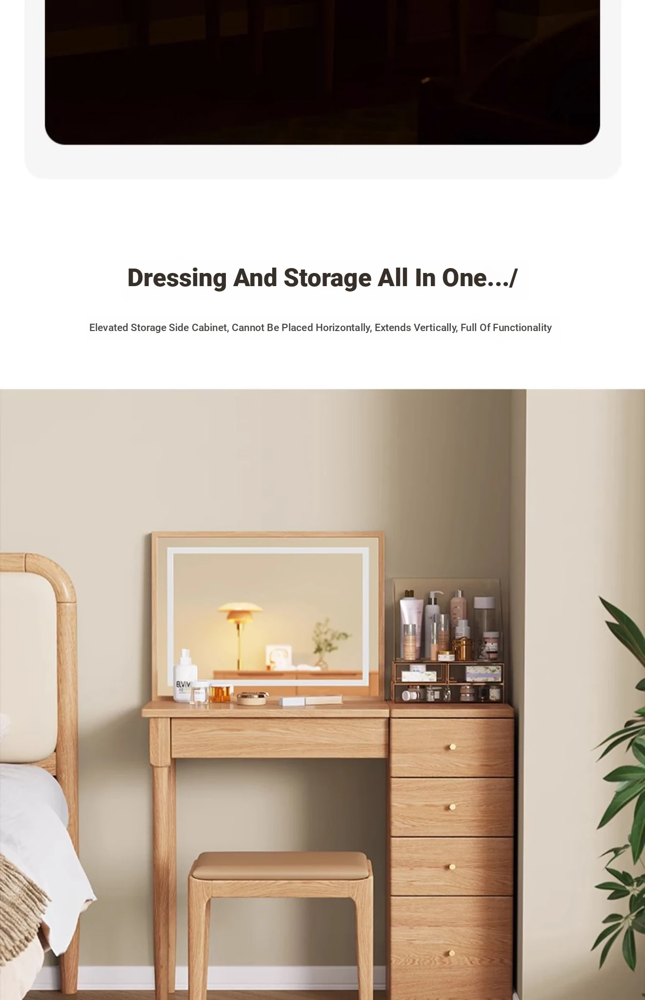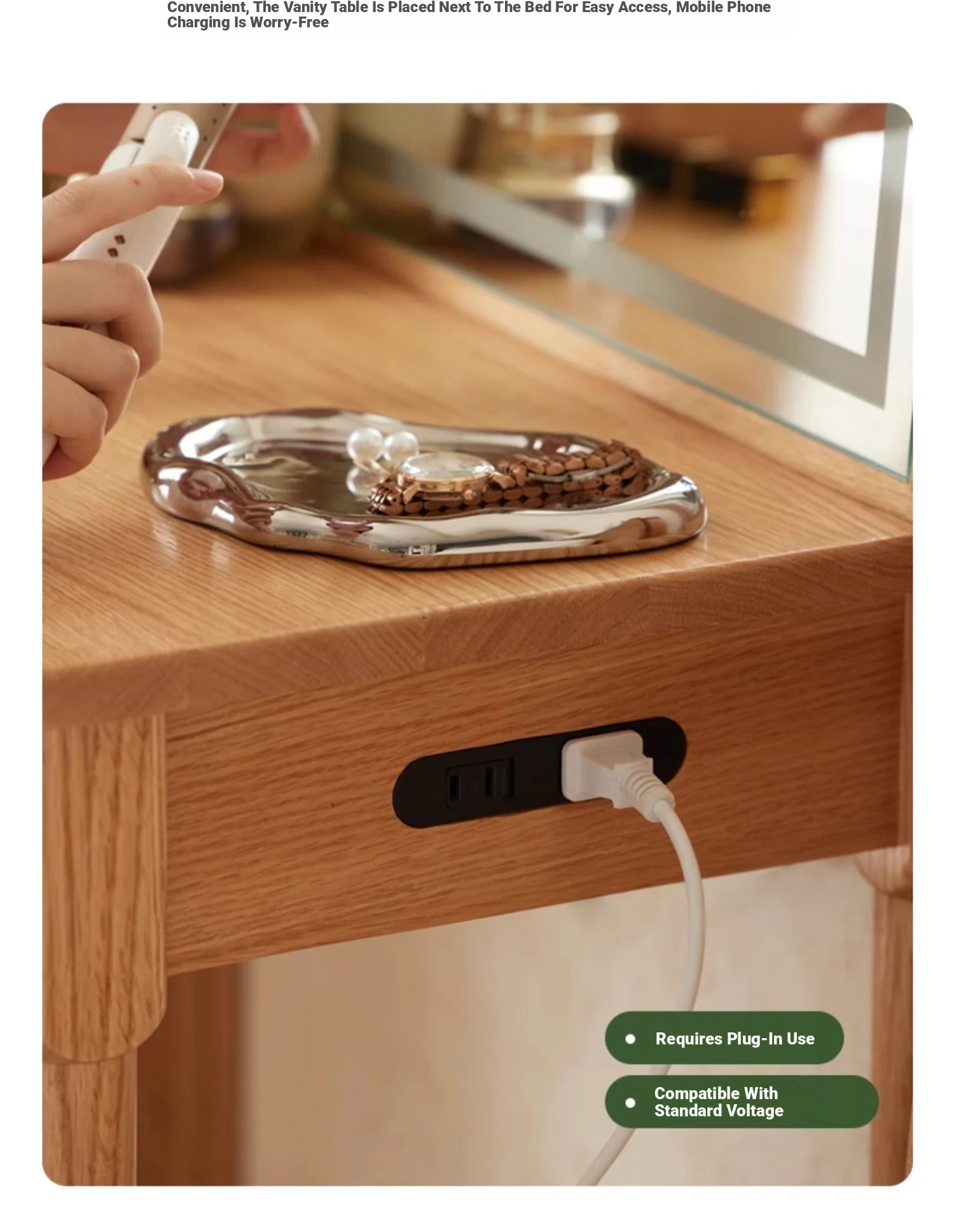 "Original Essence Solid Wood Vanity Table – Modern Minimalist Design for Small Bedrooms, Featuring an All-in-One Makeup Desk with Mirror and Drawer Storage"