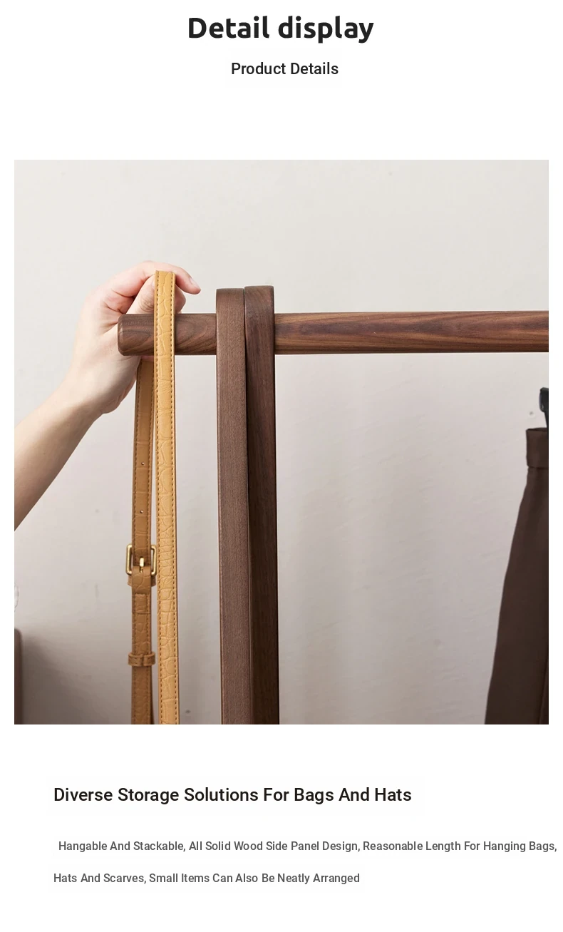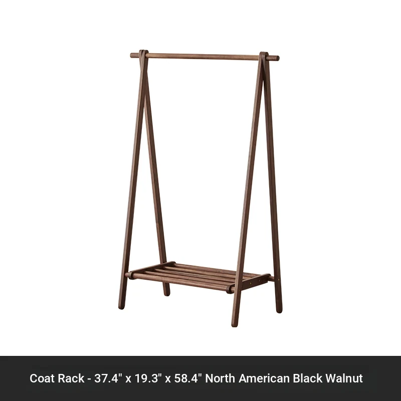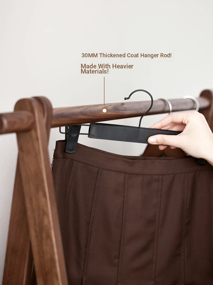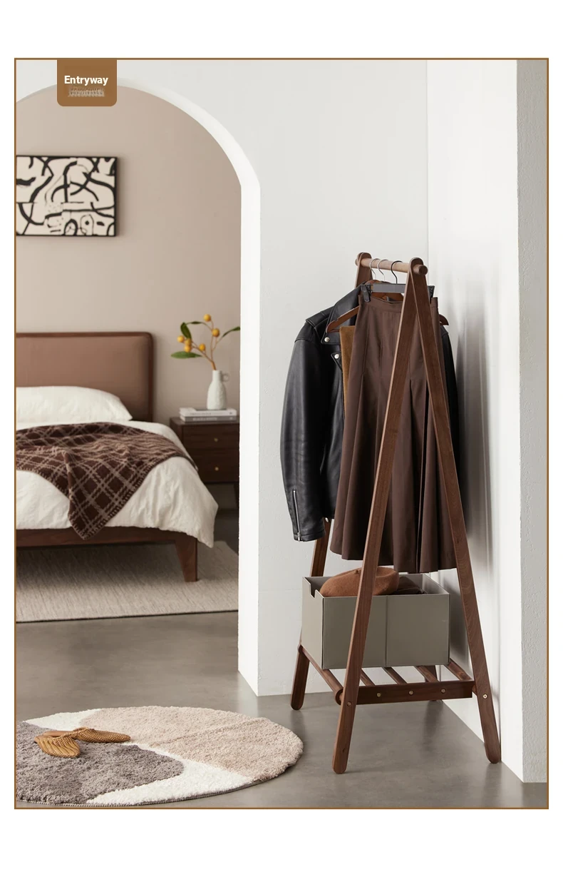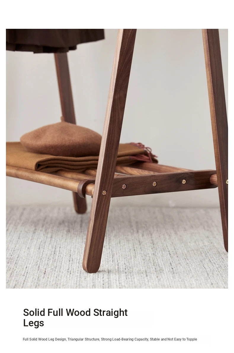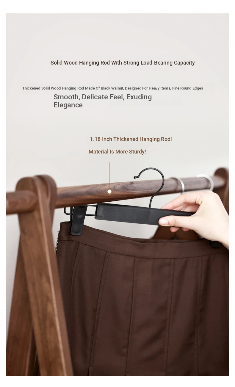 "Premium Solid Wood Coat Rack - Modern Minimalist Bedroom Storage Solution in Luxurious Black Walnut Finish - Stylish Free-Standing Hanger for Elegant Living Spaces"