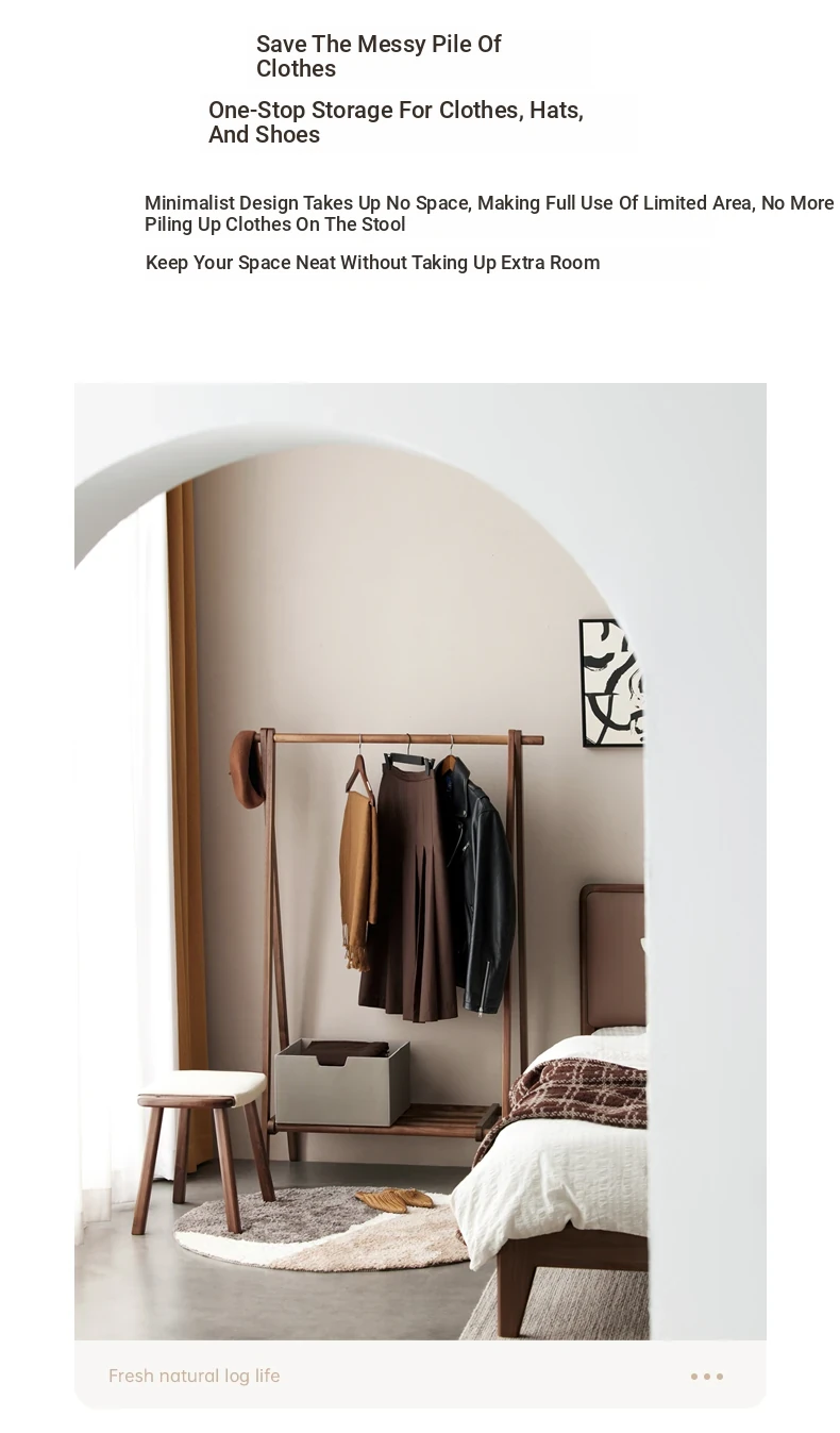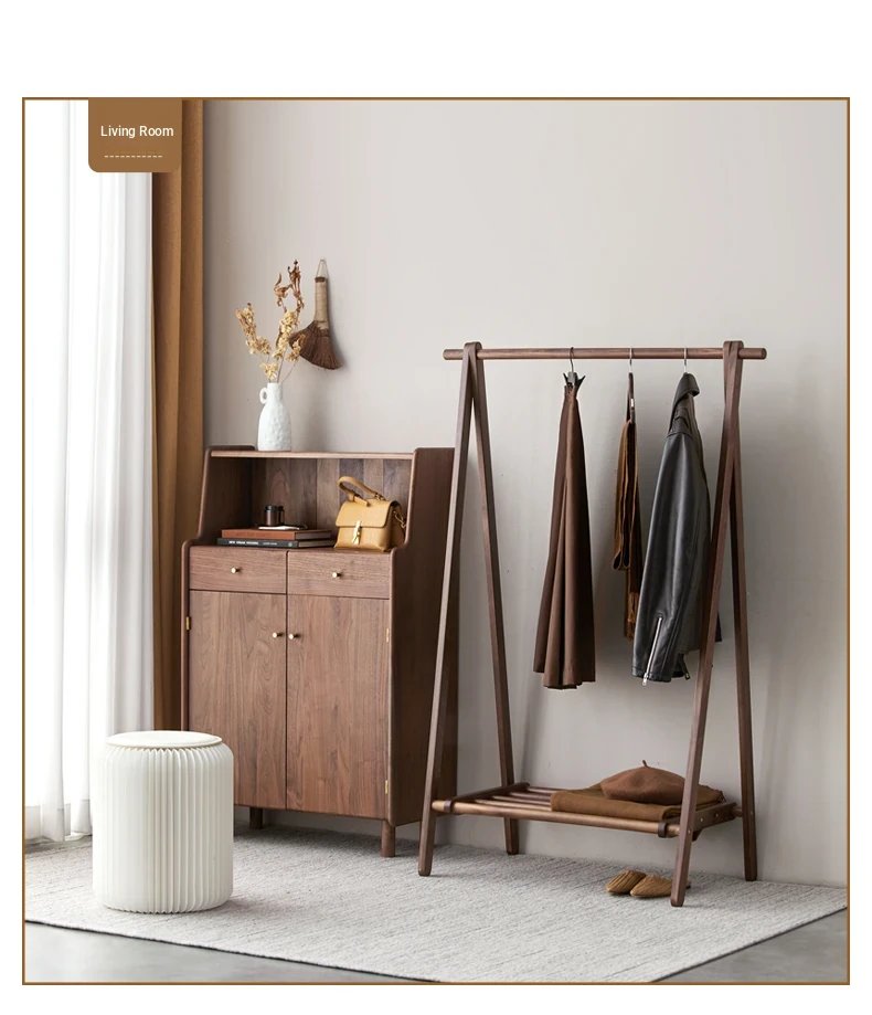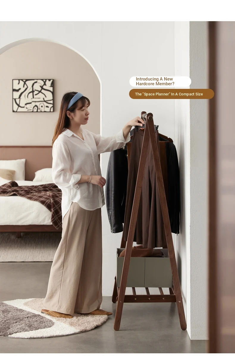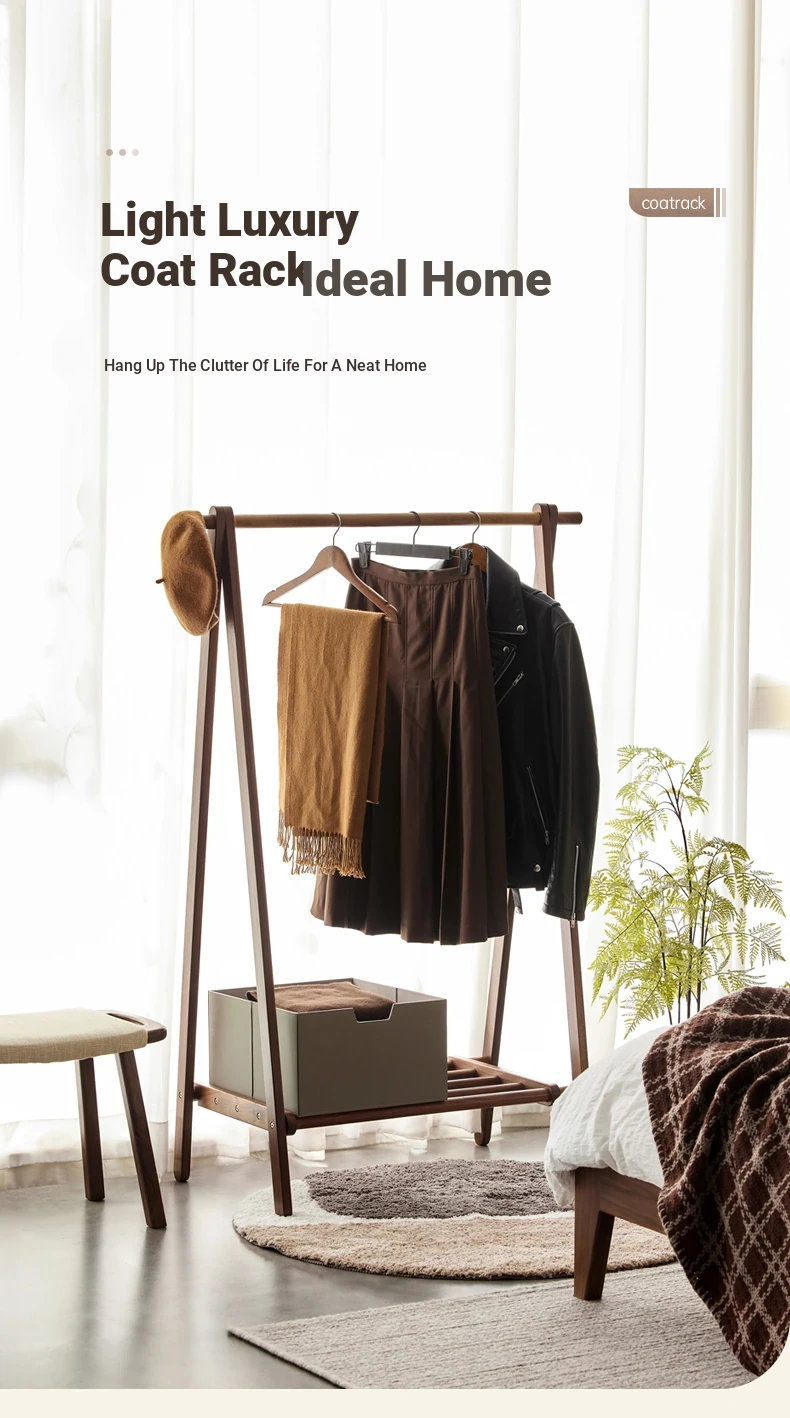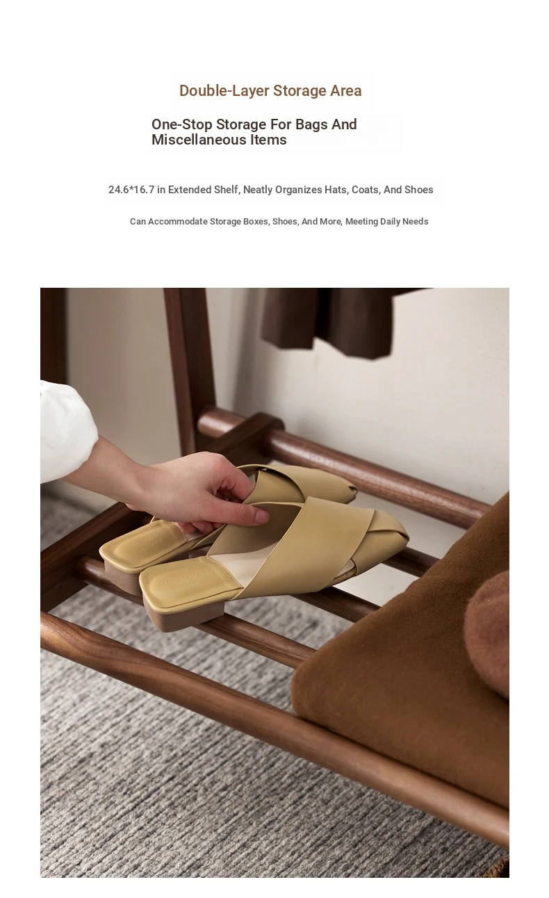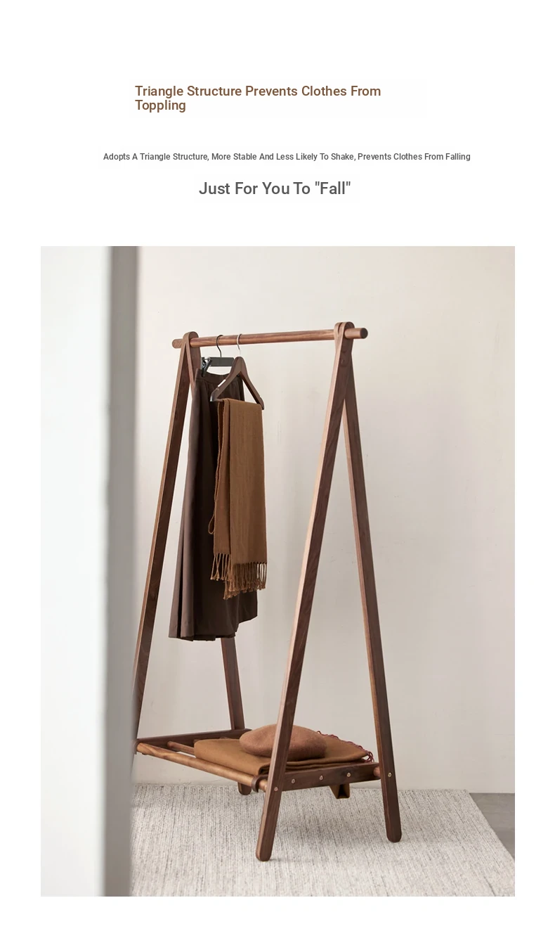 "Premium Solid Wood Coat Rack - Modern Minimalist Bedroom Storage Solution in Luxurious Black Walnut Finish - Stylish Free-Standing Hanger for Elegant Living Spaces"