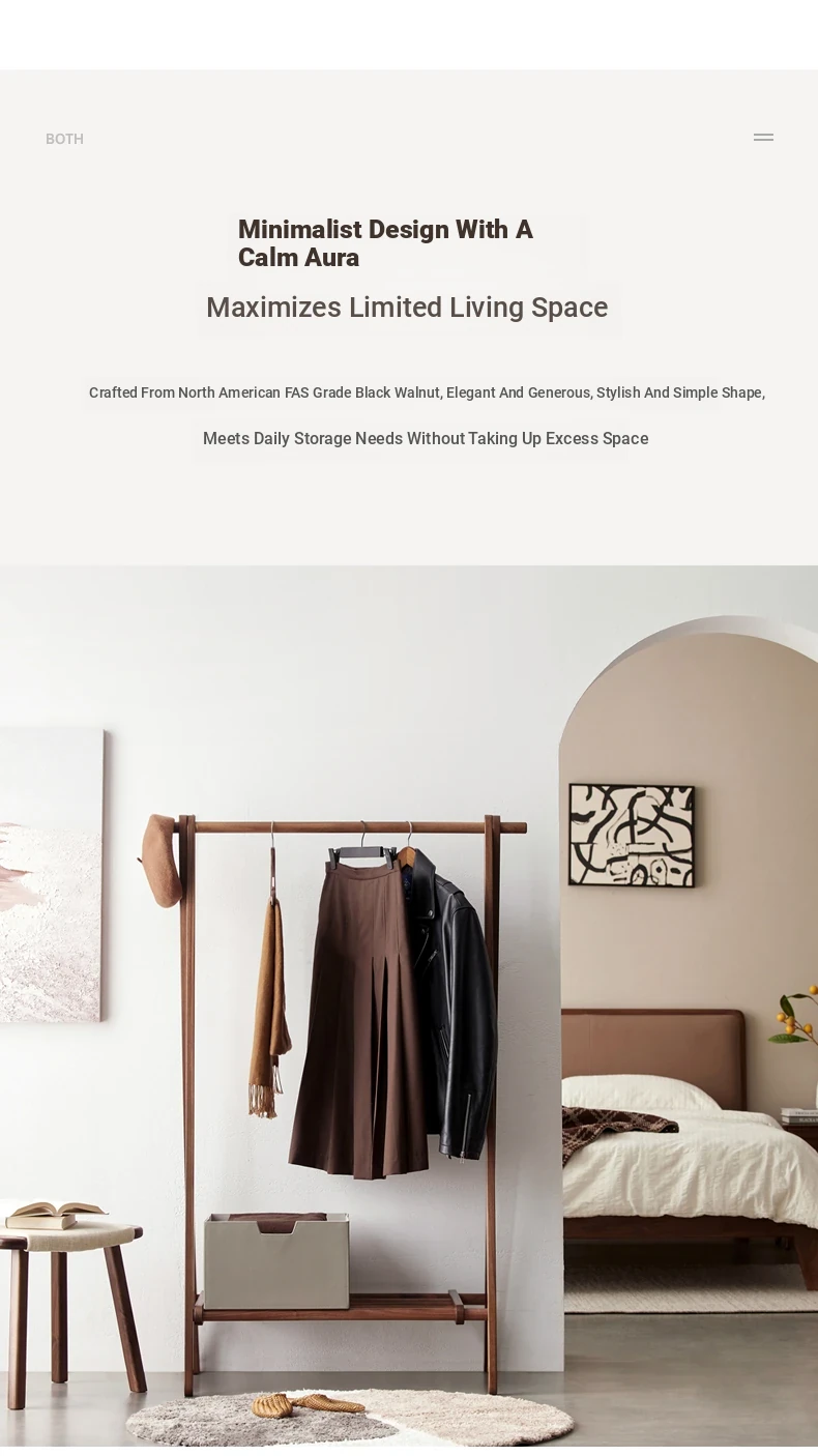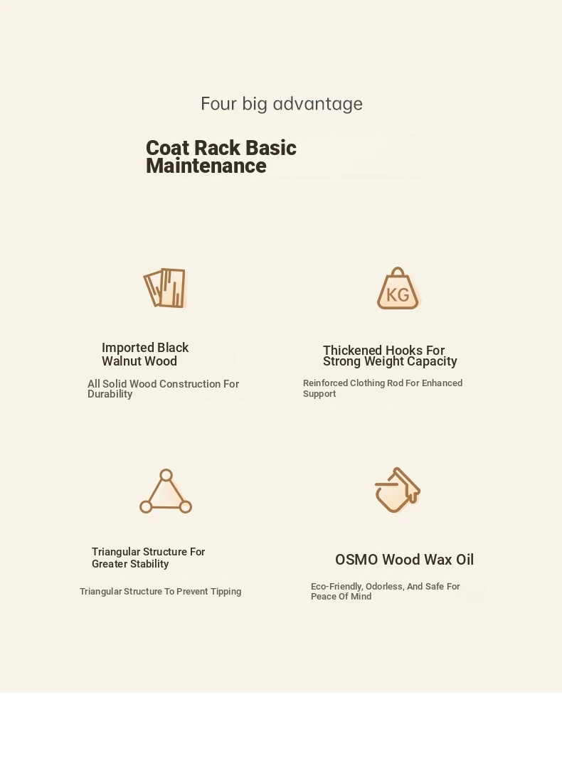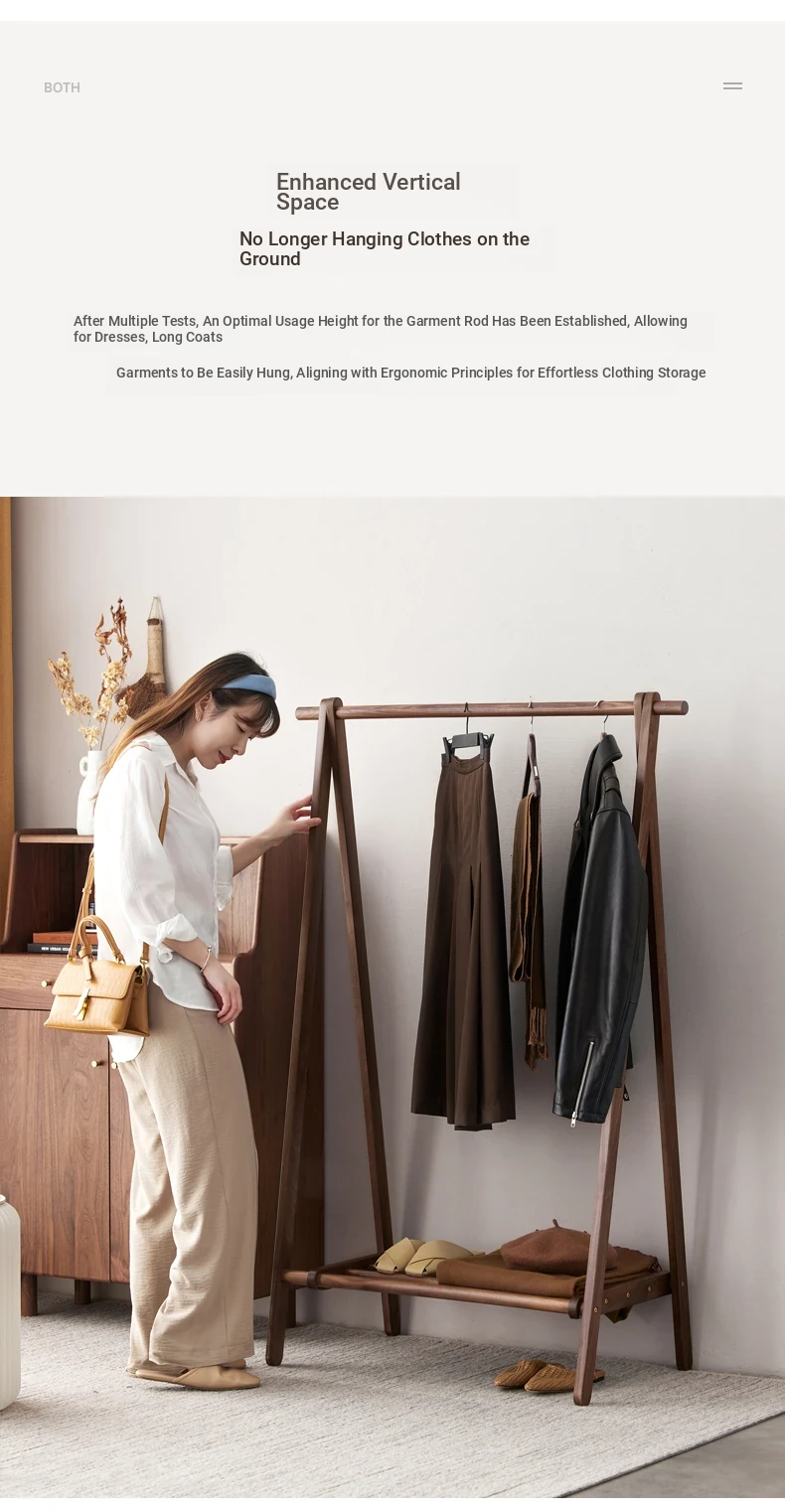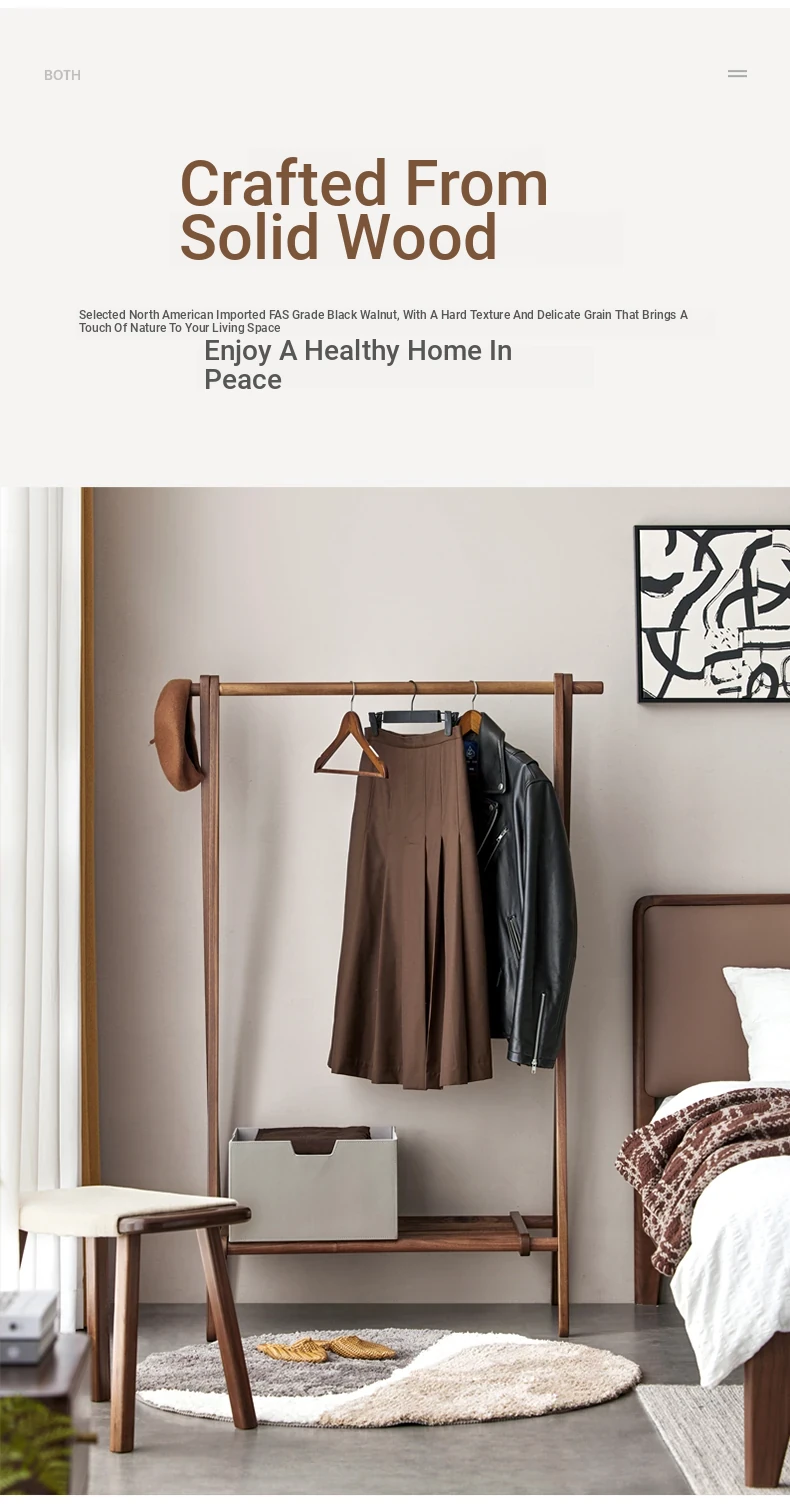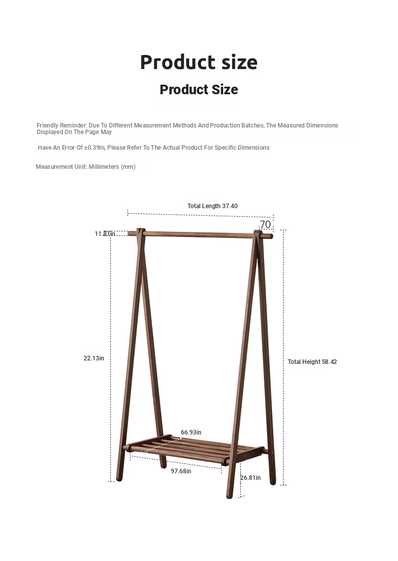 "Premium Solid Wood Coat Rack - Modern Minimalist Bedroom Storage Solution in Luxurious Black Walnut Finish - Stylish Free-Standing Hanger for Elegant Living Spaces"