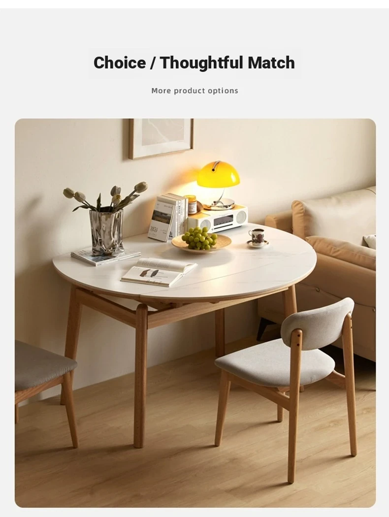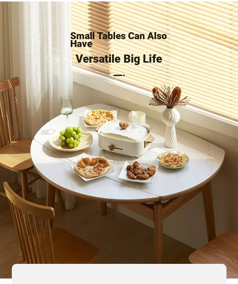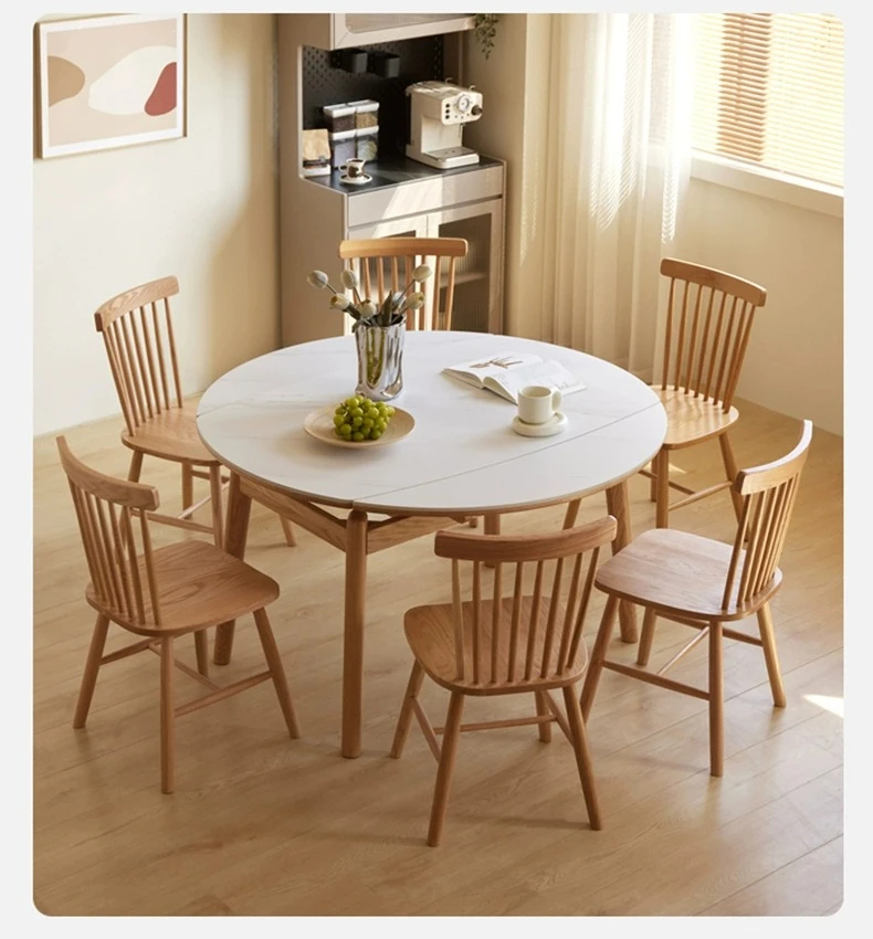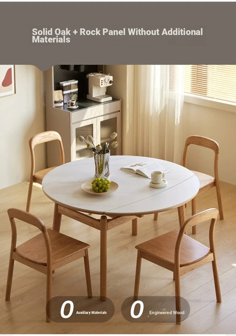 "Premium Solid Wood Folding Dining Table for Small Spaces - Extendable Round Stone-Packed Dining Set with Chairs"