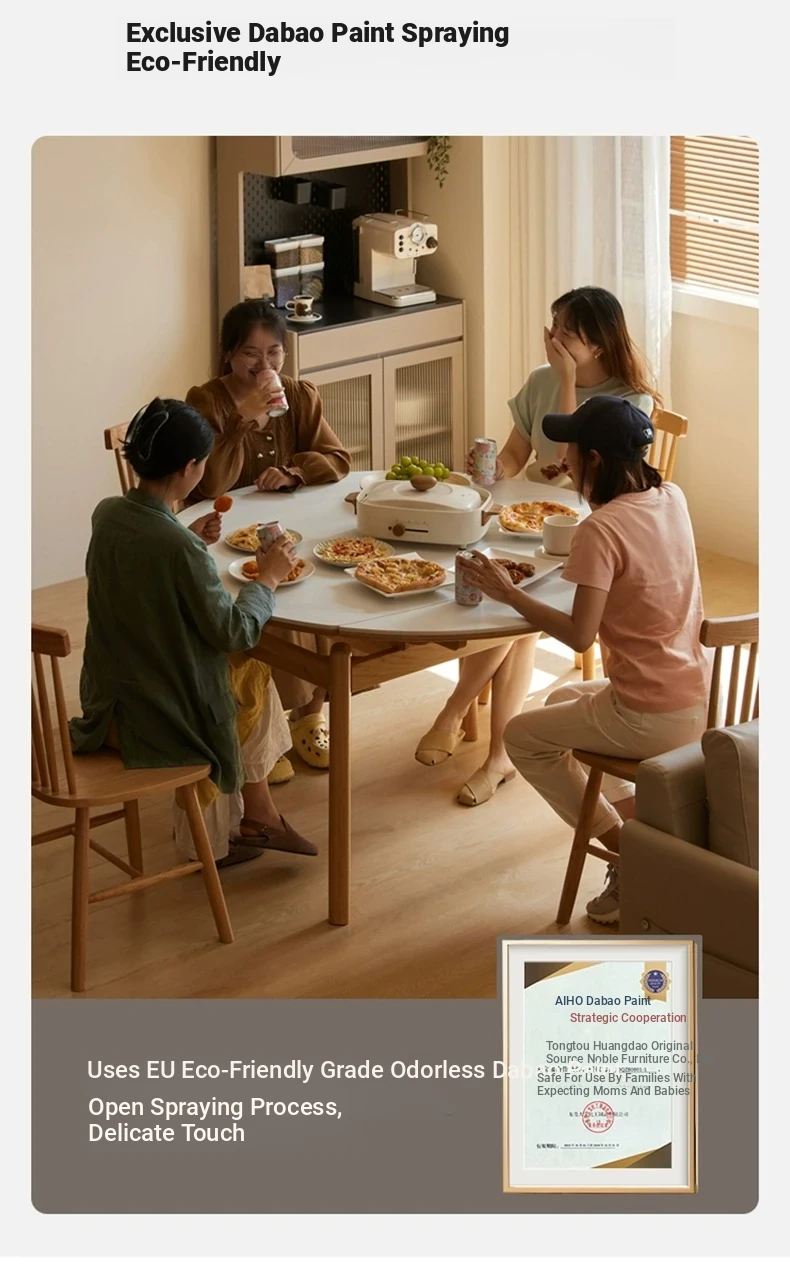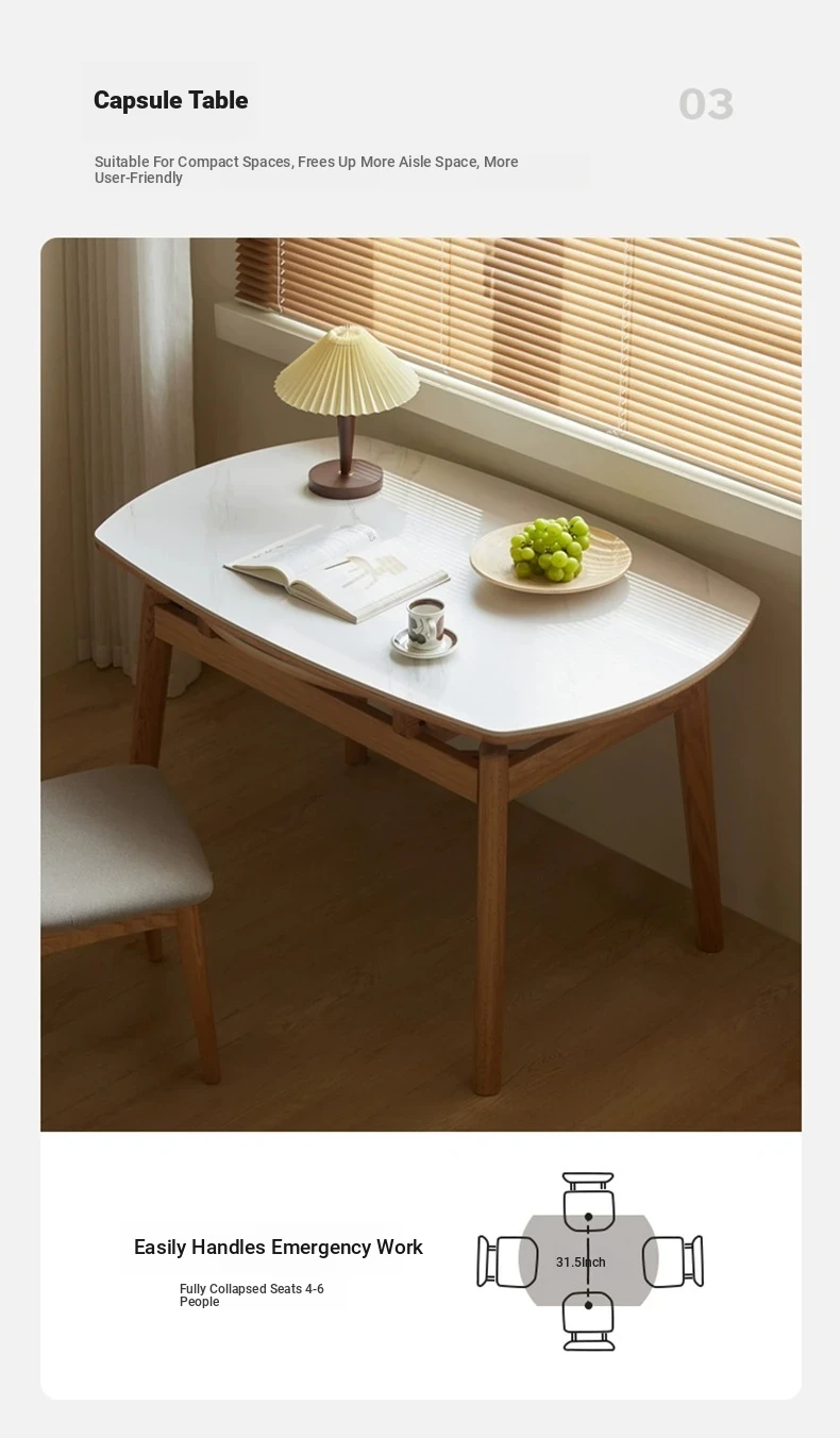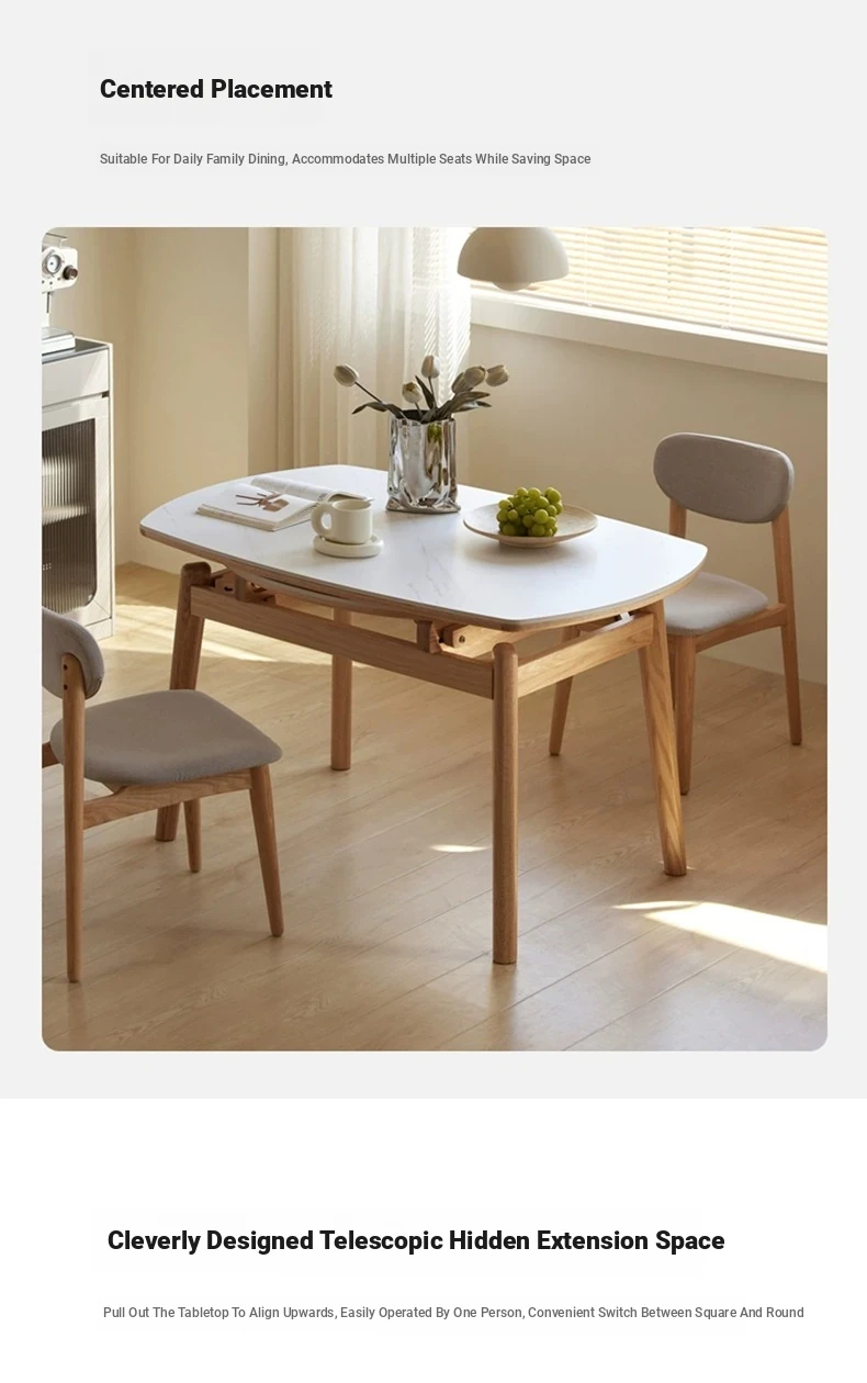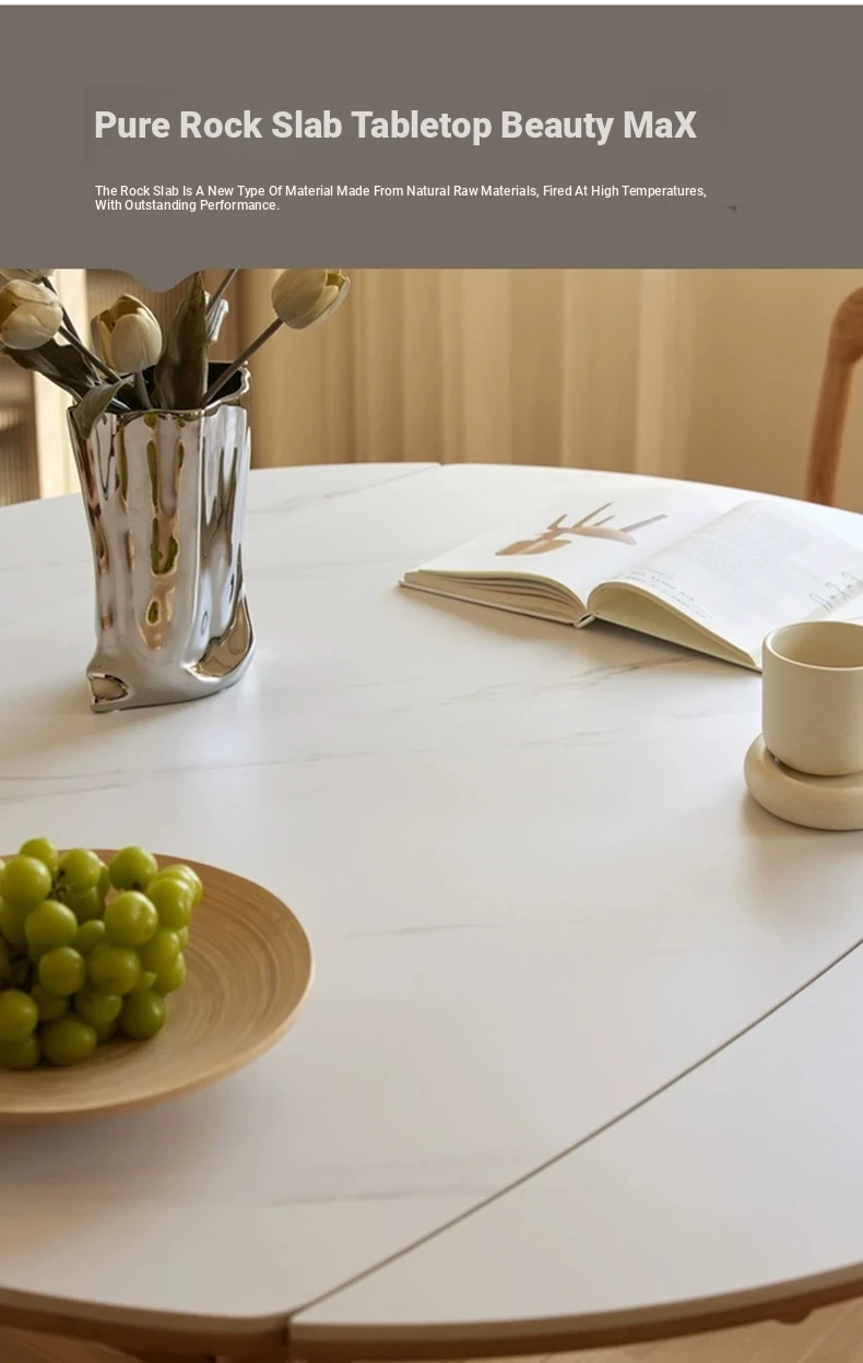 "Premium Solid Wood Folding Dining Table for Small Spaces - Extendable Round Stone-Packed Dining Set with Chairs"