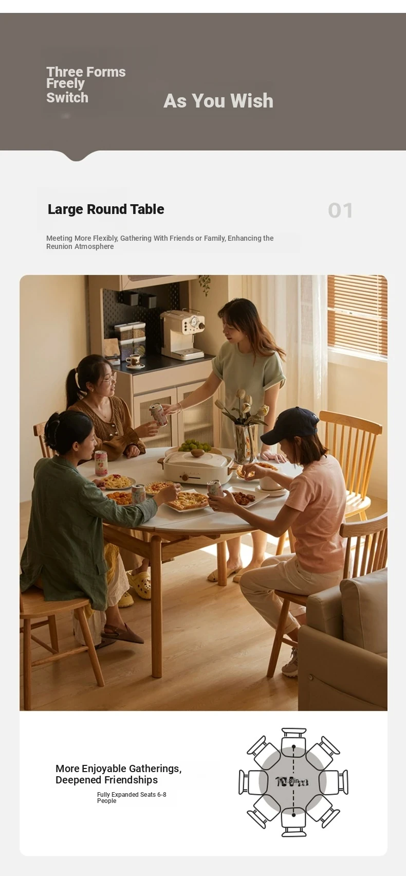 [Oak-Log Color] 51.18 in Foldable Table (1300*1300*760)