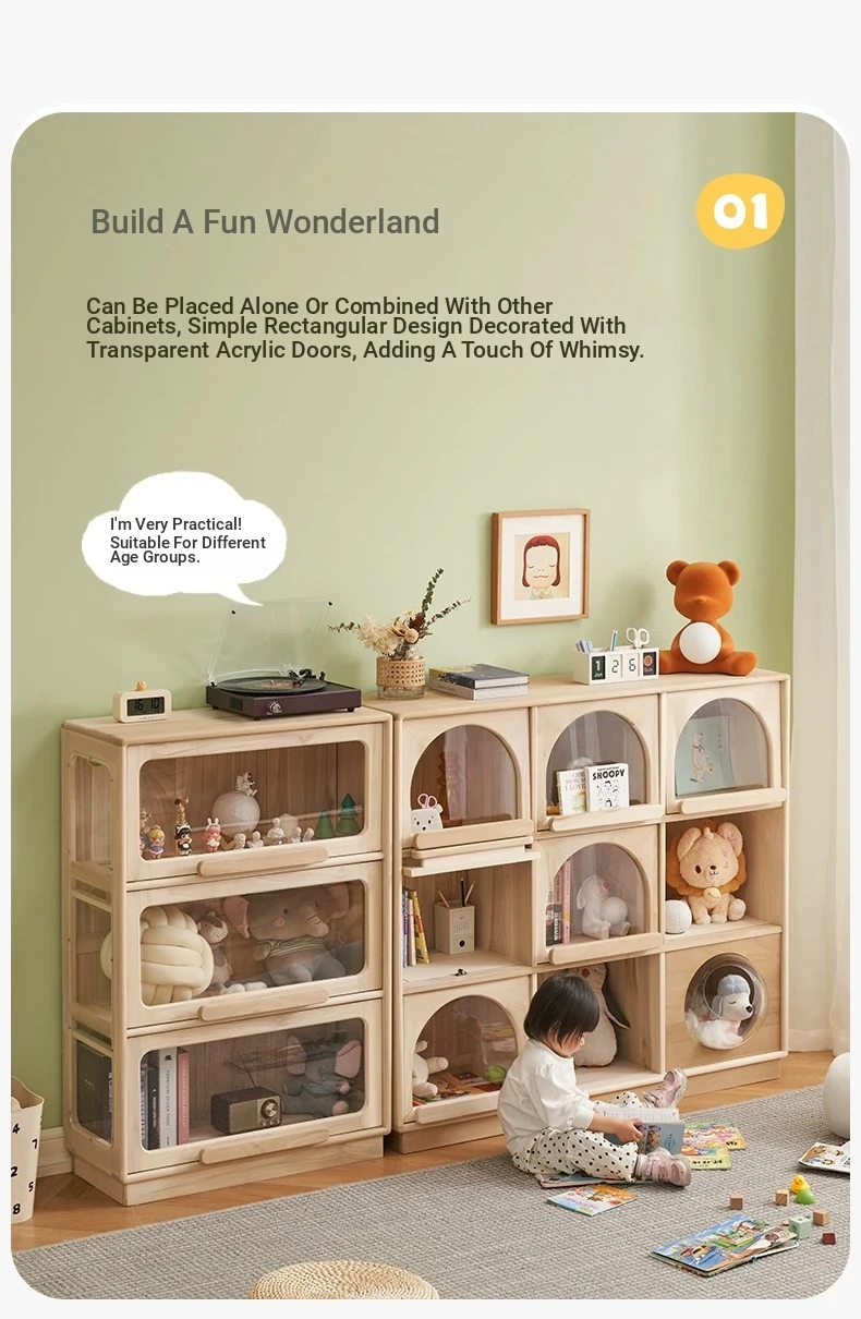 Premium Solid Wood Storage Cabinet for Kids – Stylish Toy Display and Organizer for Teens, Featuring a Clear Showcase for Action Figures and Collectibles – Perfect Addition to Any Home!