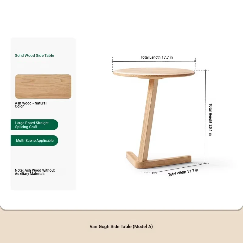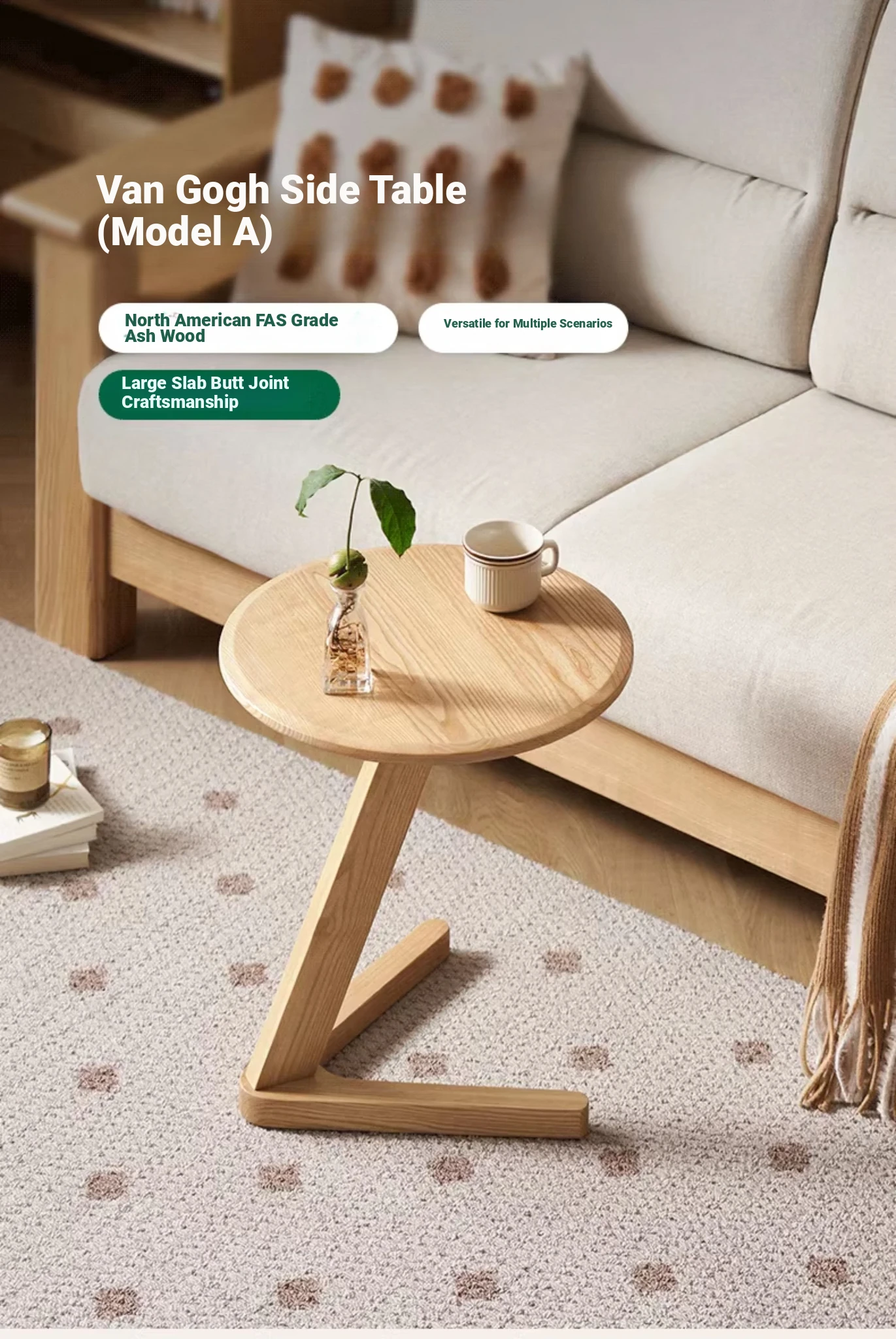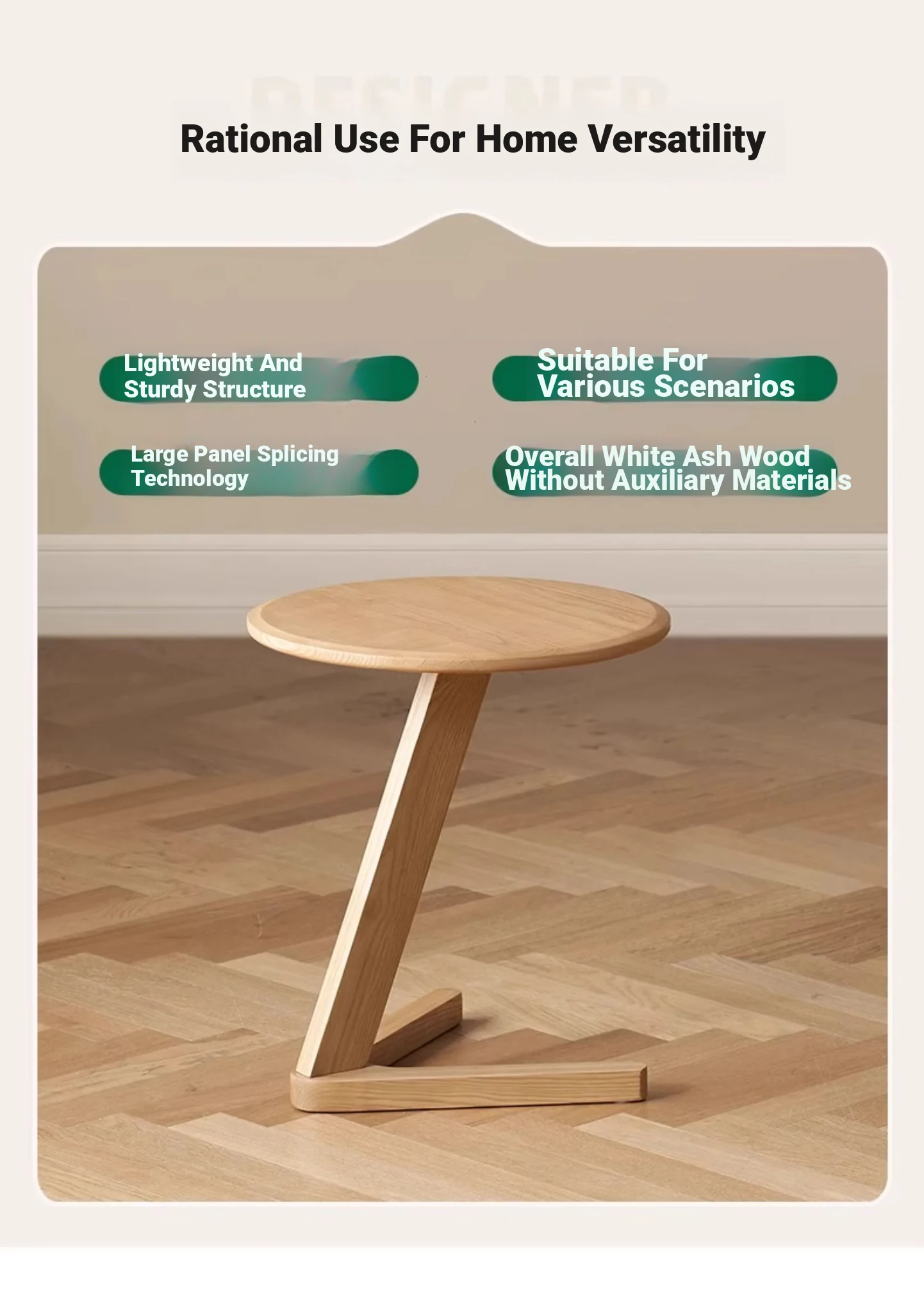"Pure Solid Wood Side Table - Minimalist White Ash Reading Nook Table, Perfect for Living Room or Bedroom as a Cozy Sofa or Nightstand"