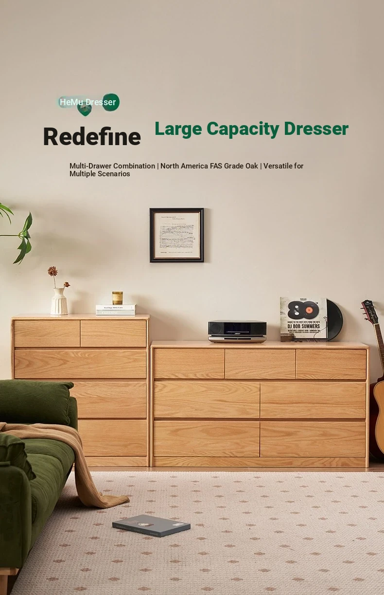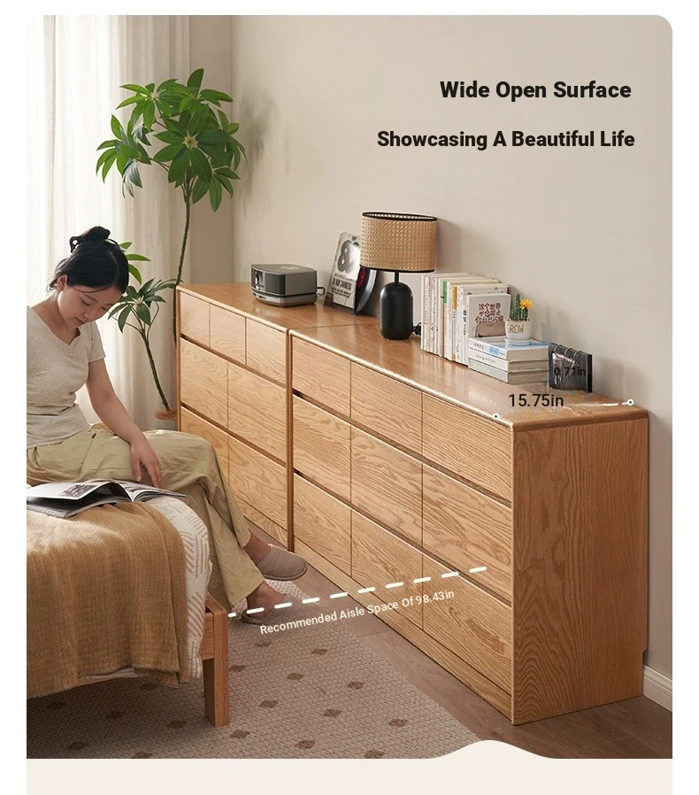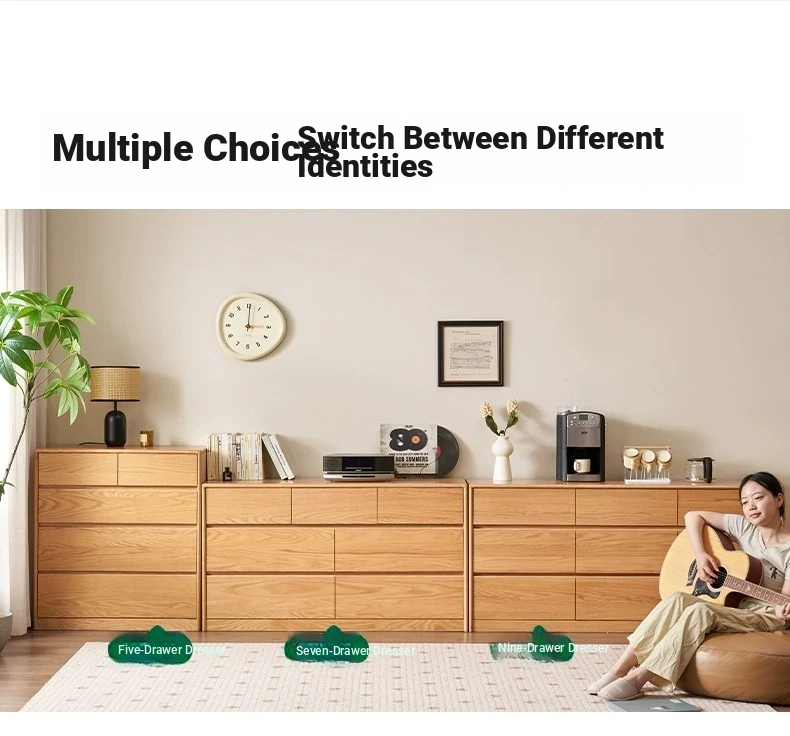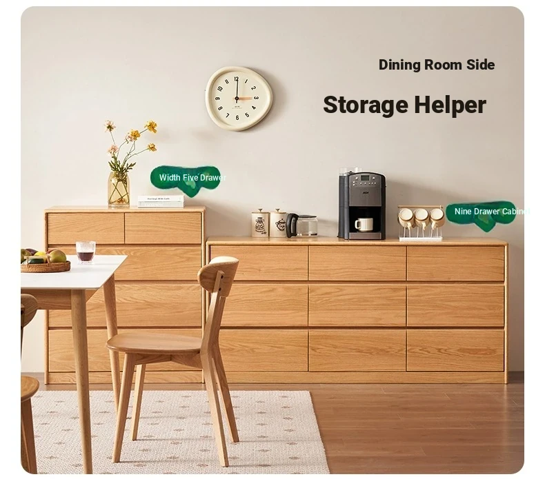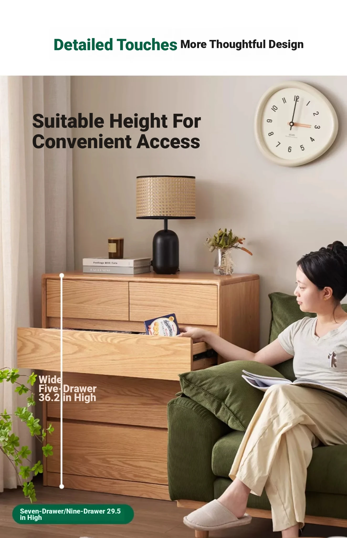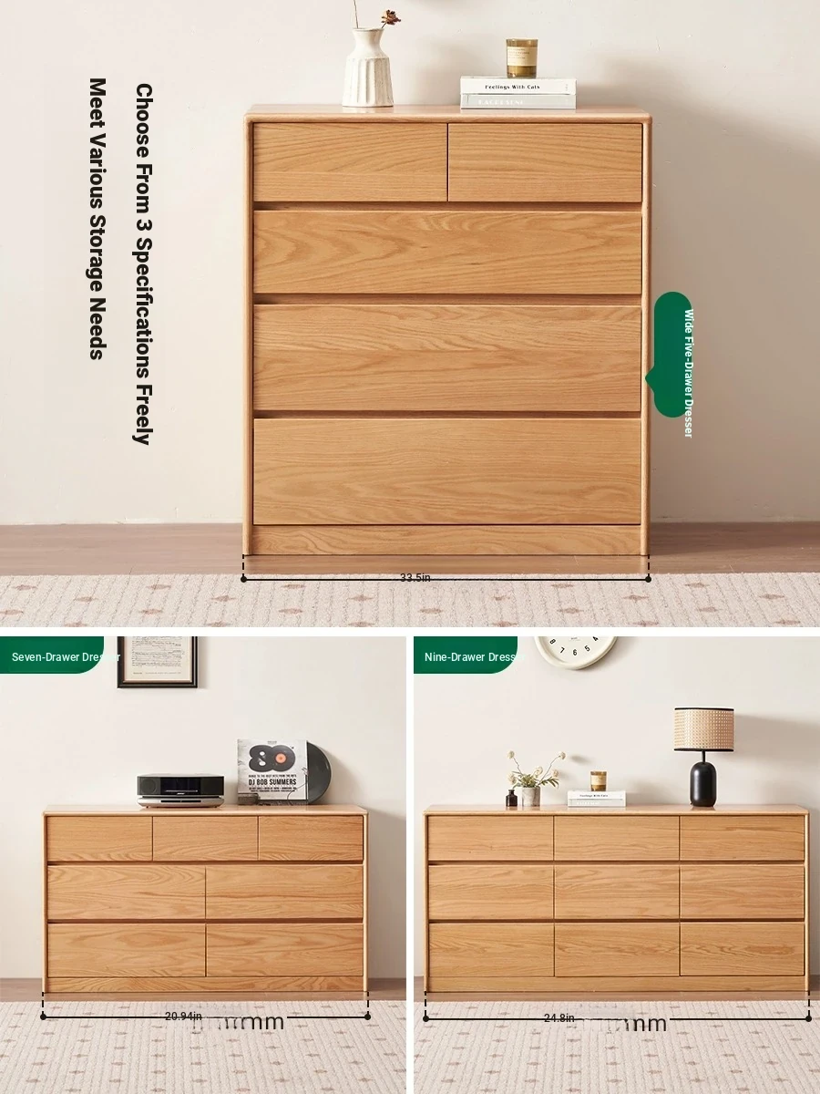 Rustic Solid Wood Dresser - 9-Drawer Tall Storage Cabinet with Wall Support, Nordic Oak Storage Solution for Bedroom - Stylish and Spacious Bedside Drawer Organizer for a Clutter-Free Home