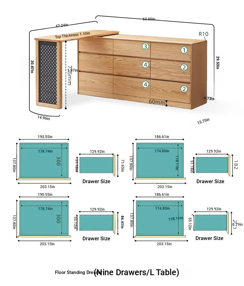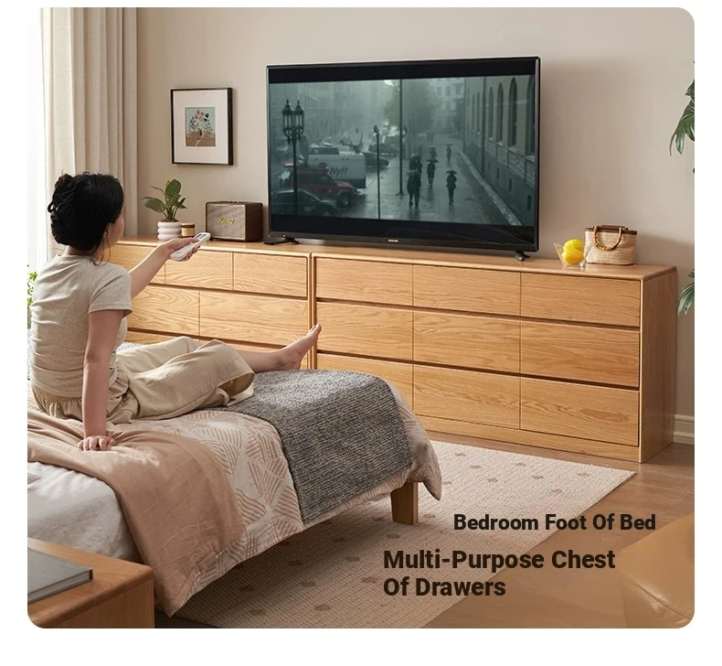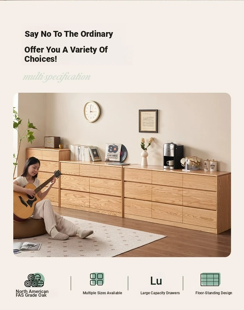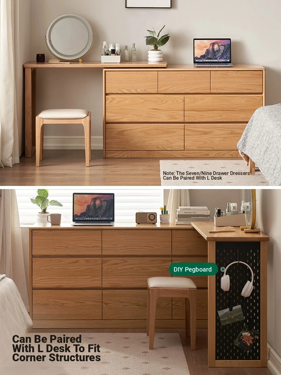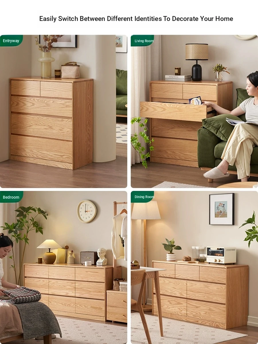 Rustic Solid Wood Dresser - 9-Drawer Tall Storage Cabinet with Wall Support, Nordic Oak Storage Solution for Bedroom - Stylish and Spacious Bedside Drawer Organizer for a Clutter-Free Home