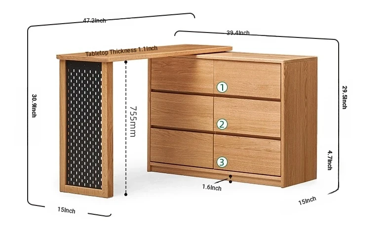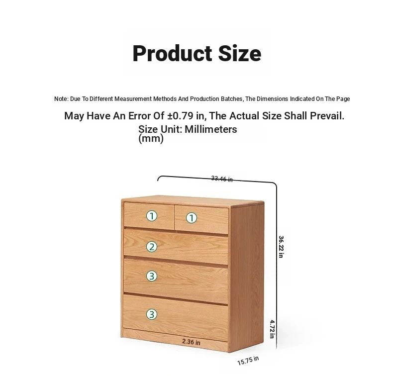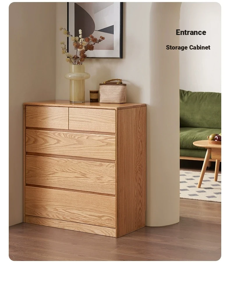 [Oak-log color] Hemu bucket cabinet (landing)-width 5 bucket 33.46in*15.75in*36.22in