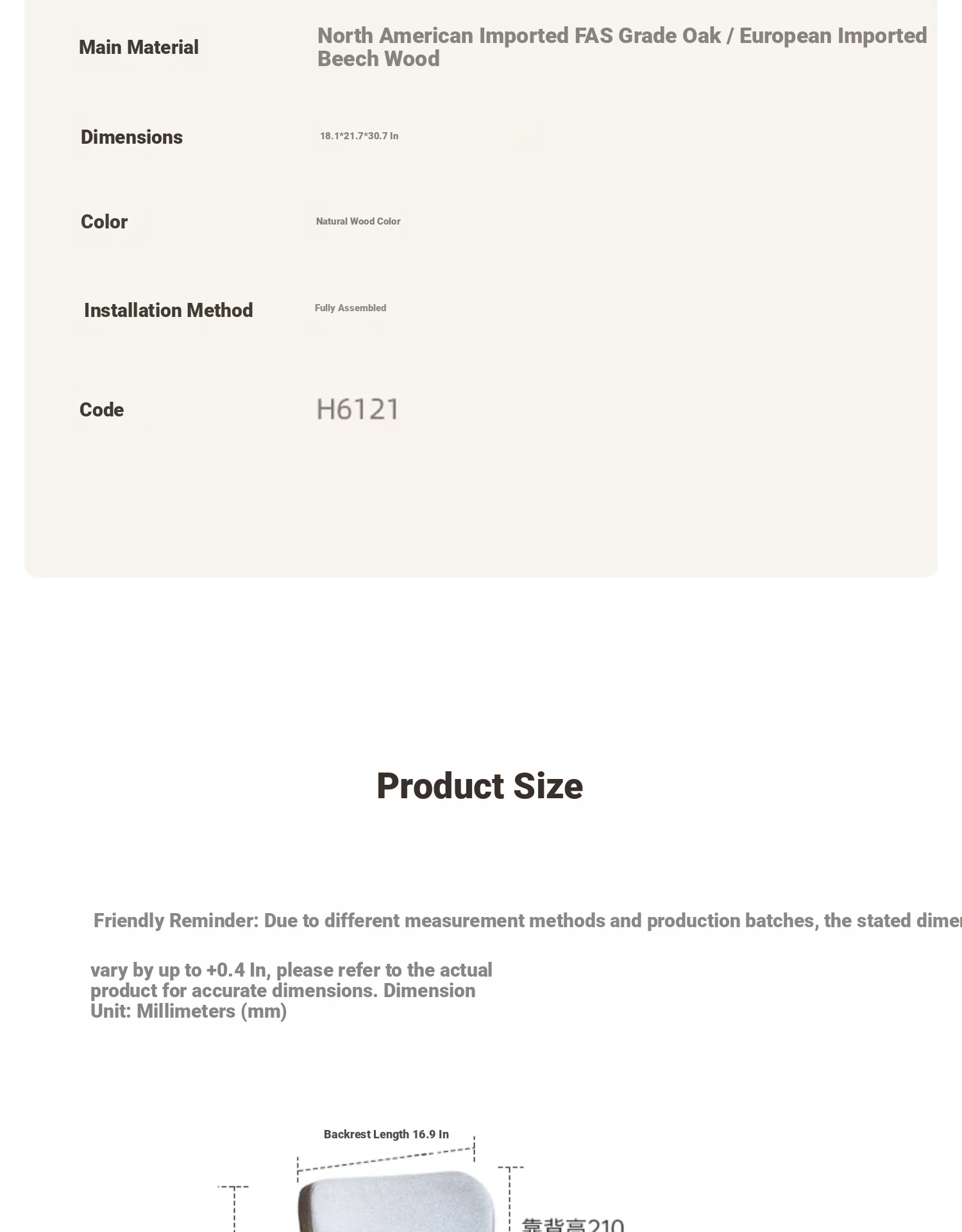Log-colored dining chair-Oak (square leg B) Gray(18.23in*22.24in*30.51in)