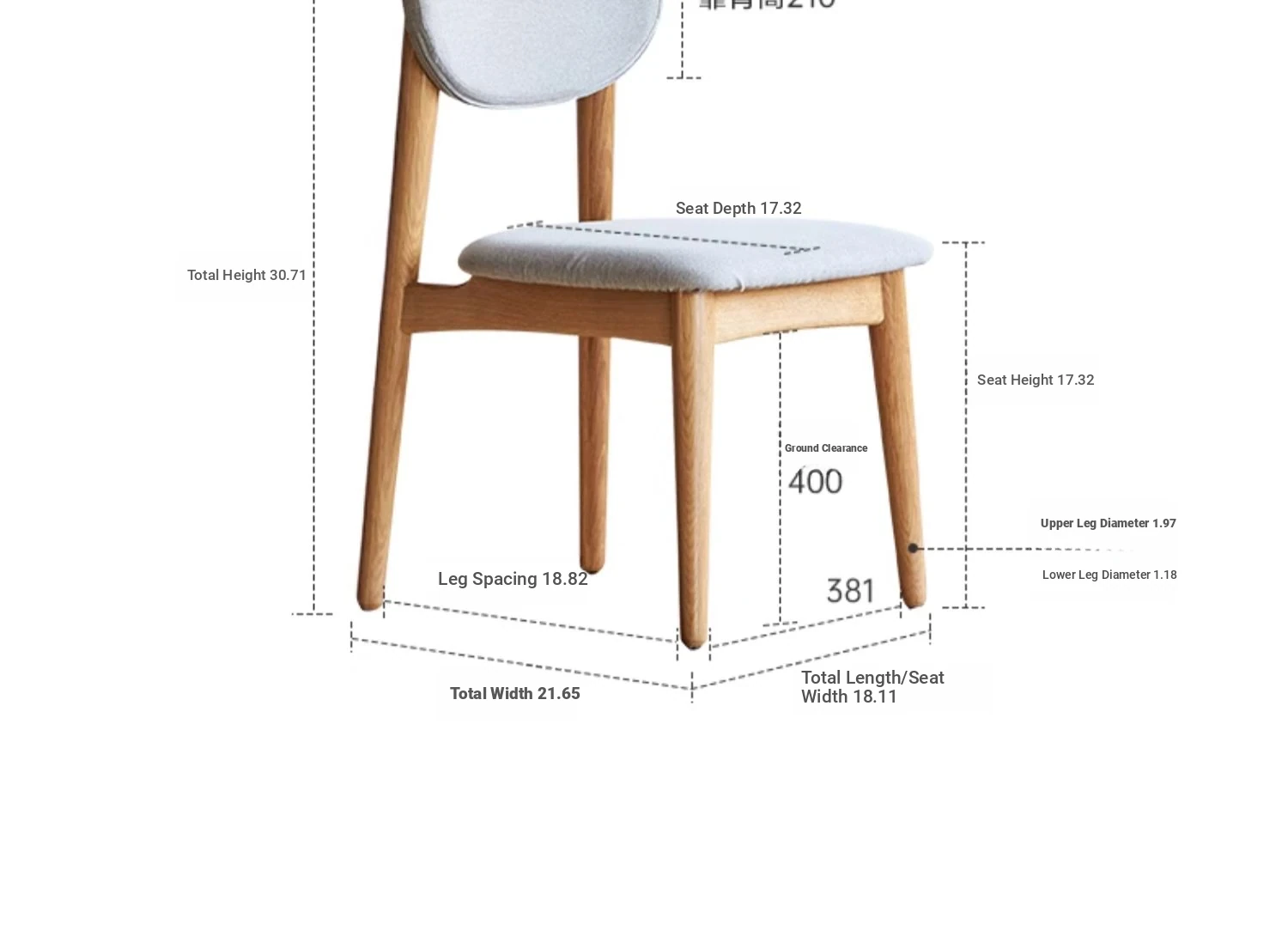Log-colored dining chair-Oak (round leg A) Gray(18.11in*21.65in*30.71in)