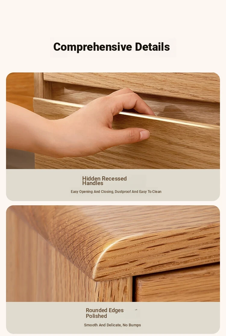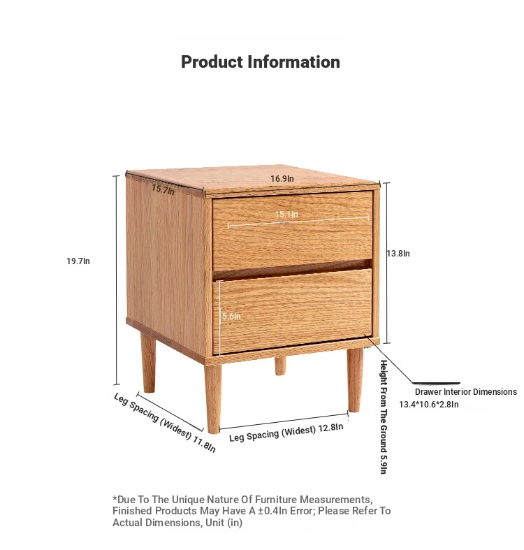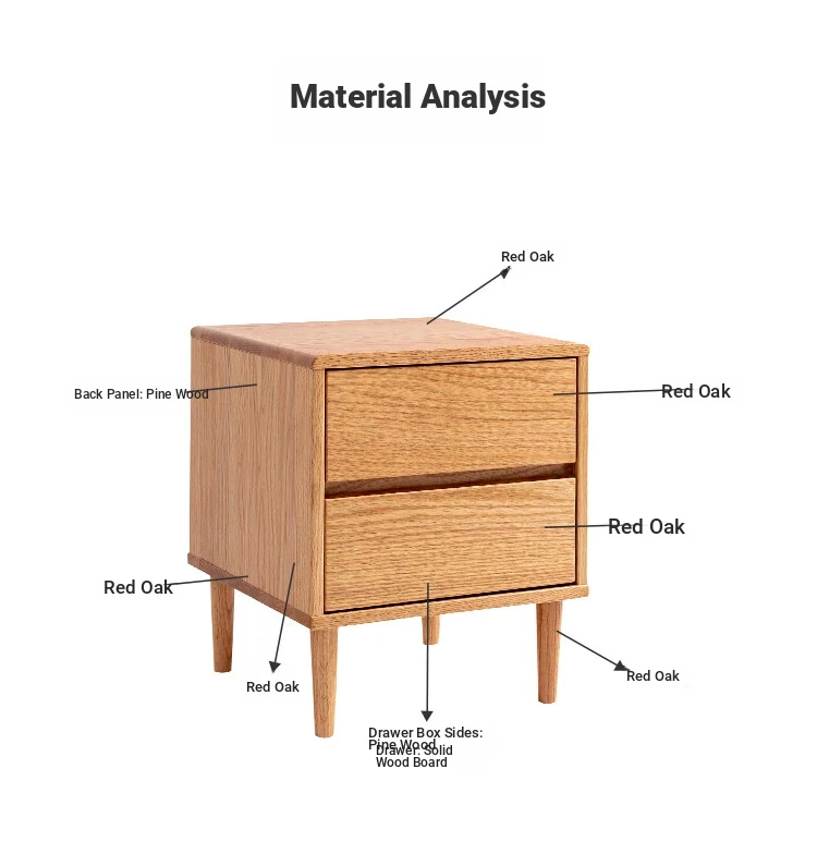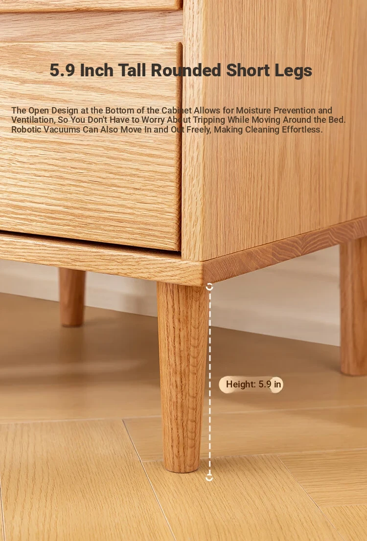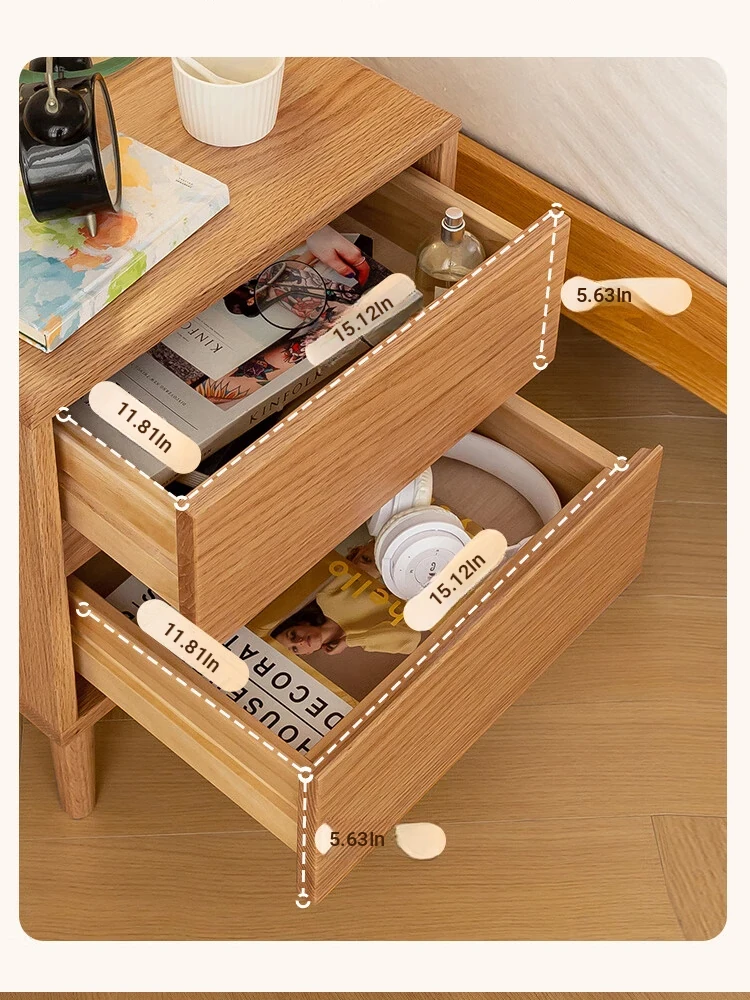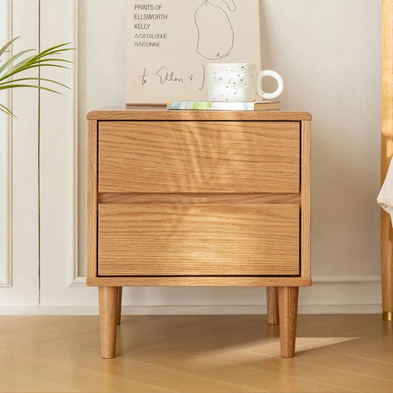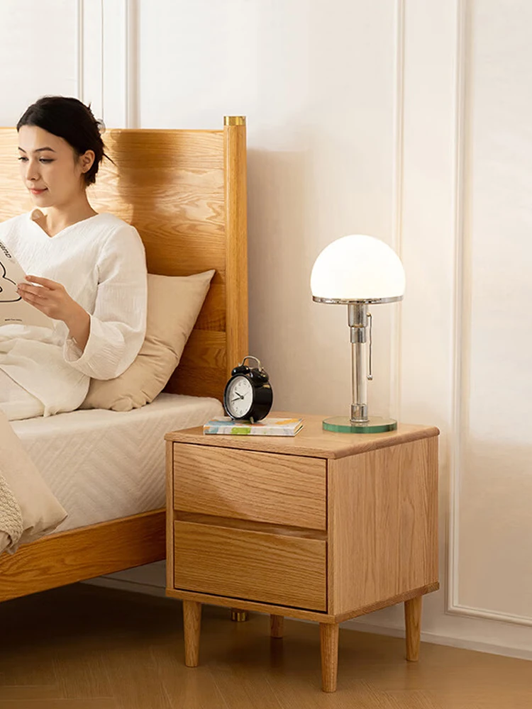 Scandinavian Modern Minimalist Solid Wood Nightstand – Sleek Oak Bedroom Drawer Storage Cabinet for Organized Living Space