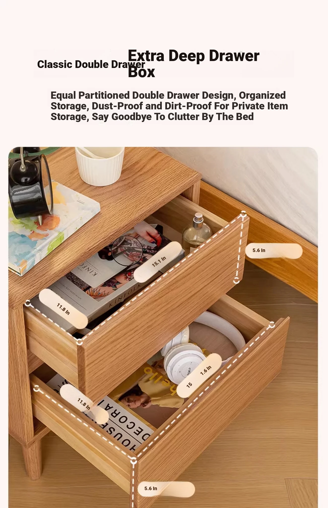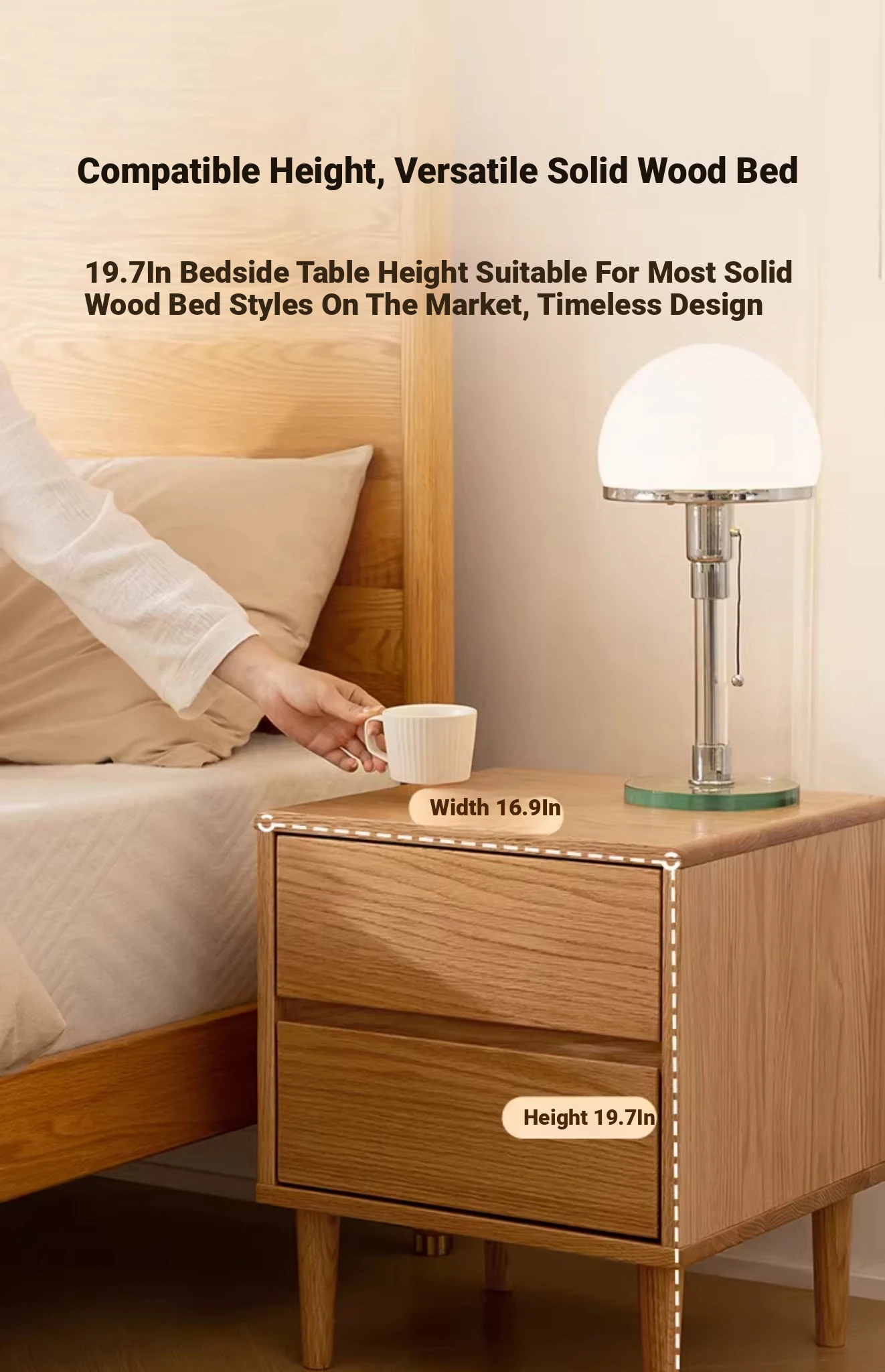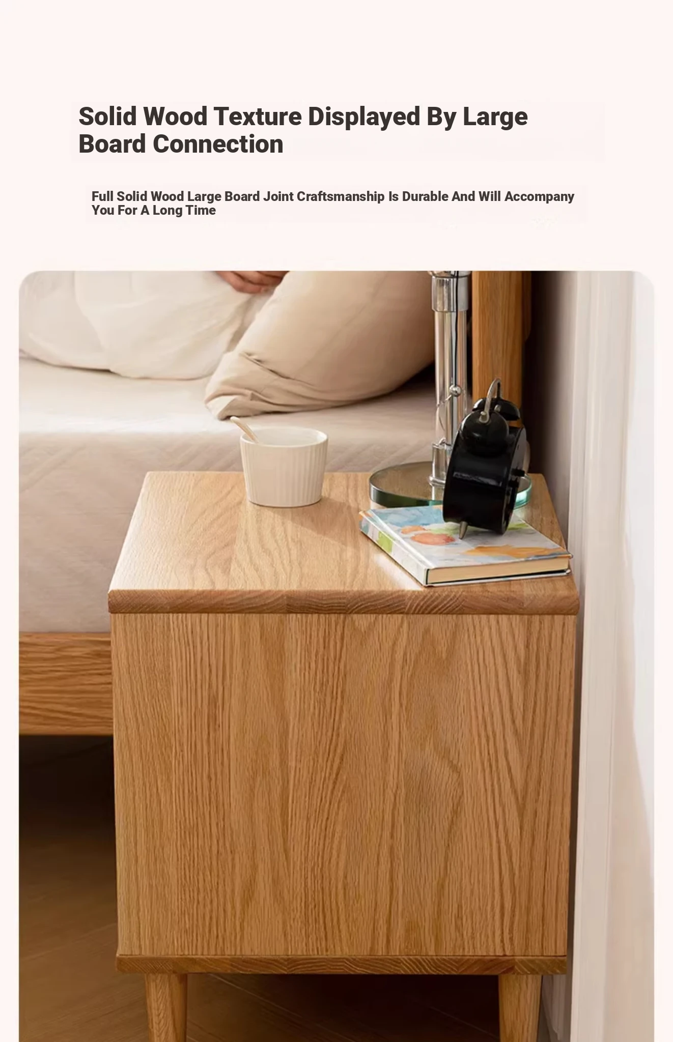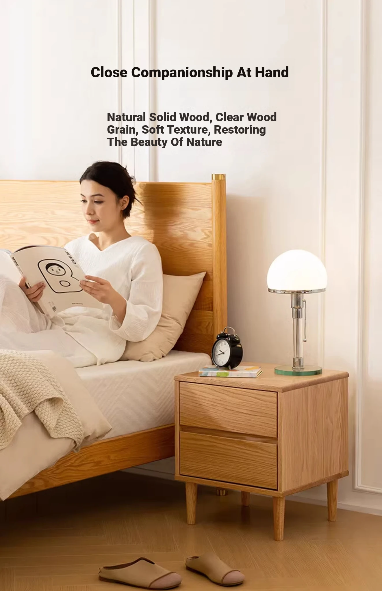 Scandinavian Modern Minimalist Solid Wood Nightstand – Sleek Oak Bedroom Drawer Storage Cabinet for Organized Living Space
